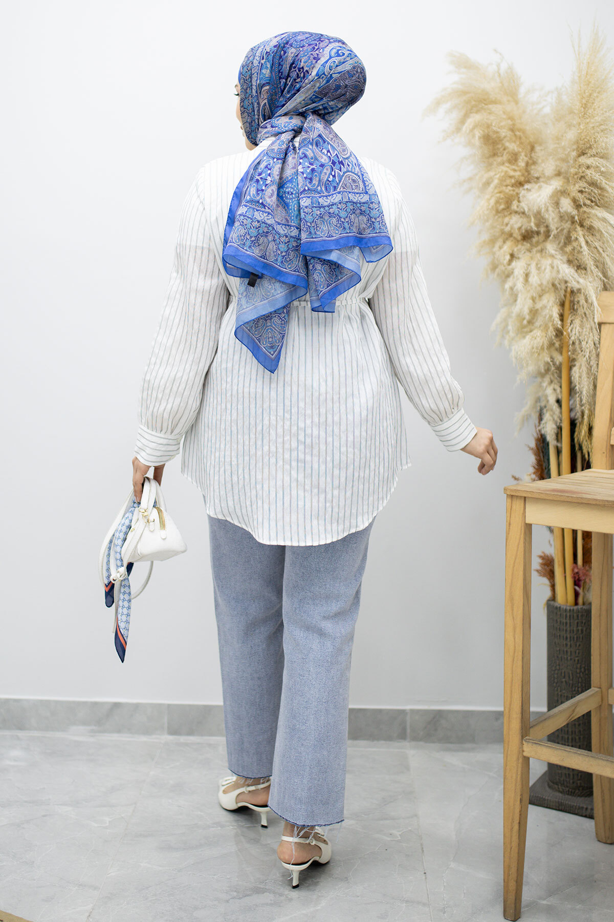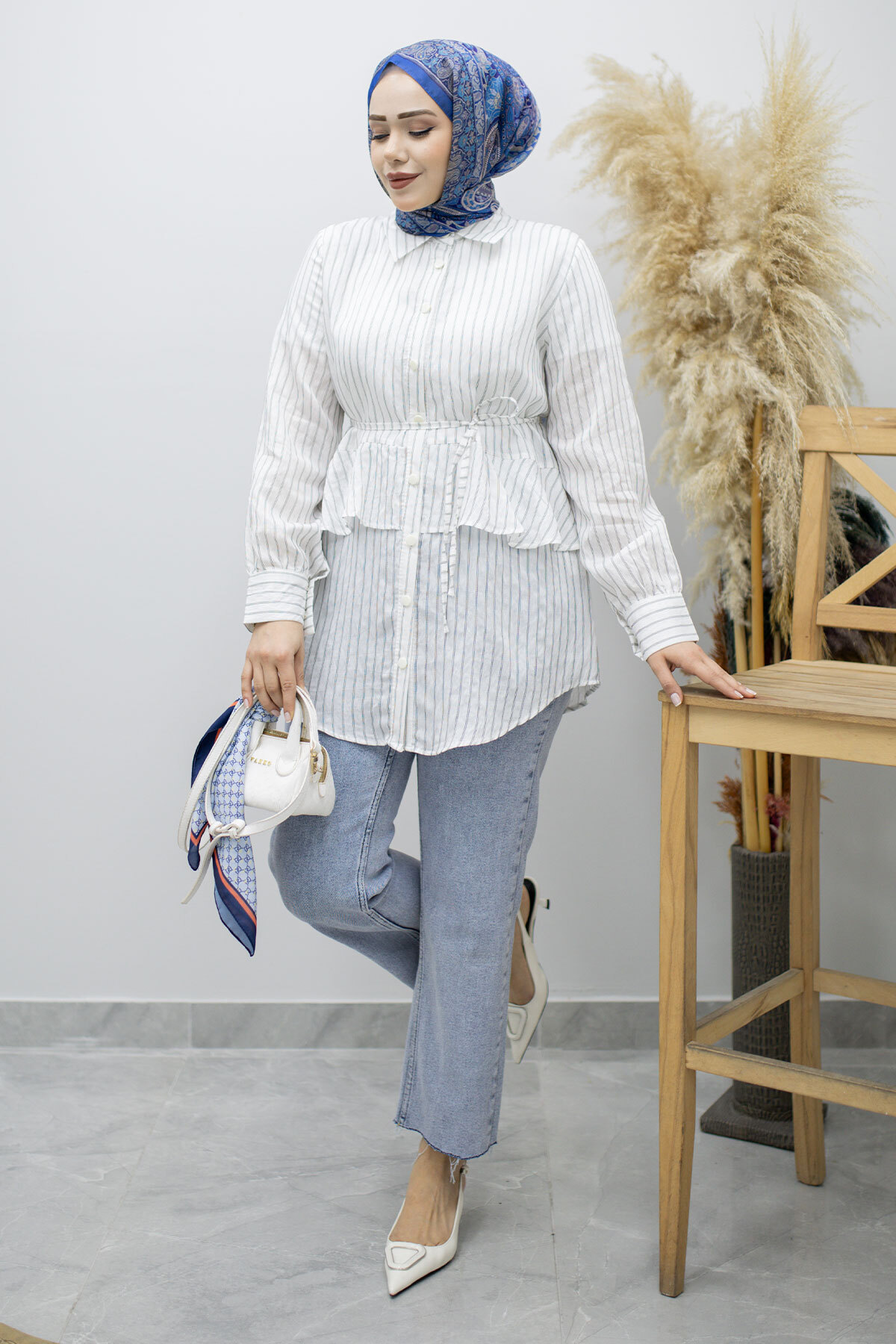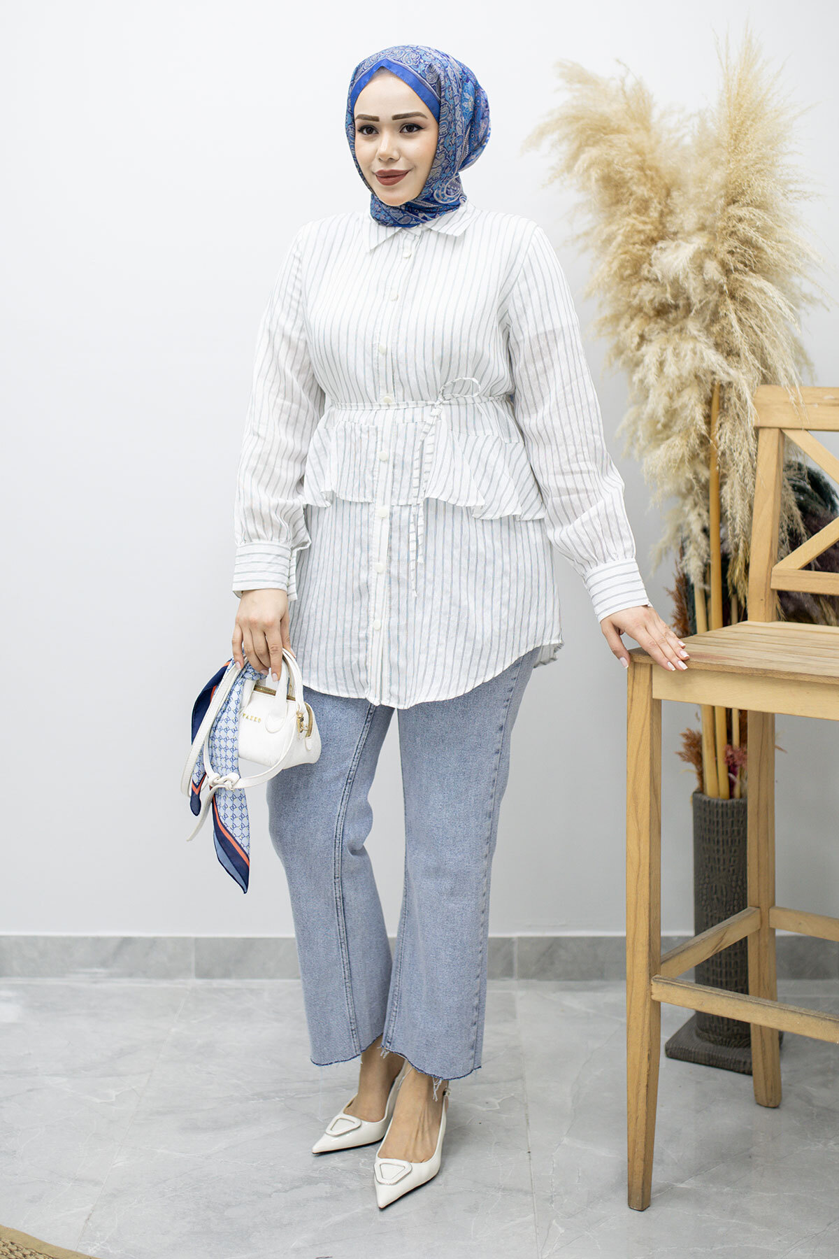 Fırfır Detaylı Çizgili Gömlek TSD260160 Beyaz