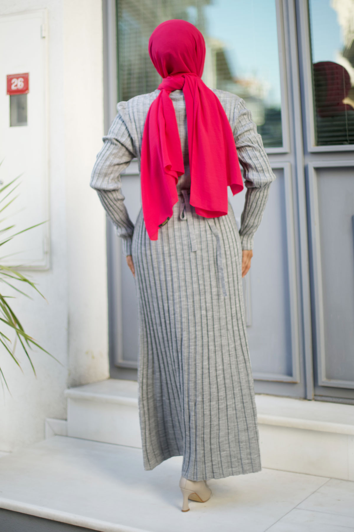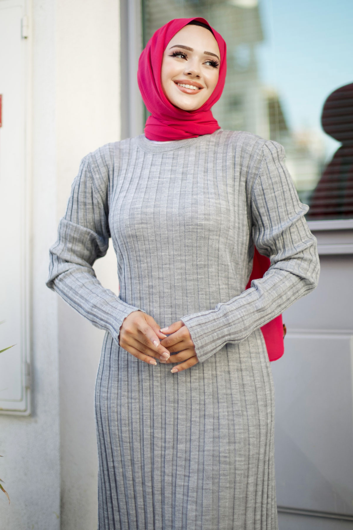Fitilli Bisiklet Yaka Triko Elbise TSD240804 Gri Özellikleri