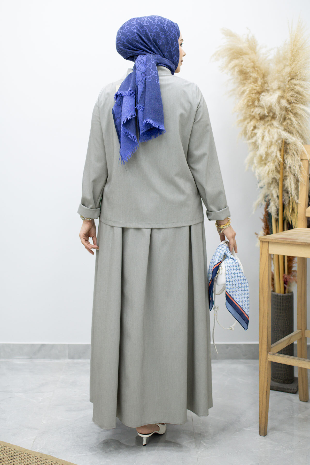 ömleği Cepli Etekli Takım TSD260158 Açık Gri Özellikleri