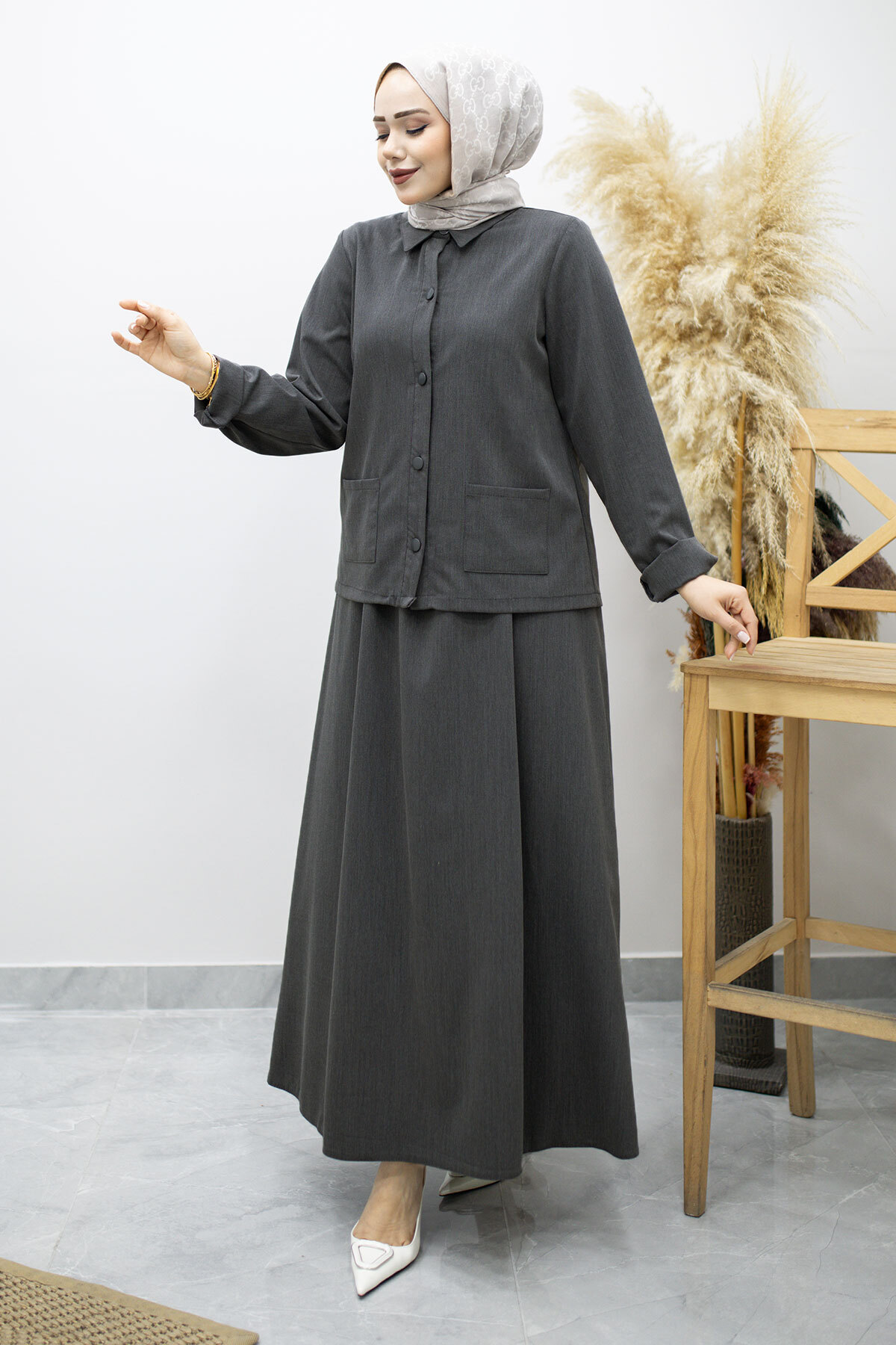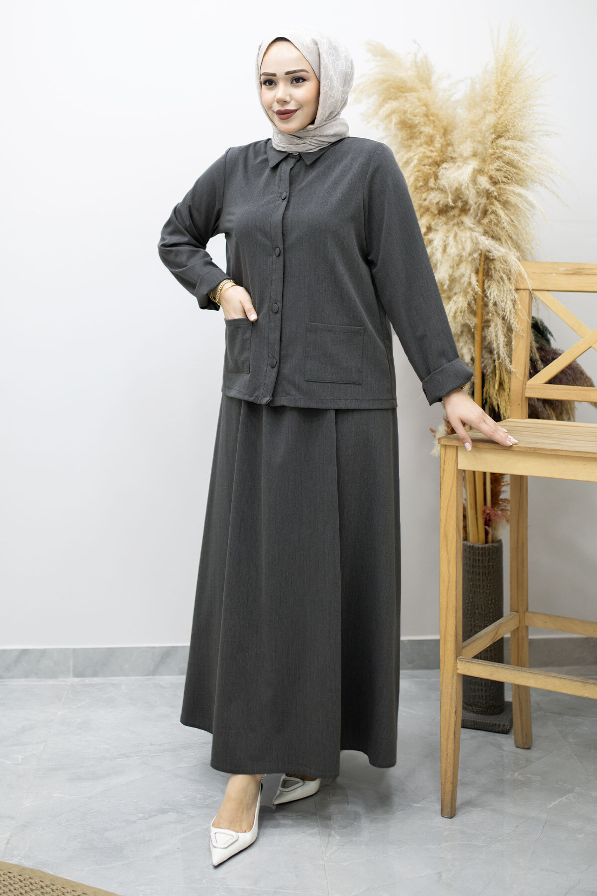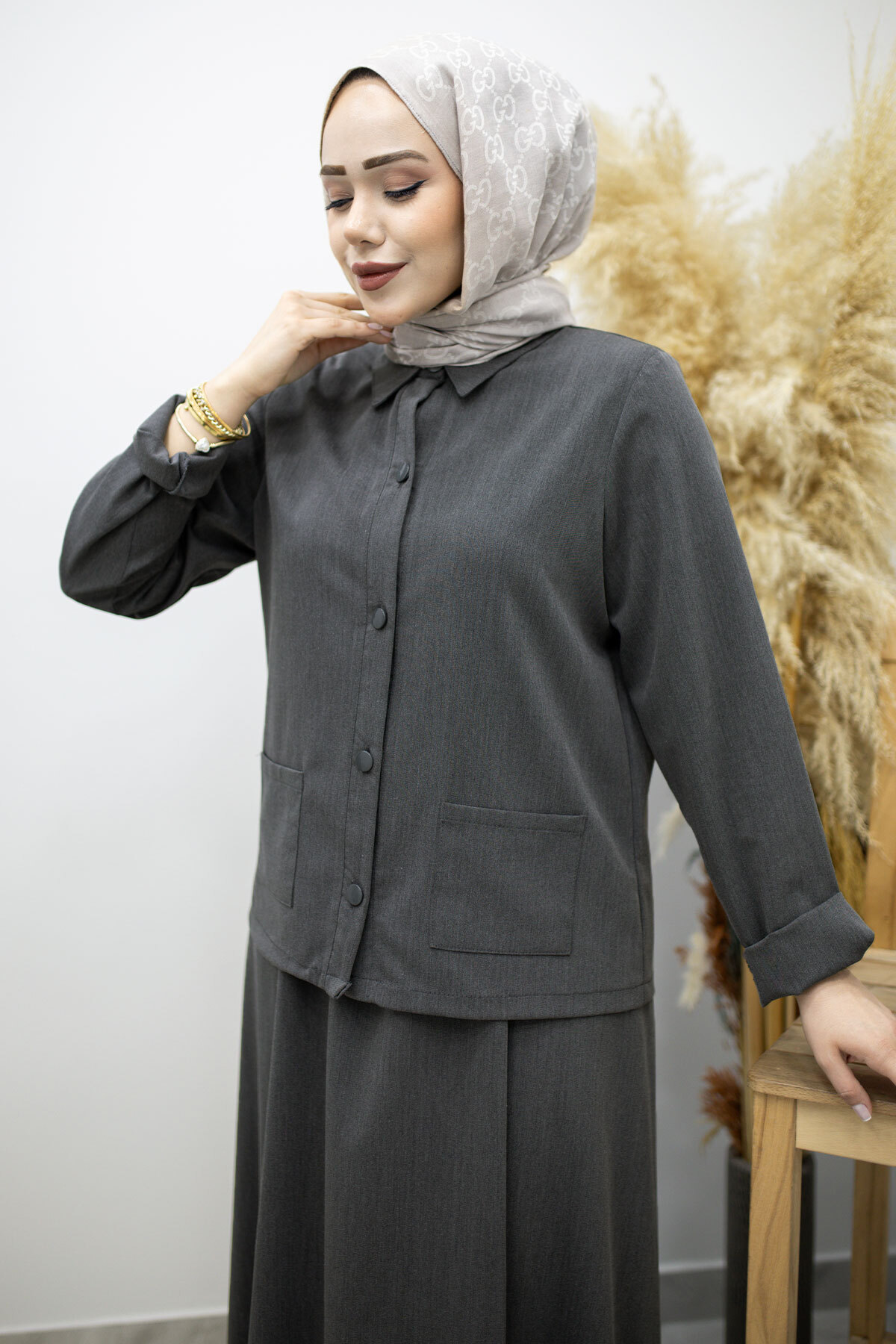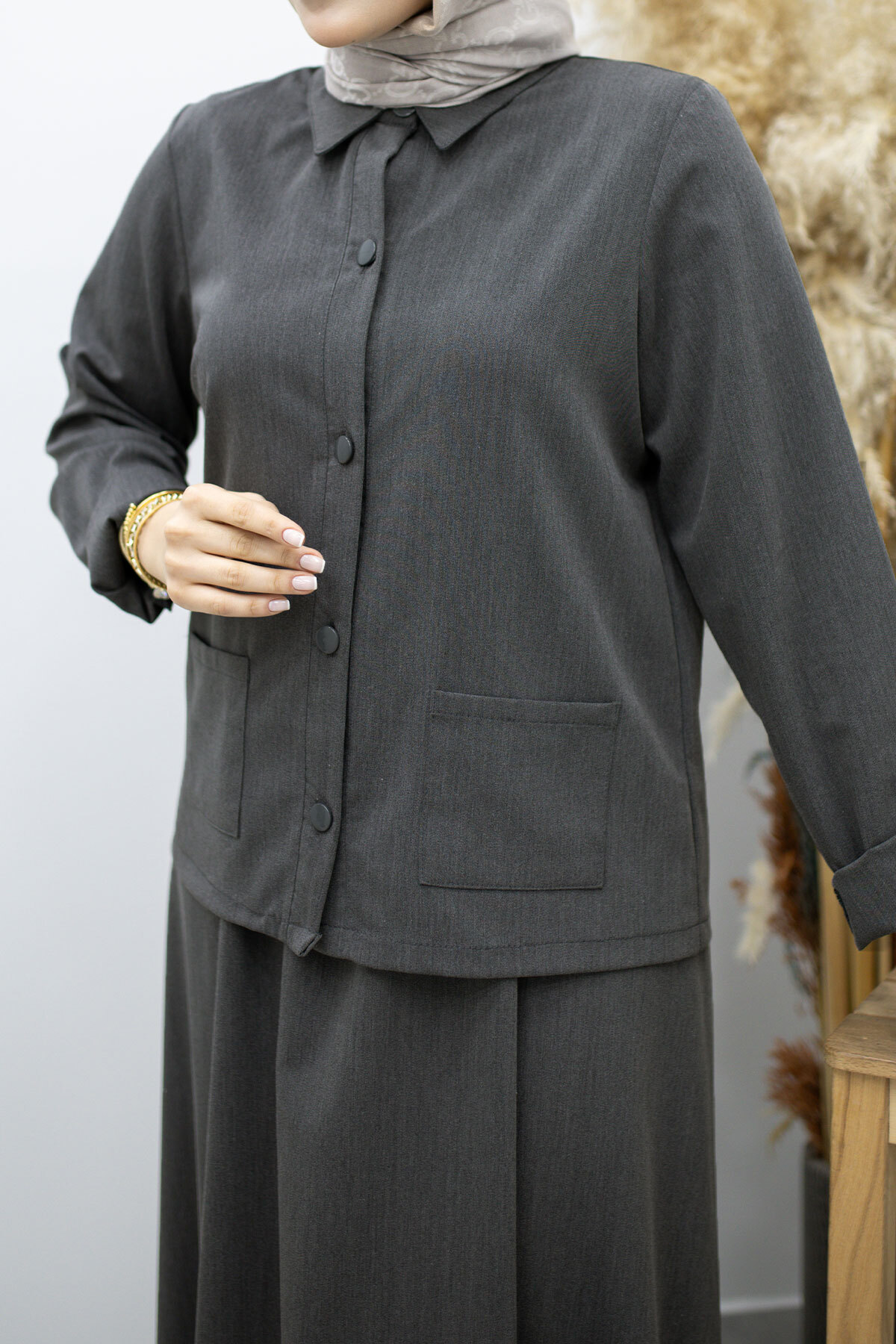Ürün Özelliği : Yeni sezon Gömleği Cepli Etekli Takım modelidir.