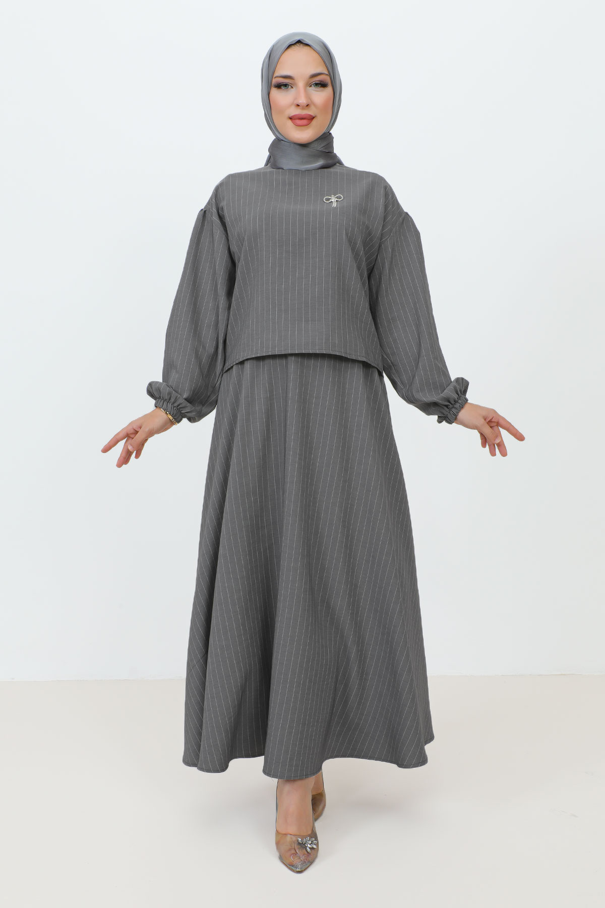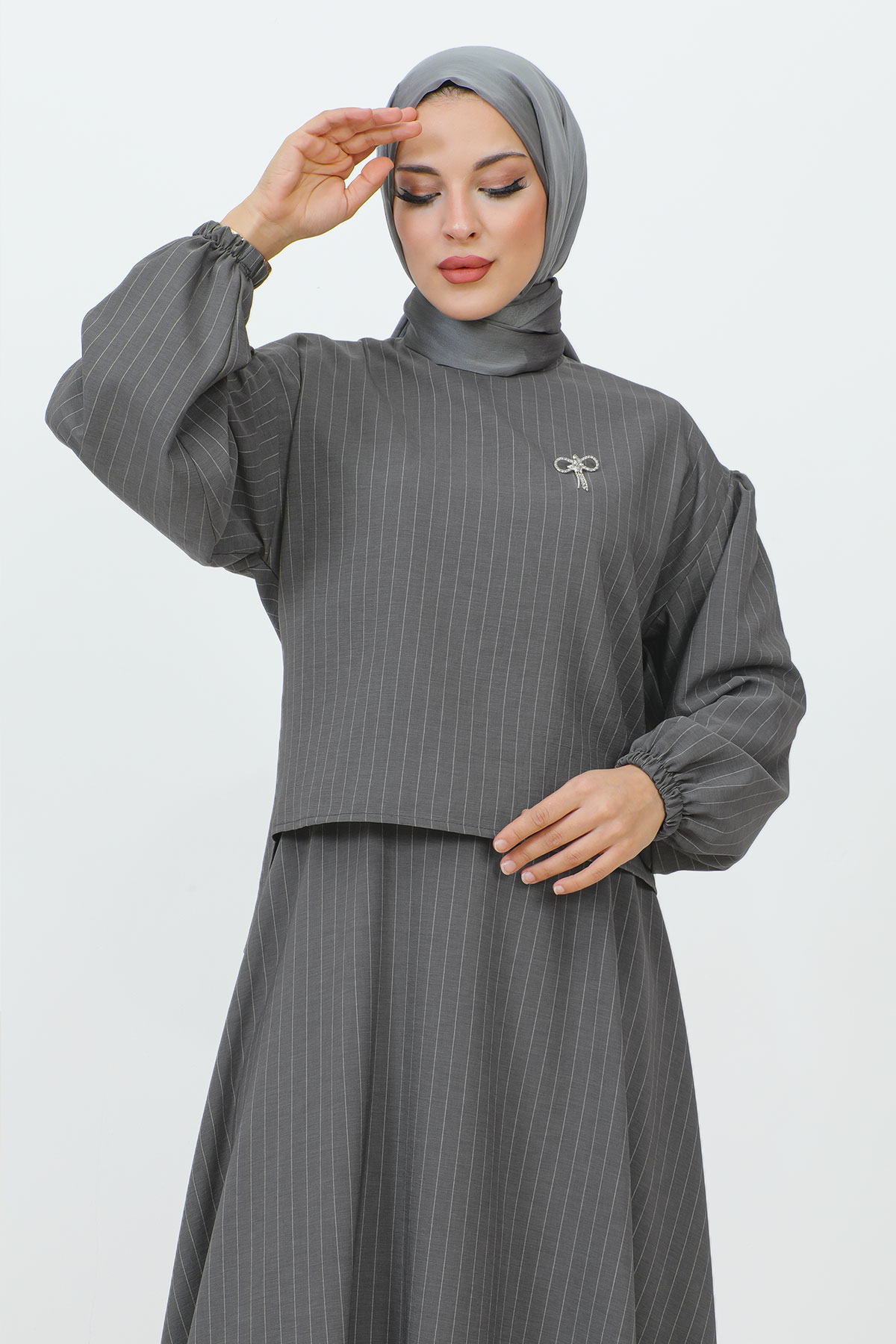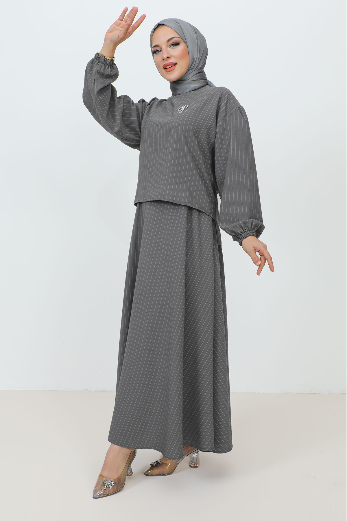 Gonca Broş Detaylı Etekli Takım TSD231204 Gri Özellikleri
