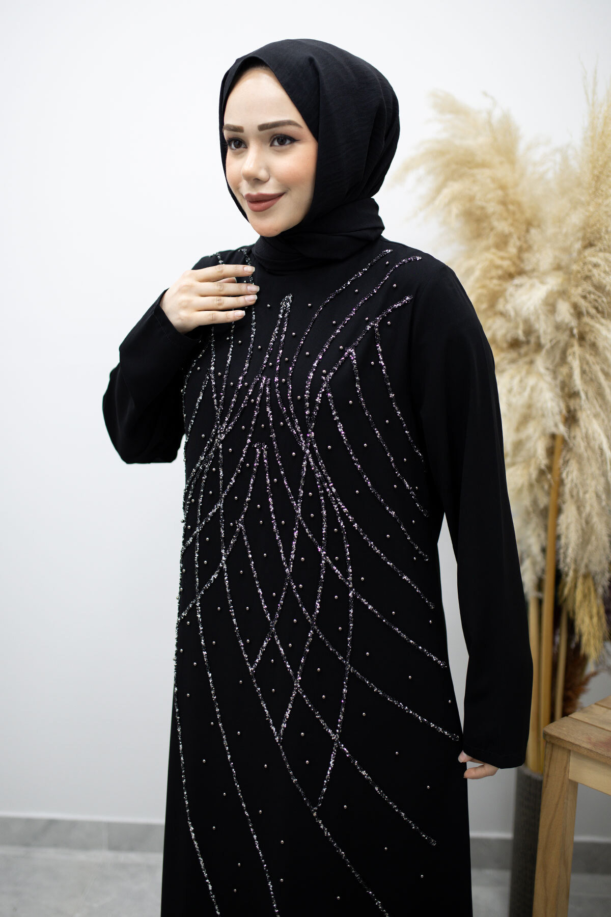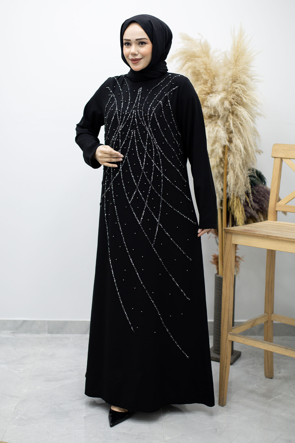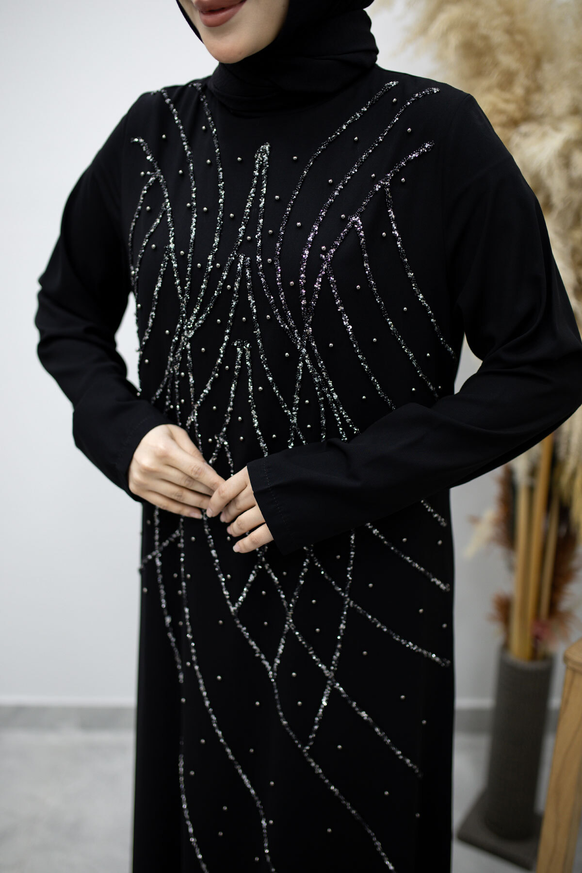 Hakim Yaka Taşlı Elbise TSD260170 Siyah Özellikleri