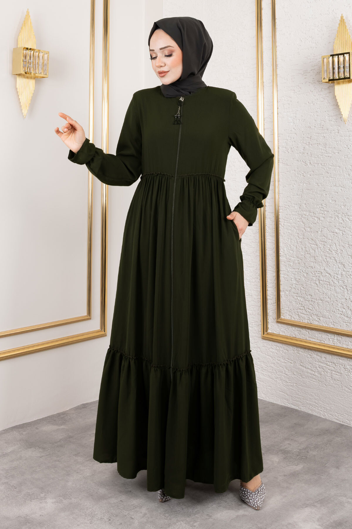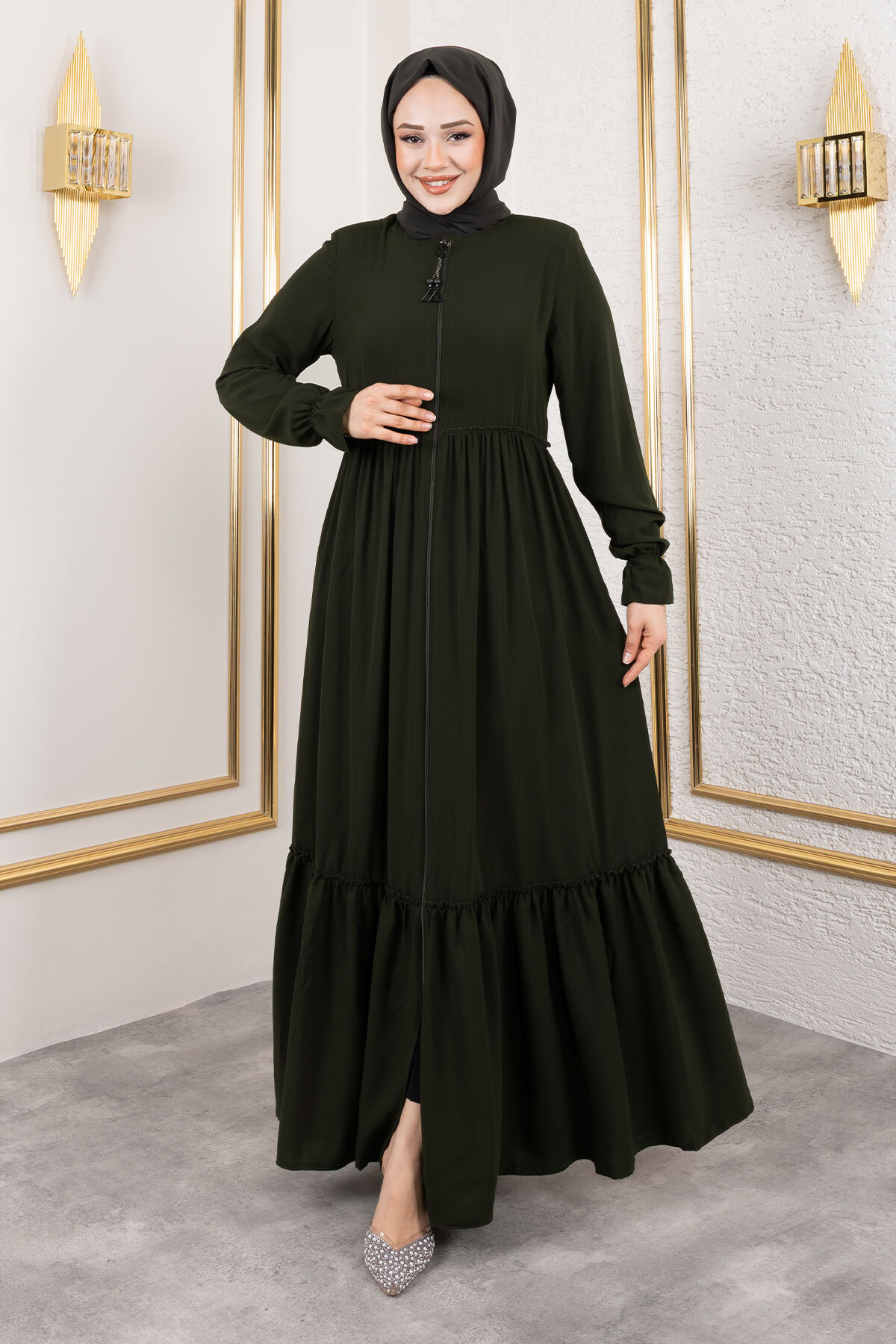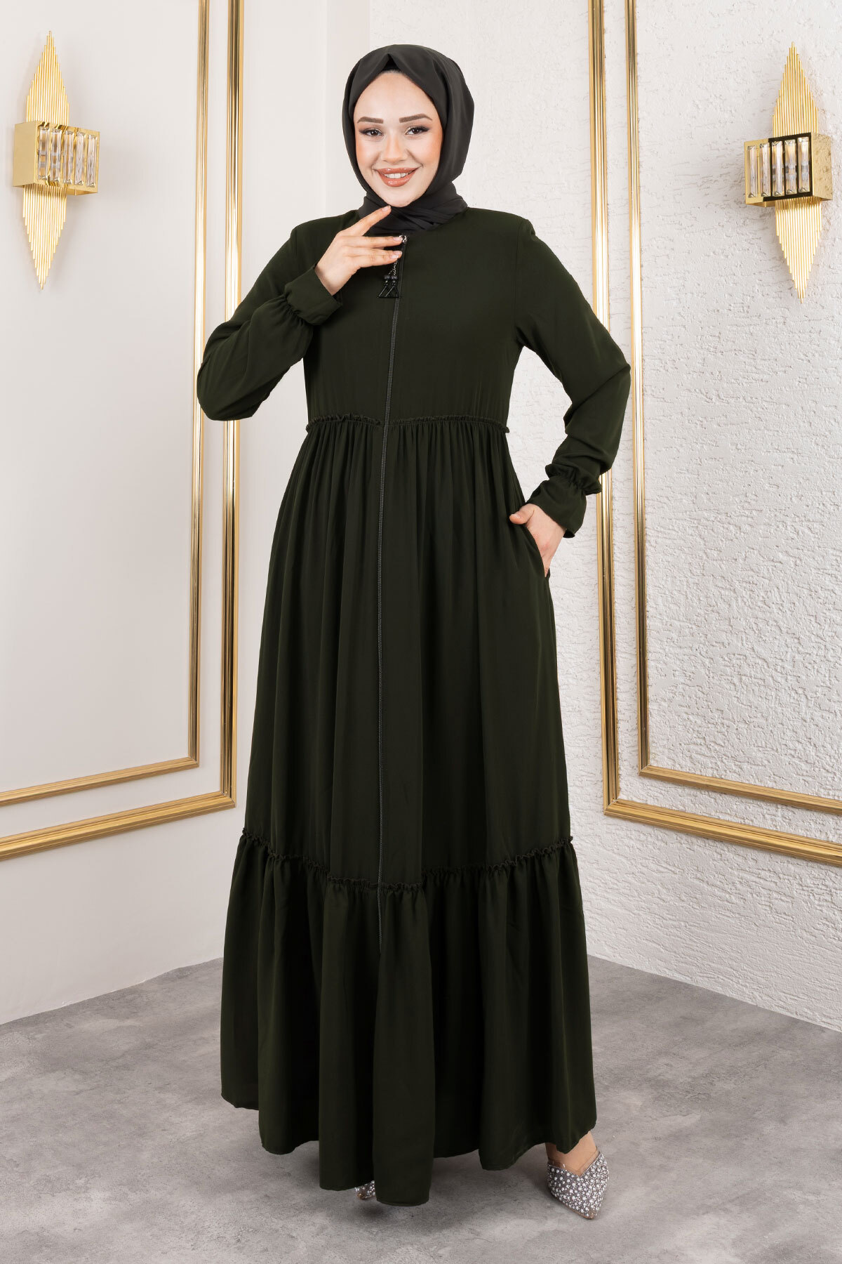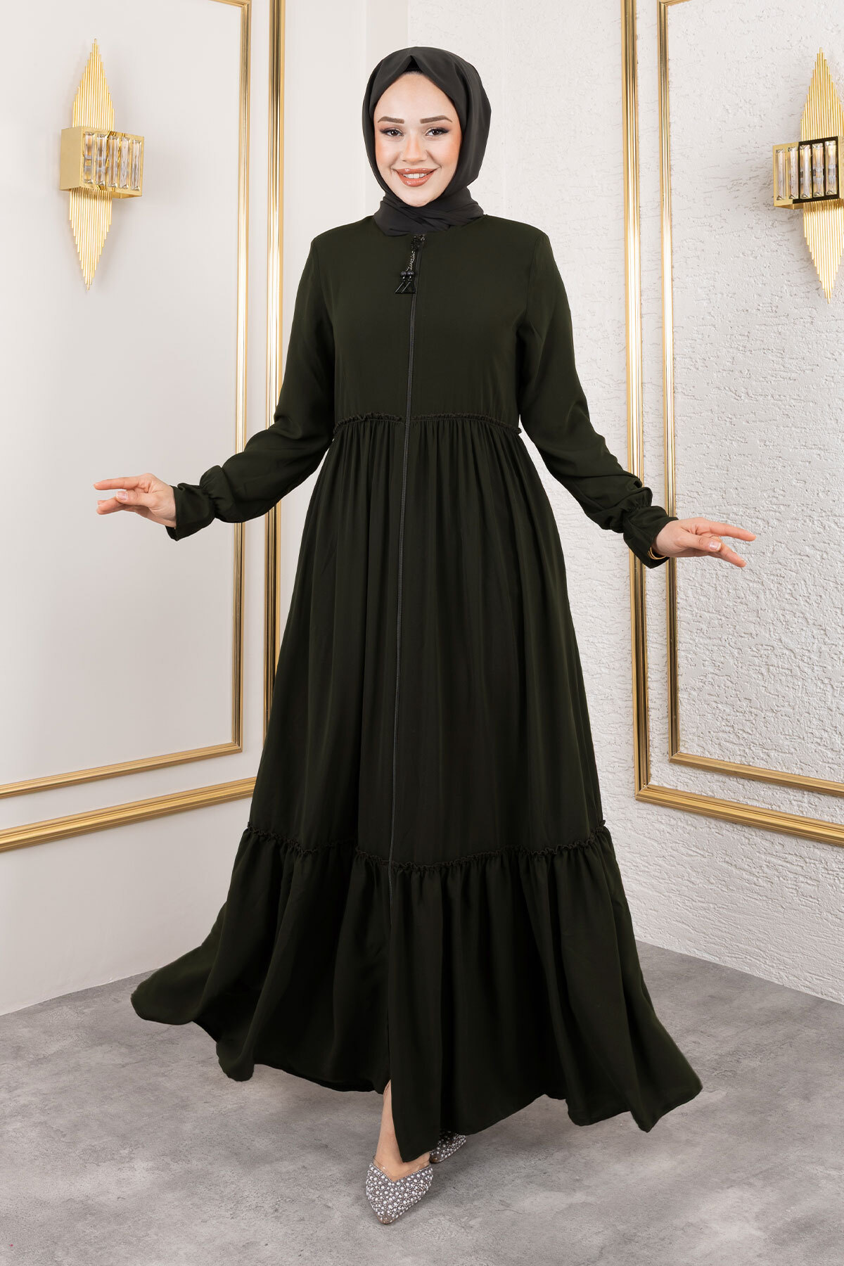 Ürün Özelliği : Yeni sezon Volanlı Fırfır Detayl Ferace modelidir. Boydan fermuar ile açılmaktadır. Bileği lastiklidir. Ceplidir, astarsızdır. Ürün renginde konsept çekimlerinden dolayı ton farklılığı olabilir.