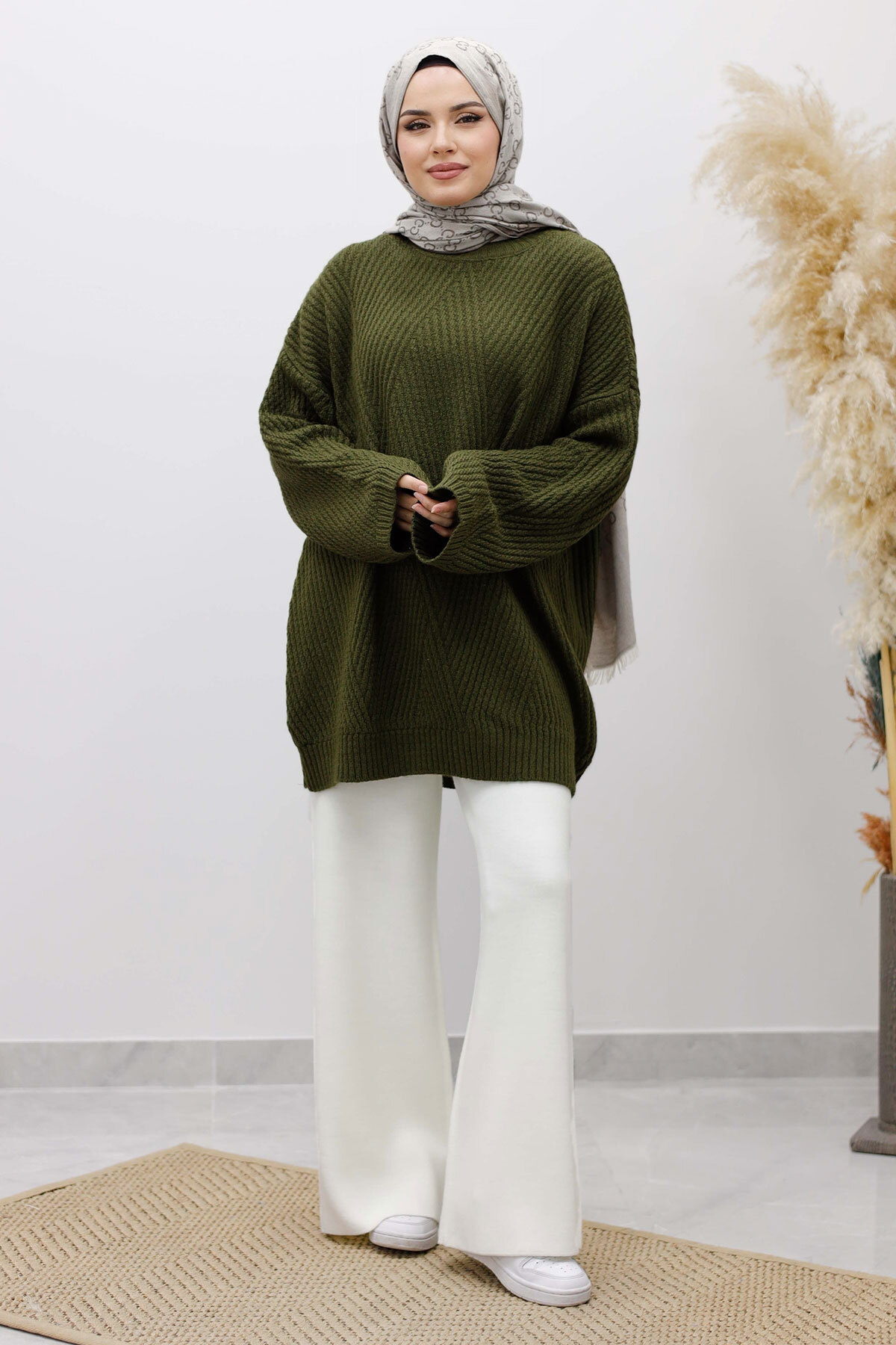 Kabartma Desen Triko Tunik TSD260110 Haki