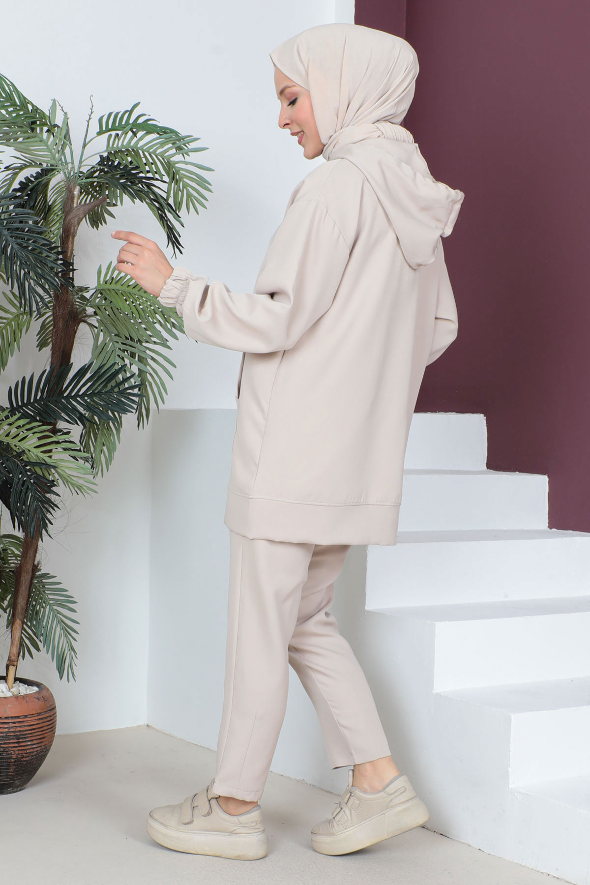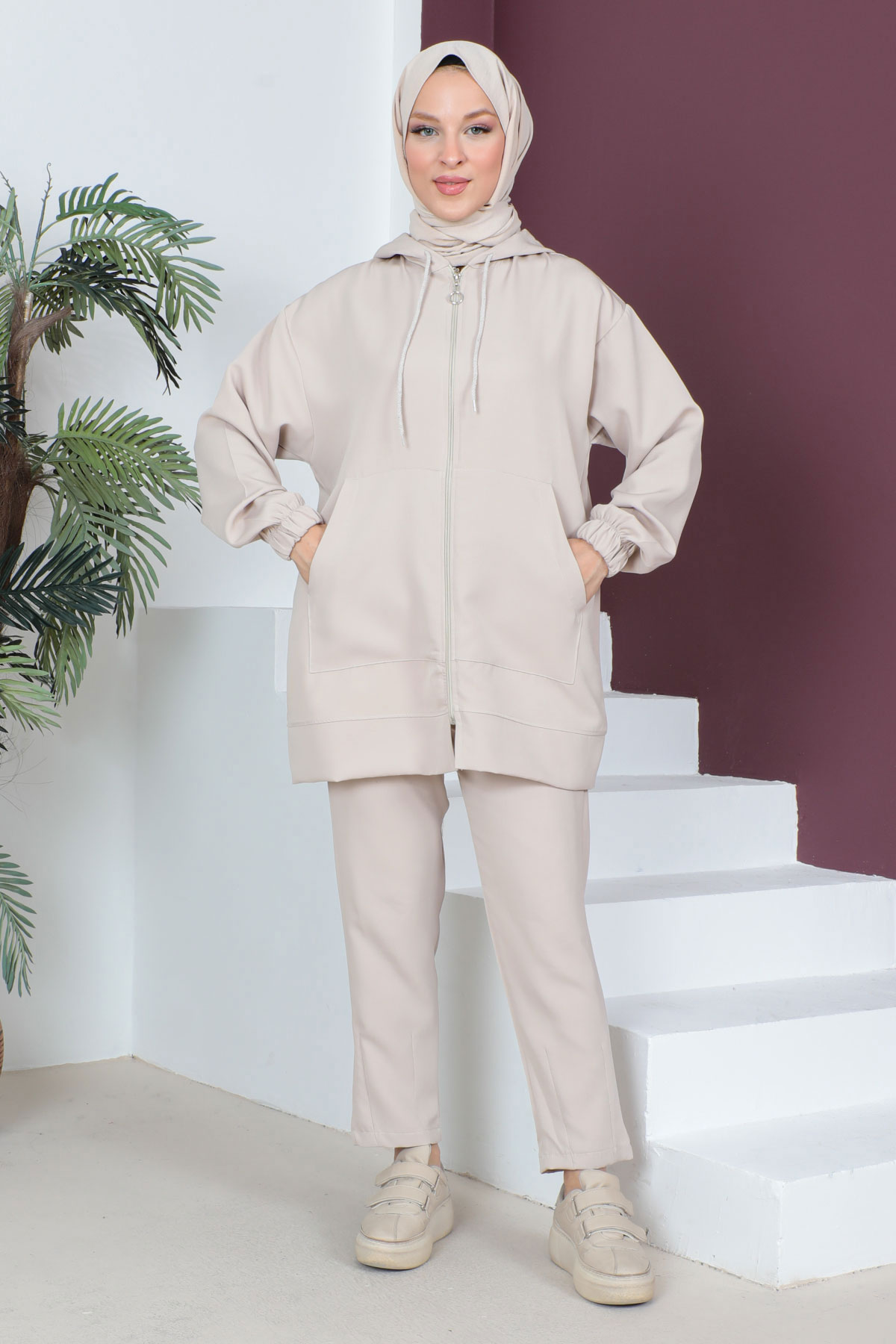 Kapşonlu Cepli İkili Takım TSD230519 Bej Özellikleri