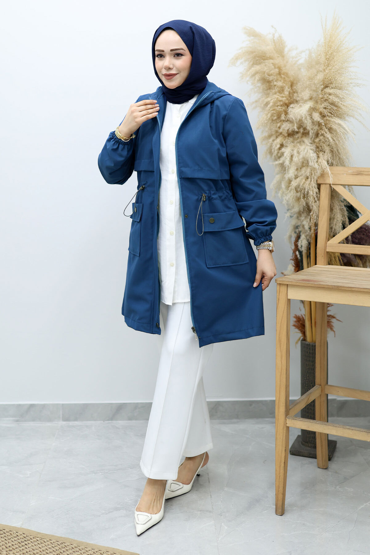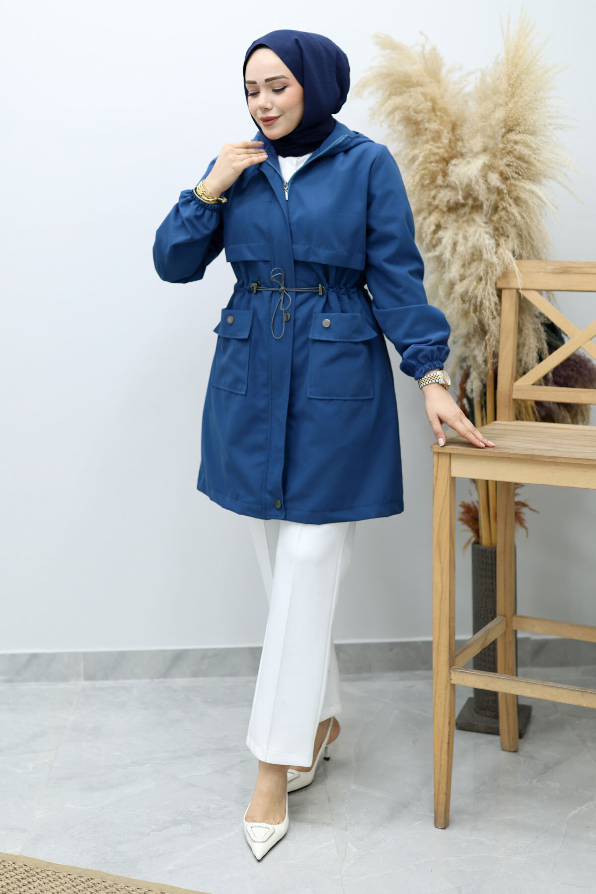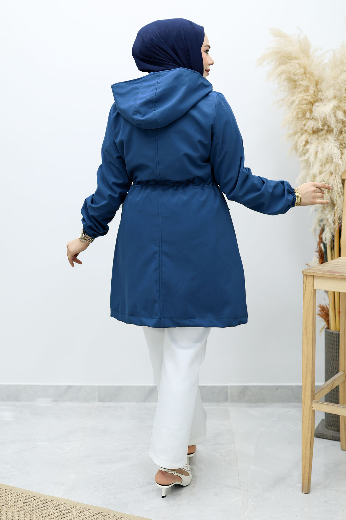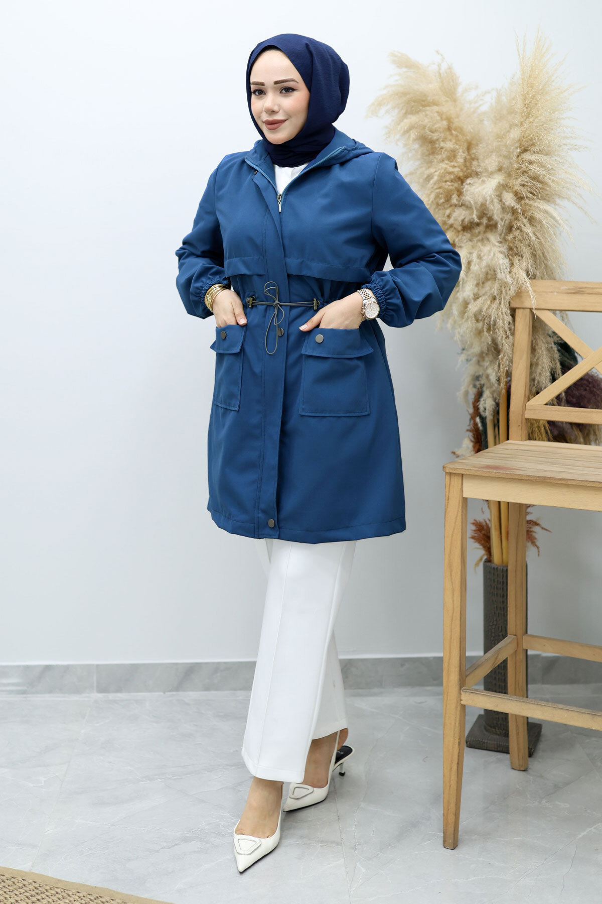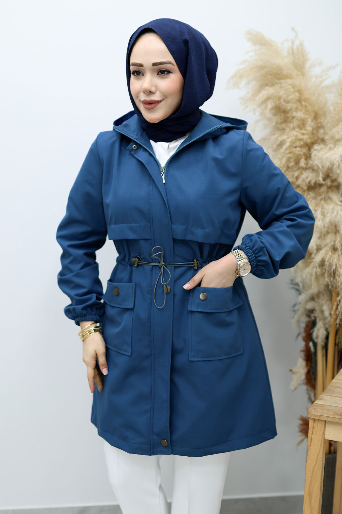 Kapüşonlu Beli Büzgülü Trençkot TSD260148 İndigo Özellikleri