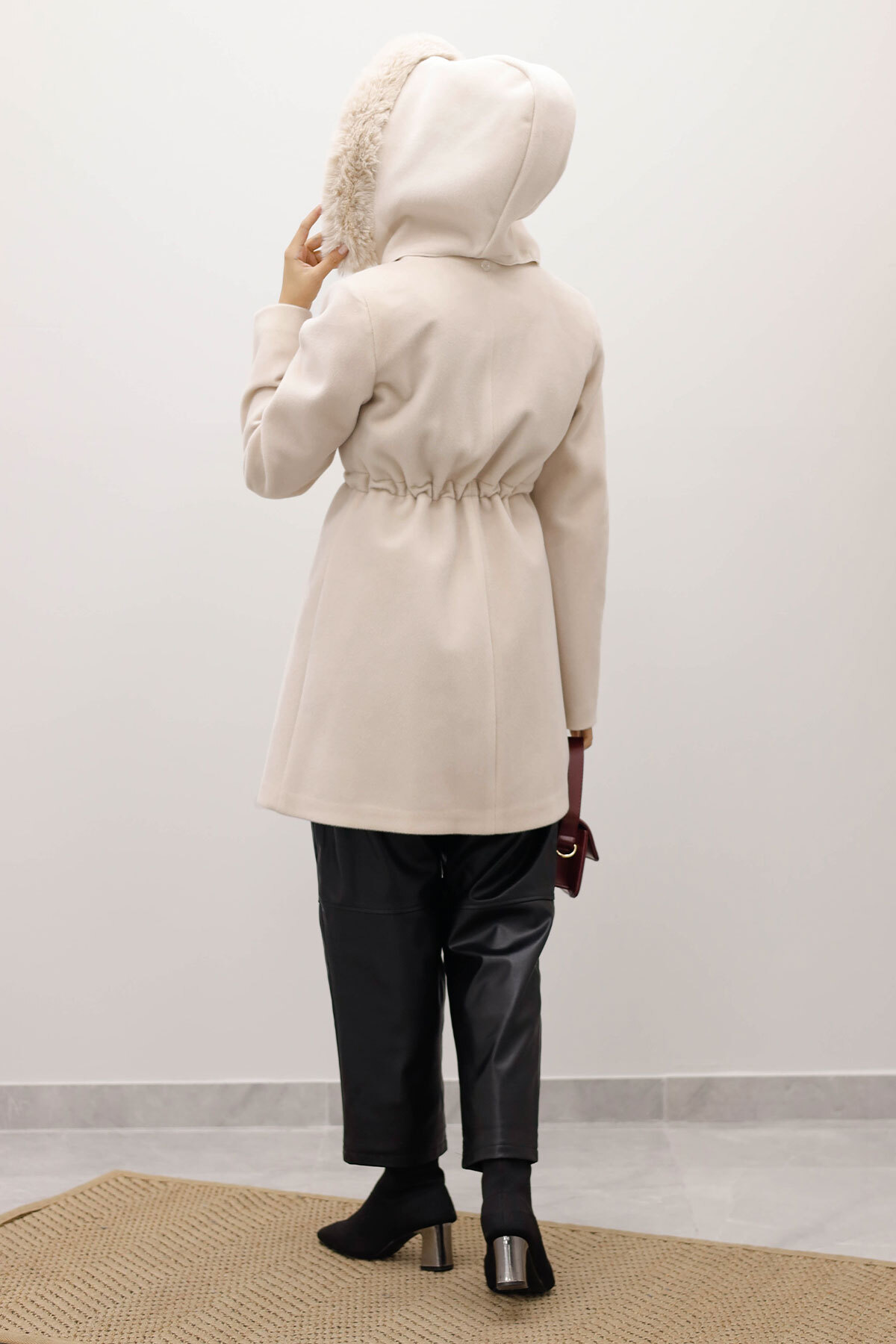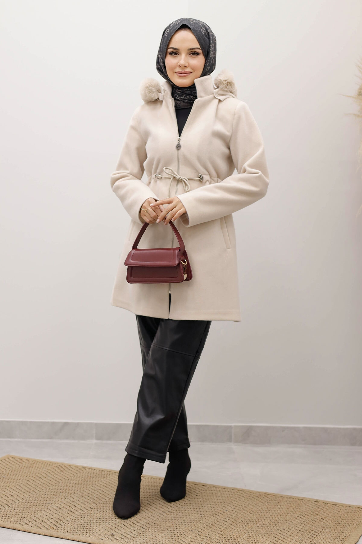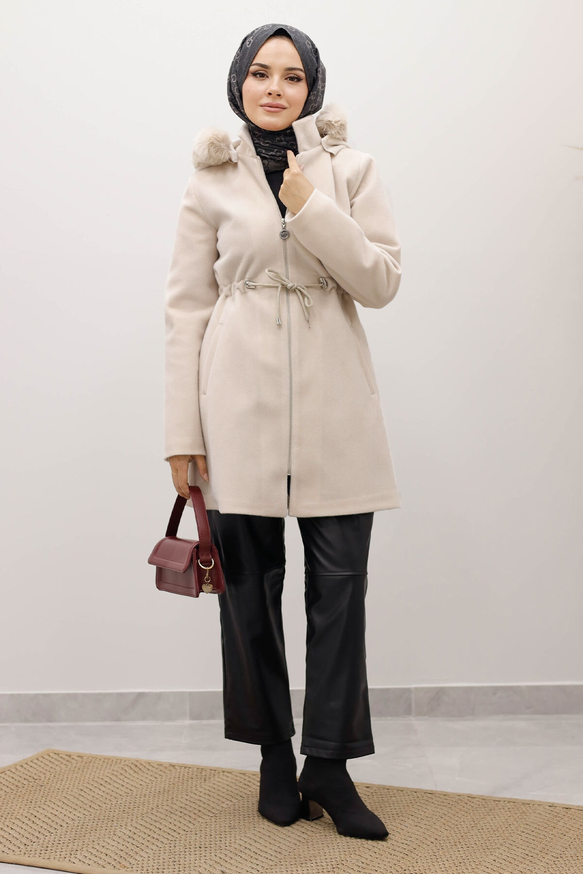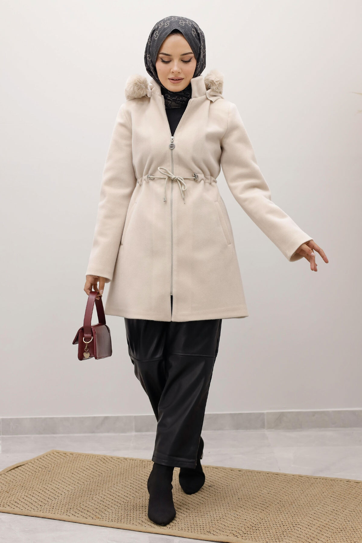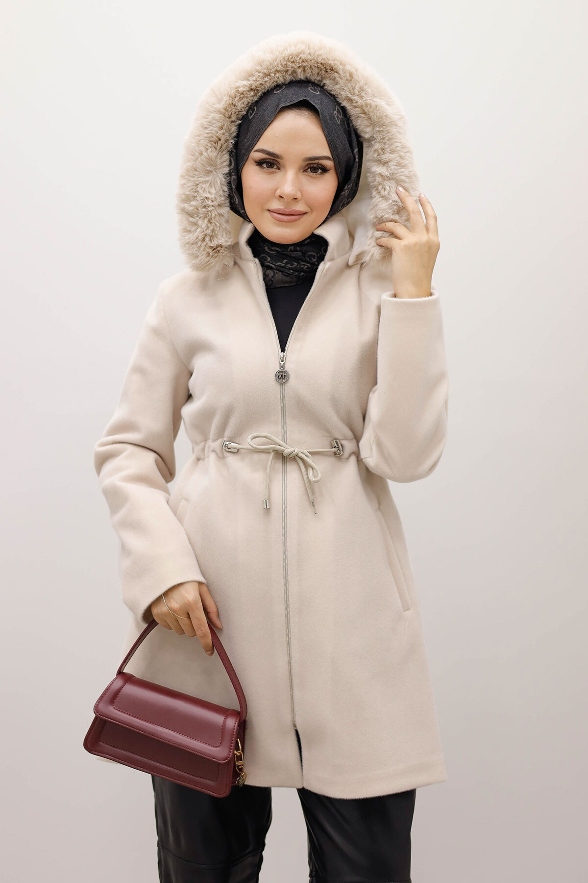 Kapüşonlu Fermuarlı Fox Kaban TSD250238 Bej