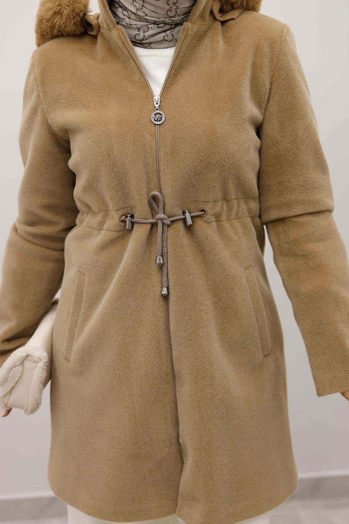 Kapüşonlu Fermuarlı Fox Kaban TSD250238 Camel