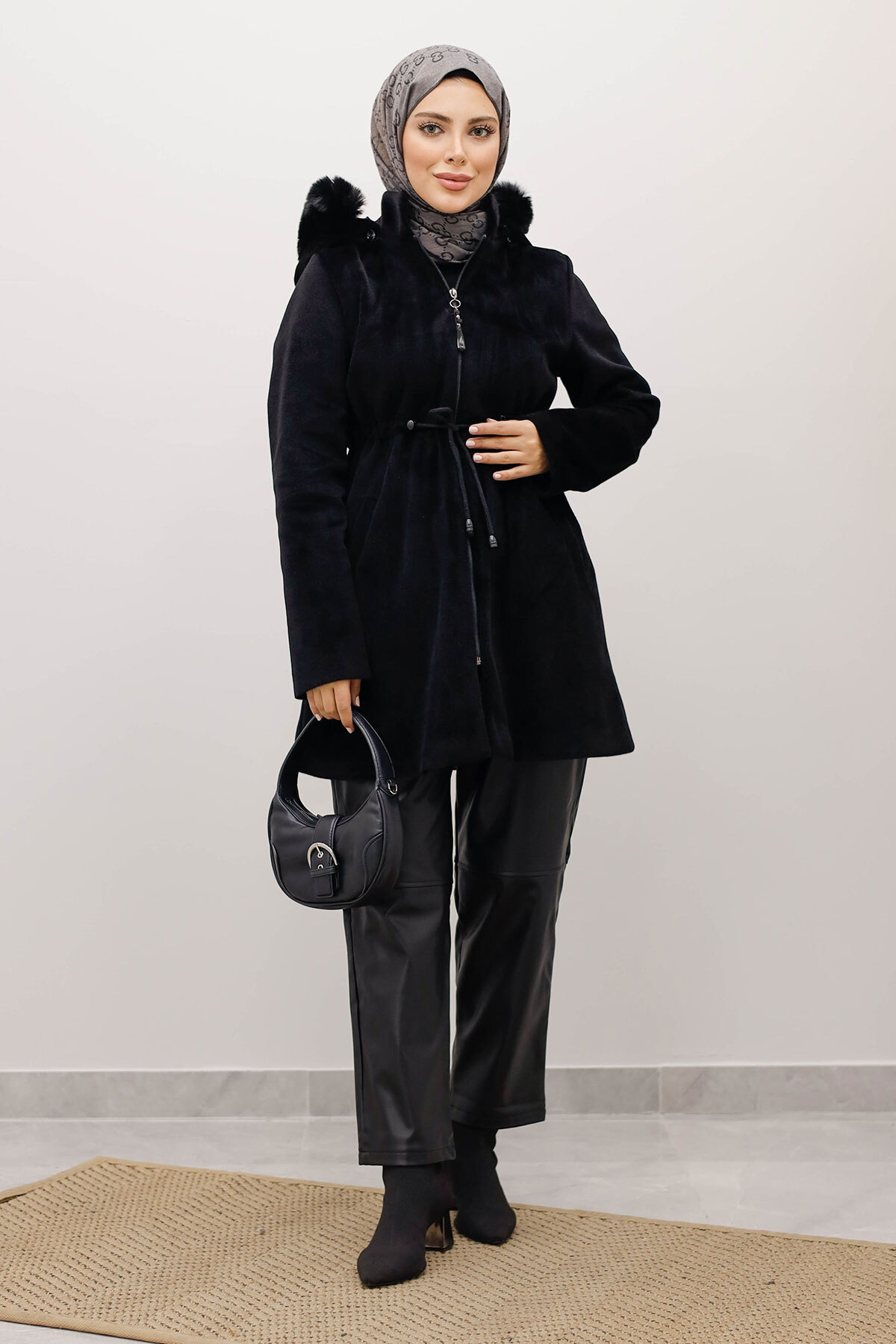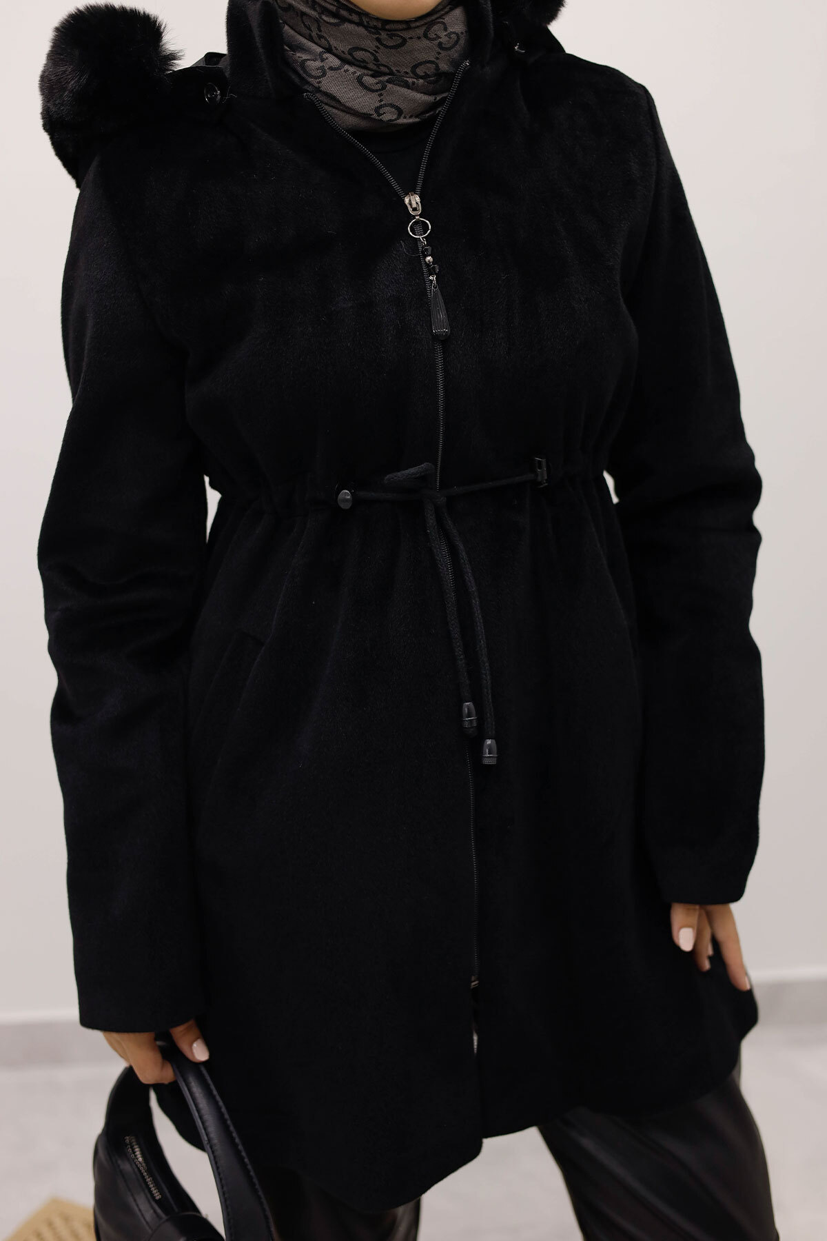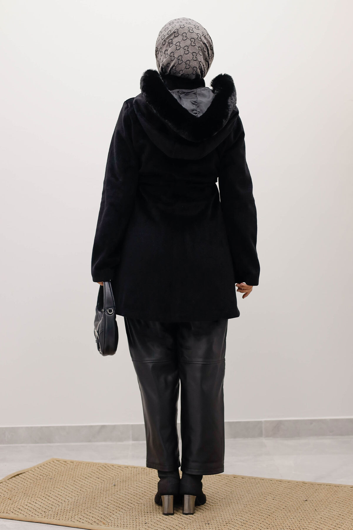 Kapüşonlu Fermuarlı Fox Kaban TSD250238 Siyah