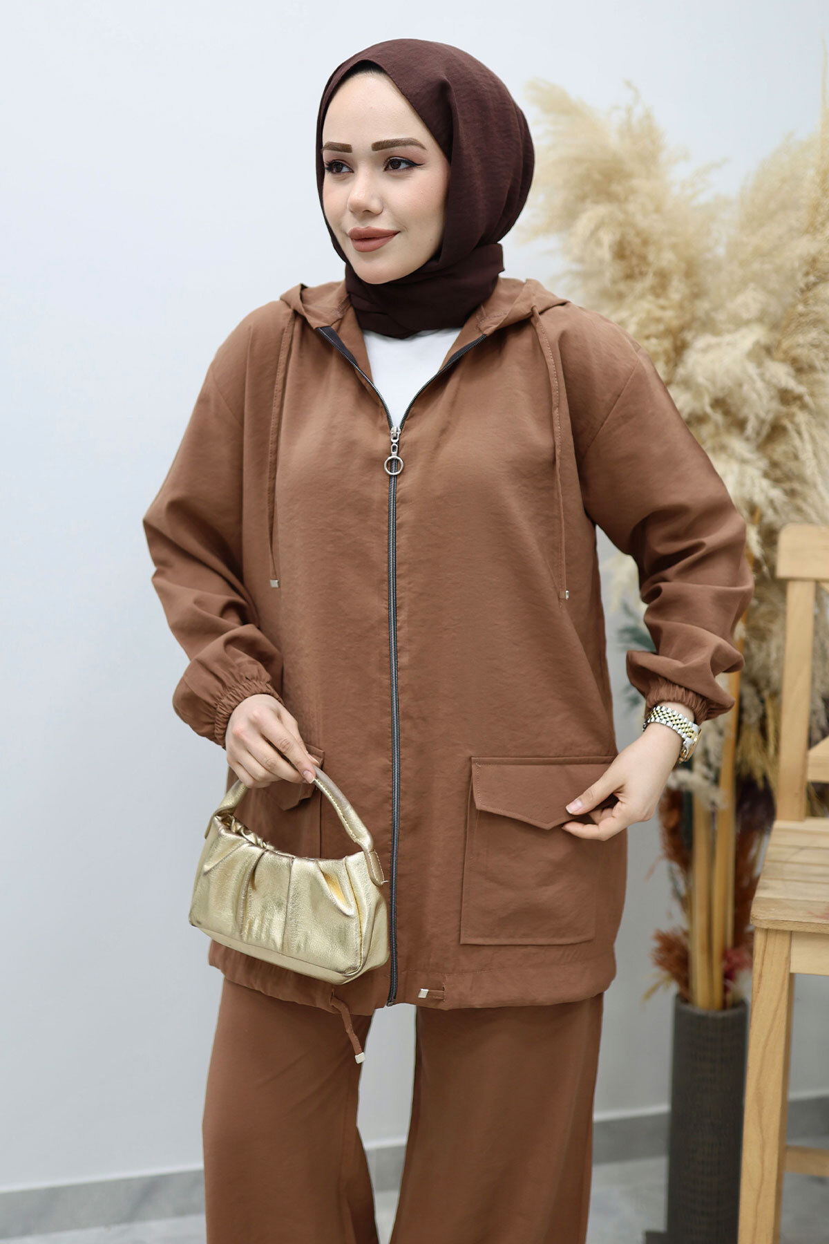 Kapüşonlu Fermuarlı İkili Takım TSD260132 Kahverengi Özellikleri
