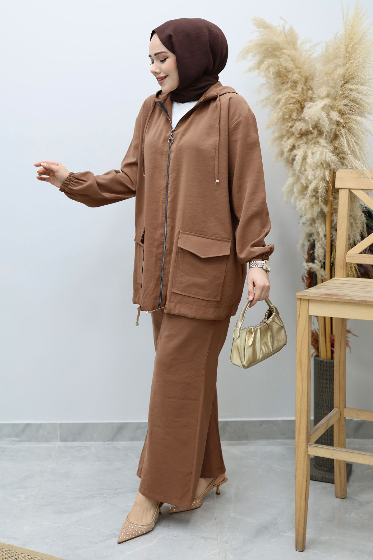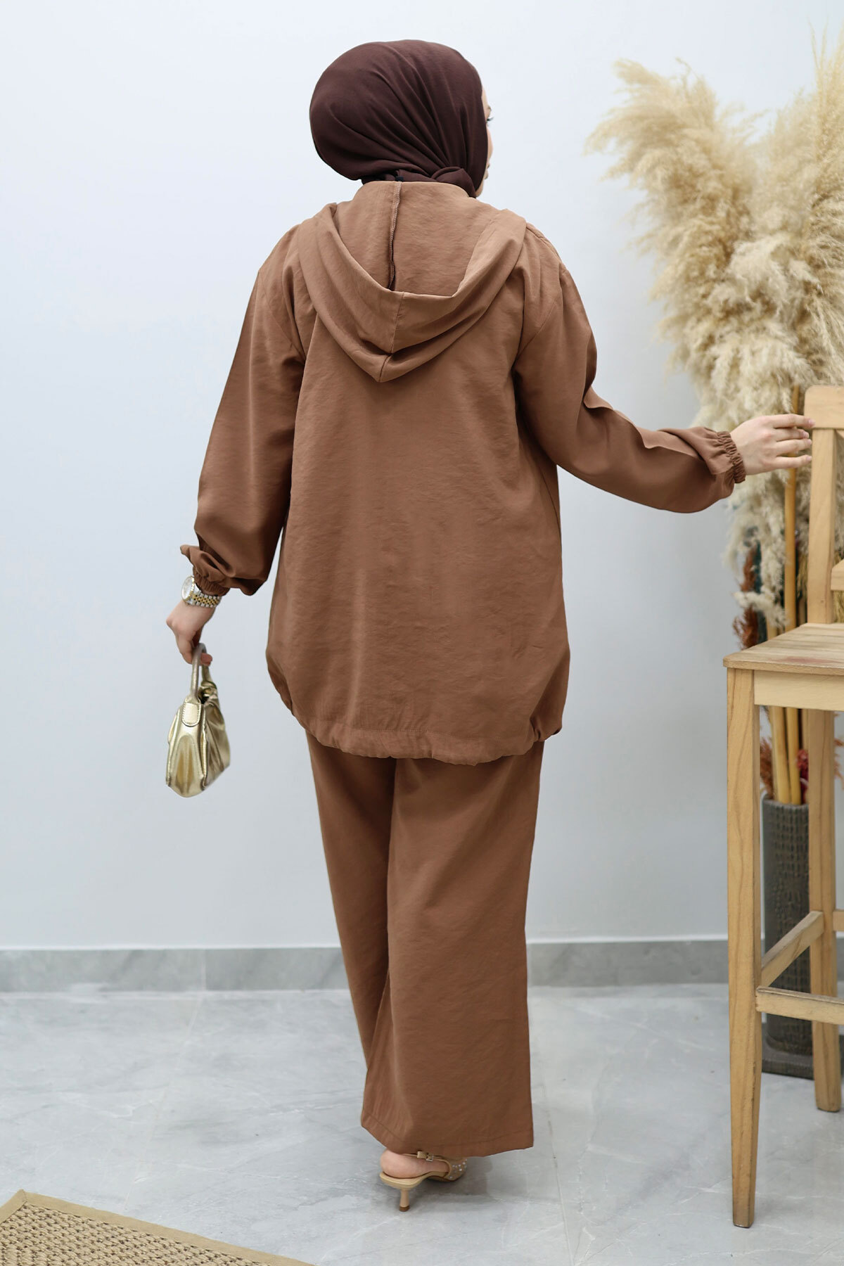 Kapüşonlu Fermuarlı İkili Takım TSD260132 Kahverengi