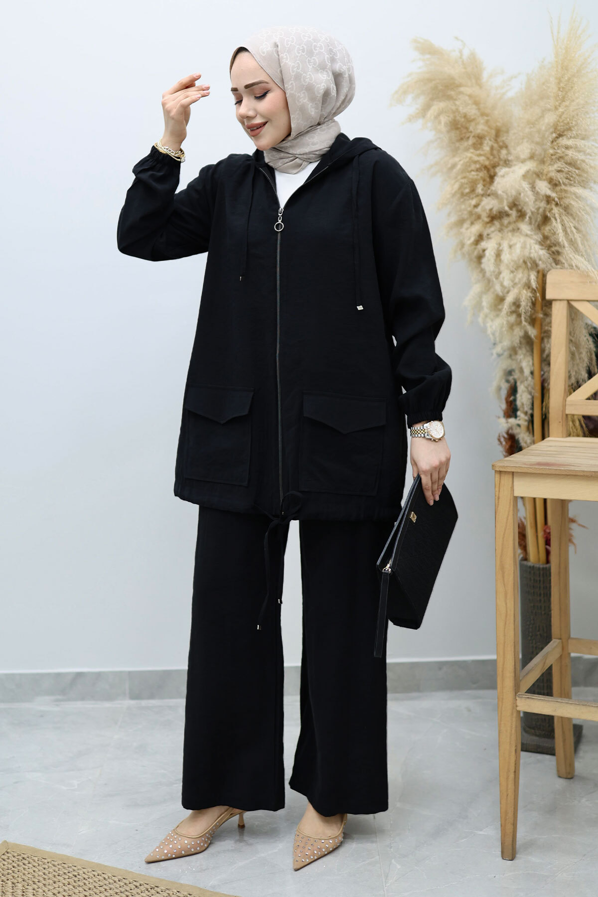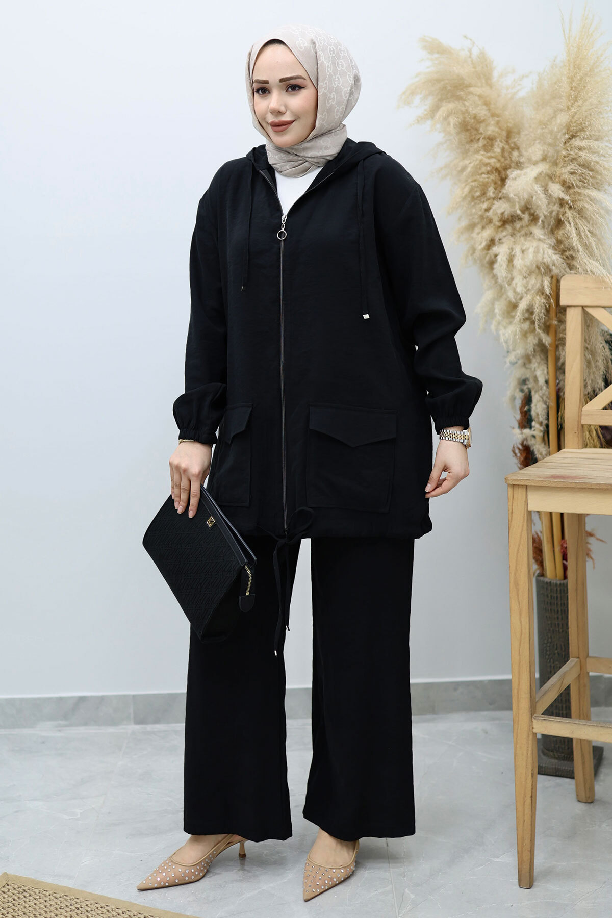 Kapüşonlu Fermuarlı İkili Takım TSD260132 Siyah Özellikleri