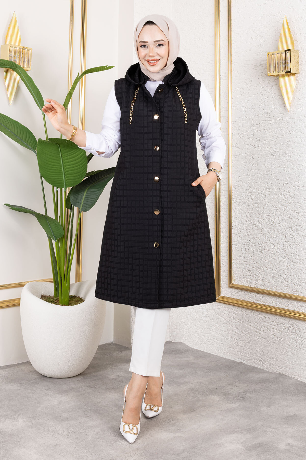 Ürün Özelliği: Yeni sezon Kapüşonlu Kapitone Yelek modelidir. Çıkarılabilir kapüşonu mevcuttur. Kullanılabilir iki adet cebi bulunmaktadır. Astarsızdır. Önden düğmelidir. Ürün renginde konsept çekimlerinden dolayı ton farklılığı olabilir.