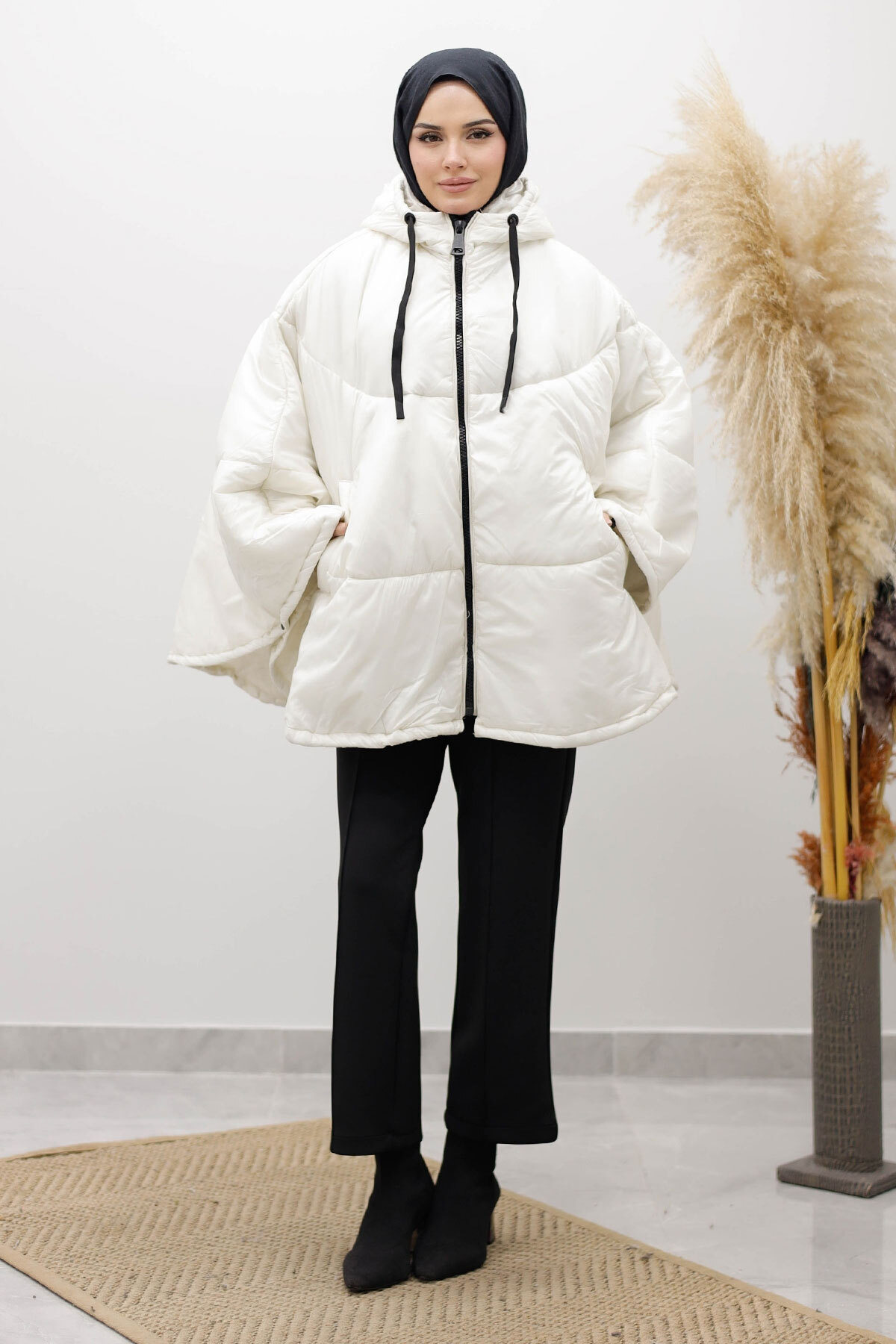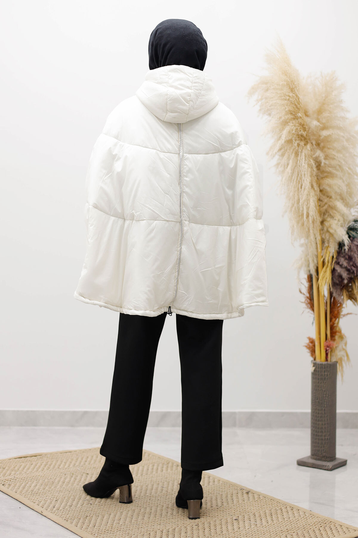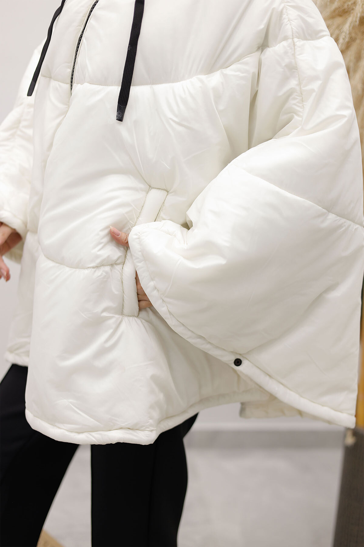 Kapüşonlu Şişme Panço TSD260126 Beyaz