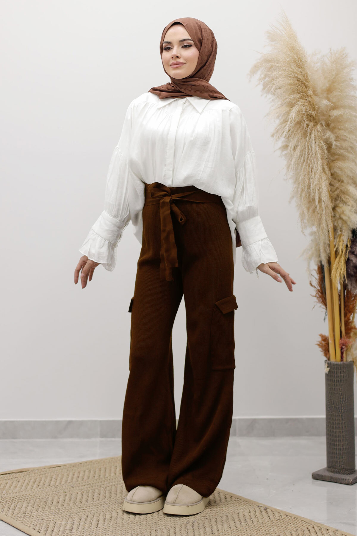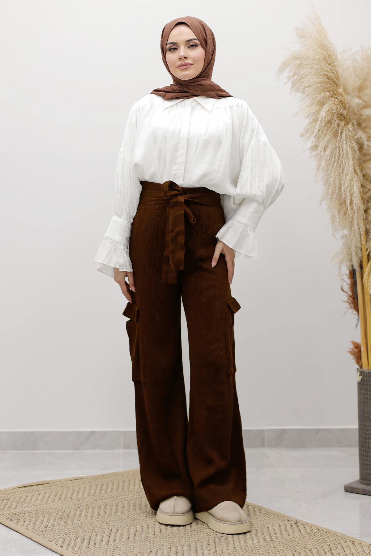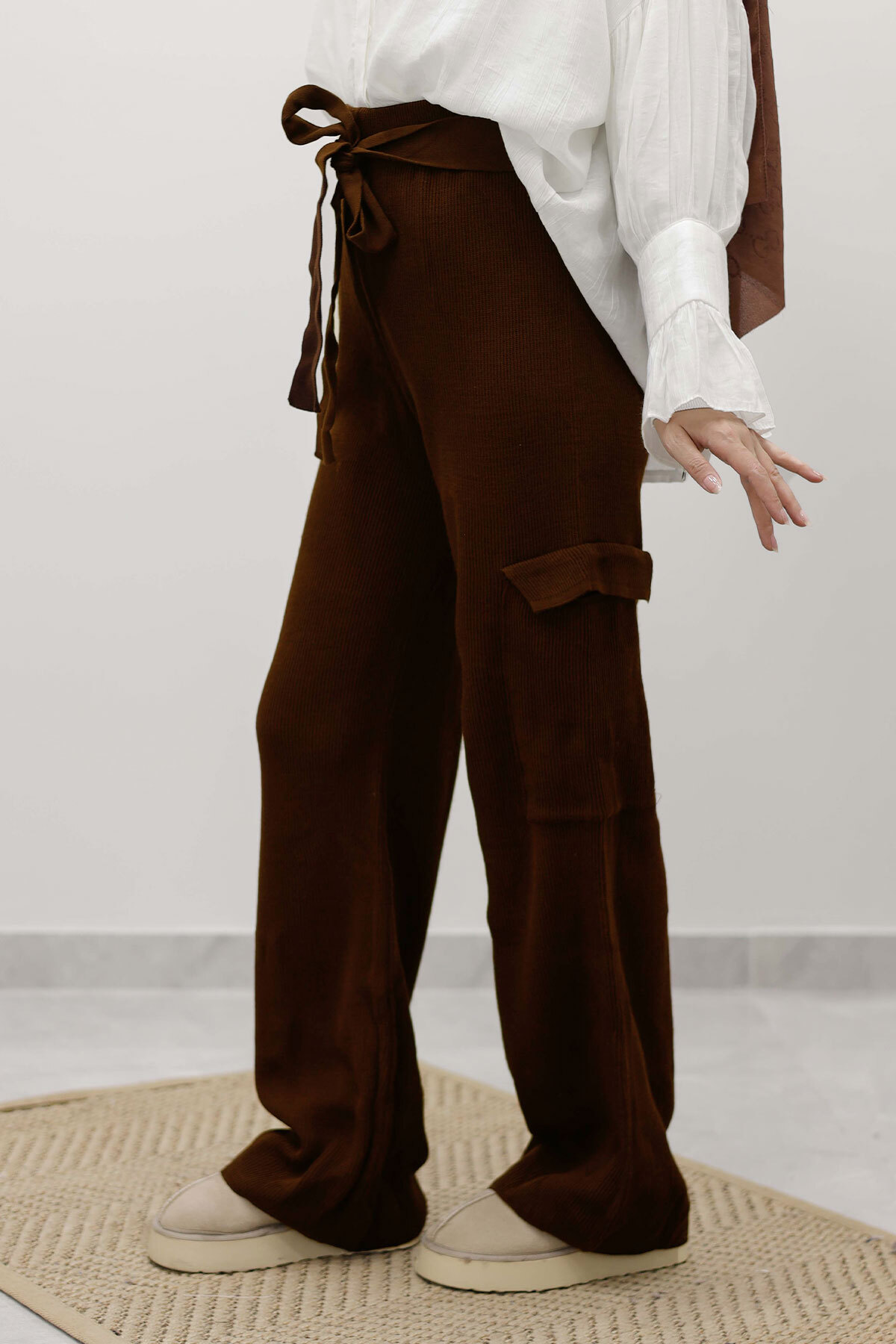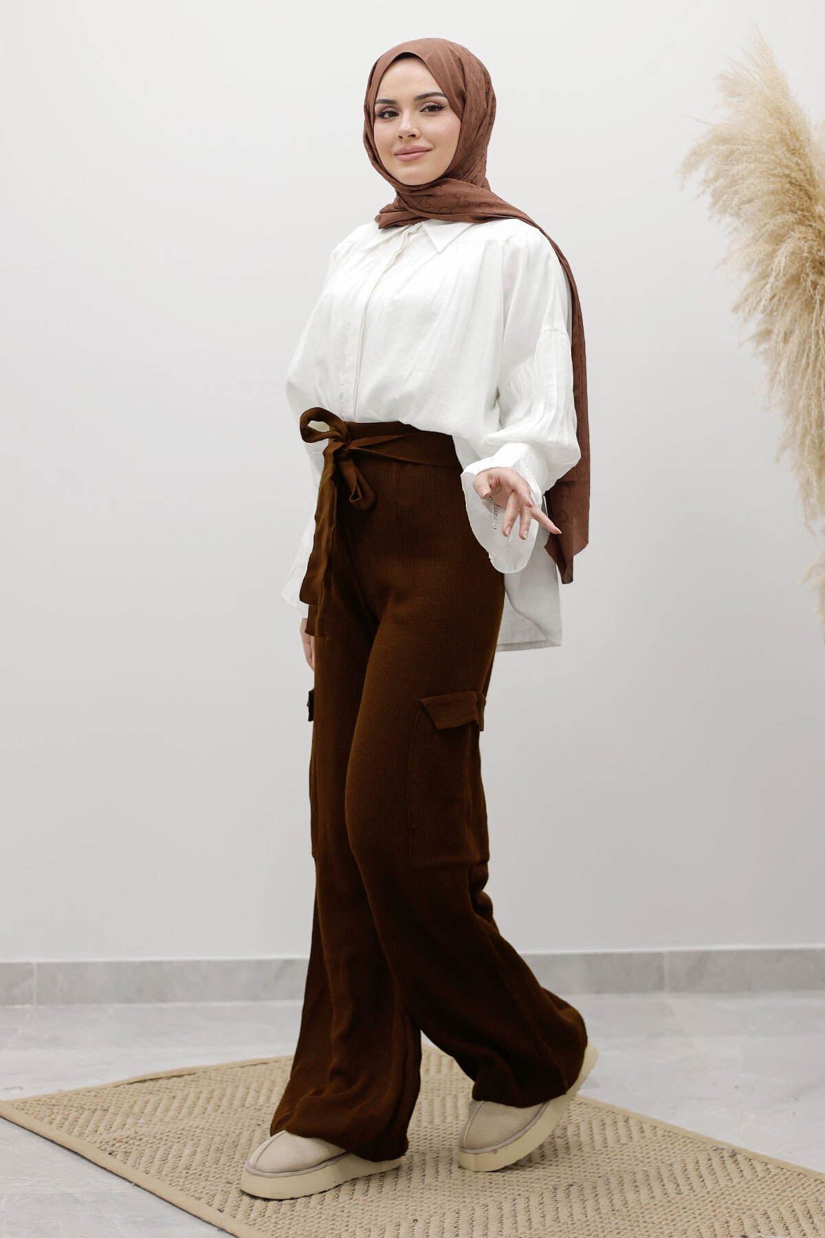Kargo Cepli Triko Pantolon TSD260124 Kahverengi Özellikleri