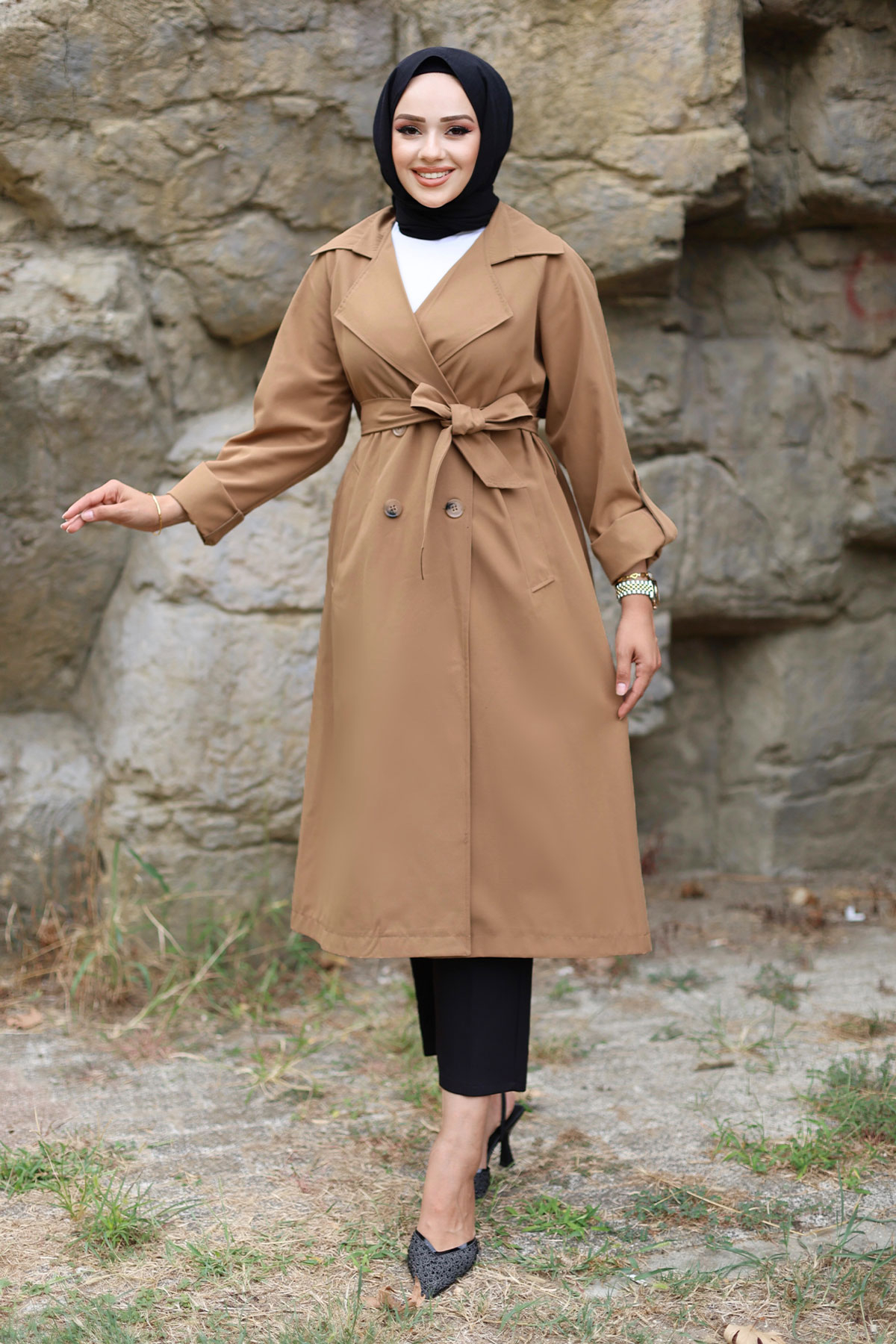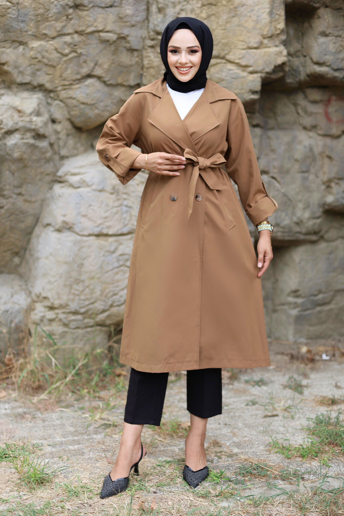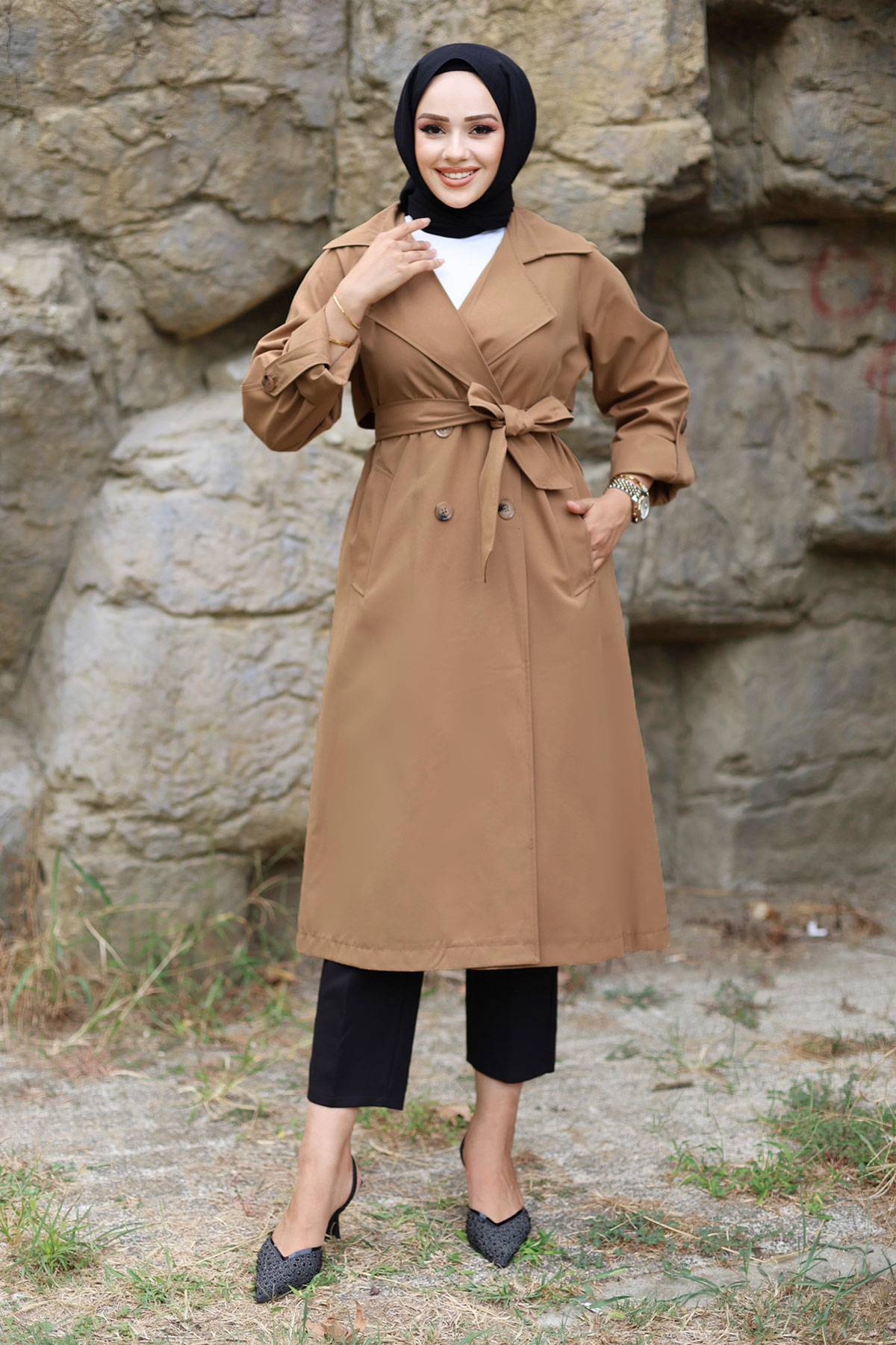 Katlama Kol Detaylı Trençkot TSD240921 Taba Özellikleri