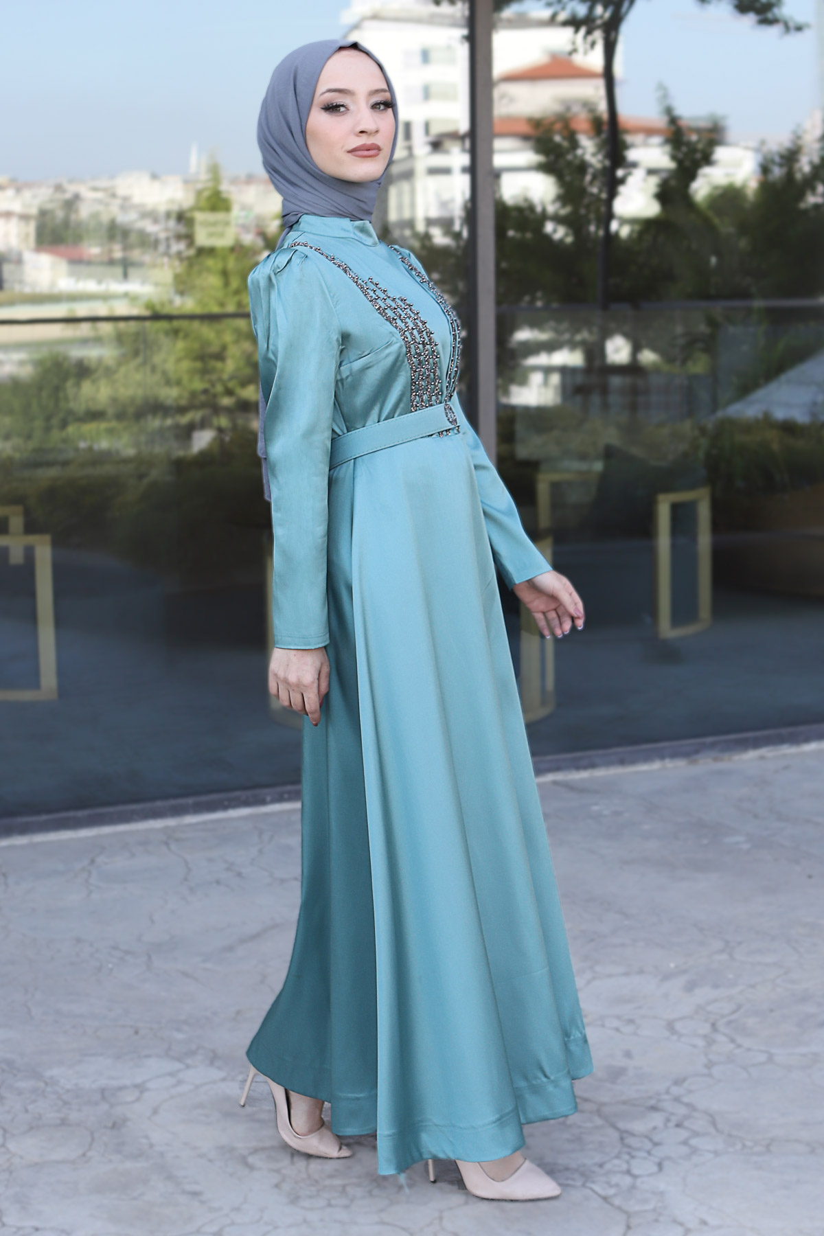 Ürün Özelliği : Yeni sezon Kemer Detaylı Abiye modelidir. Kapalı boğazlı yakalıdır. Önünde ve kemerinde taş detayı vardır. Arkadan fermuar ile kapanmaktadır, iç göstermez. Belindeki kemer çıkarılabilirdir.Özel günlerinizde şıklığınıza şıklık katacak abiye modelidir. Ürün renginde konsept çekimlerinden dolayı ton farklılığı olabilir.