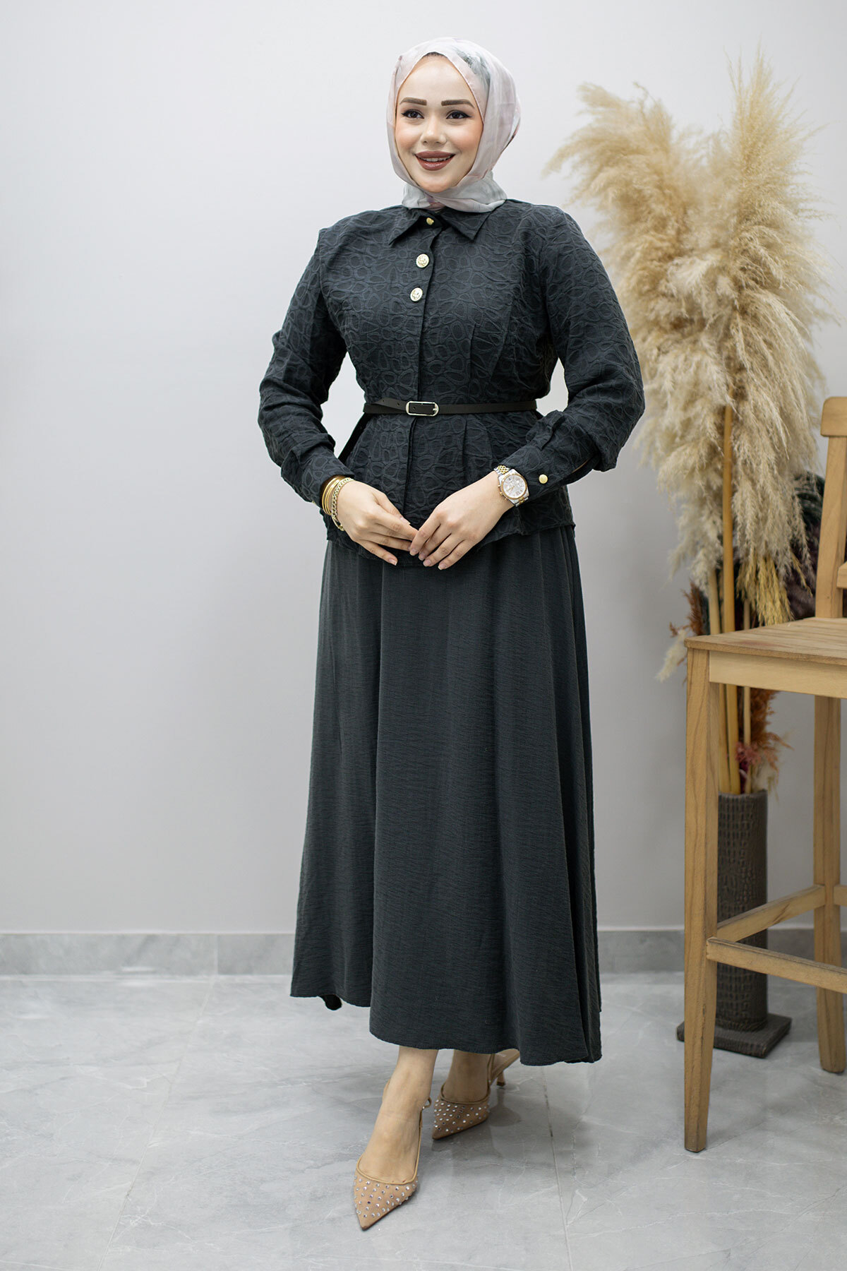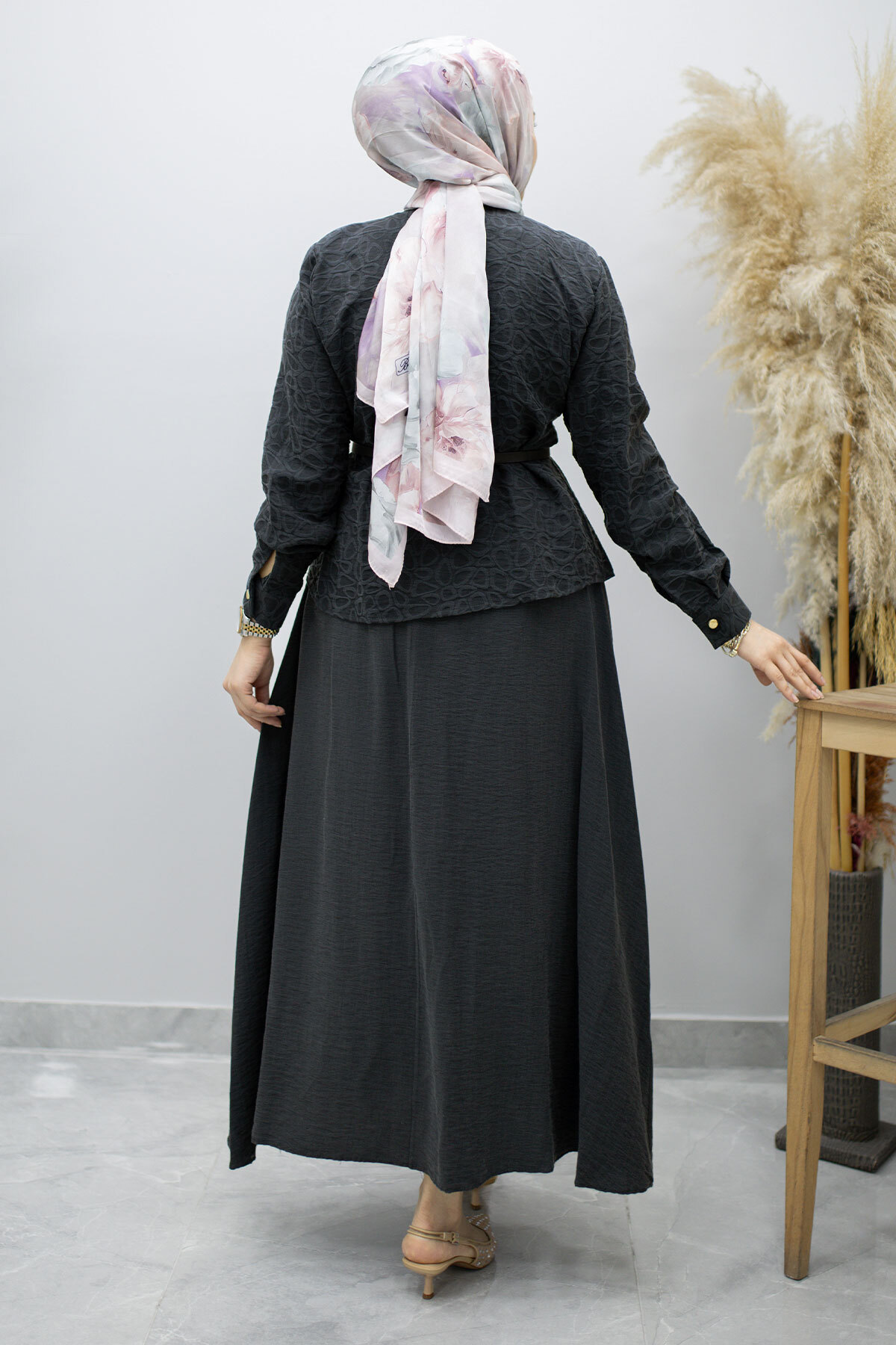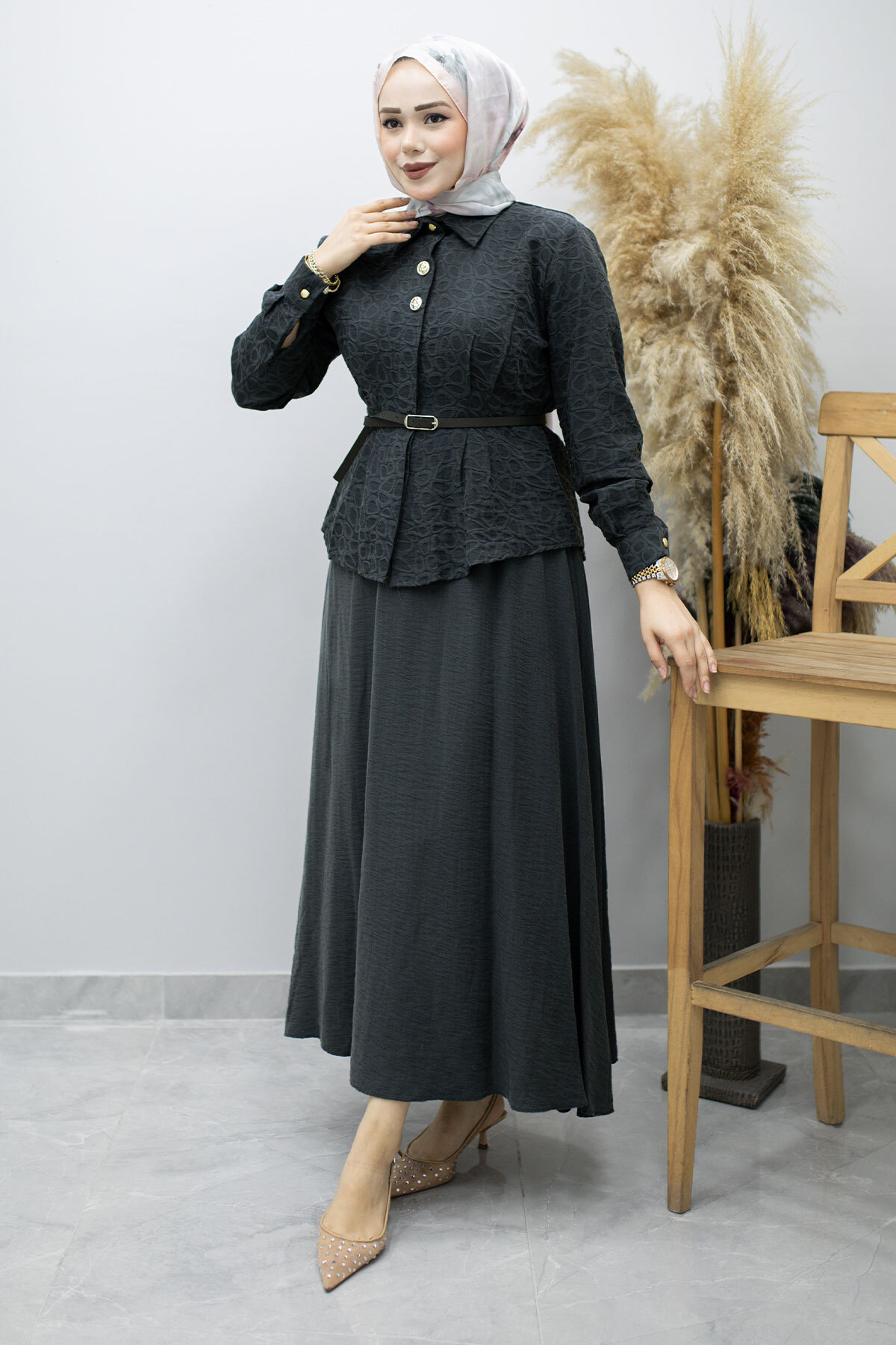 Kemerli Beli Pensli Etekli Takım TSD260180 Antrasit