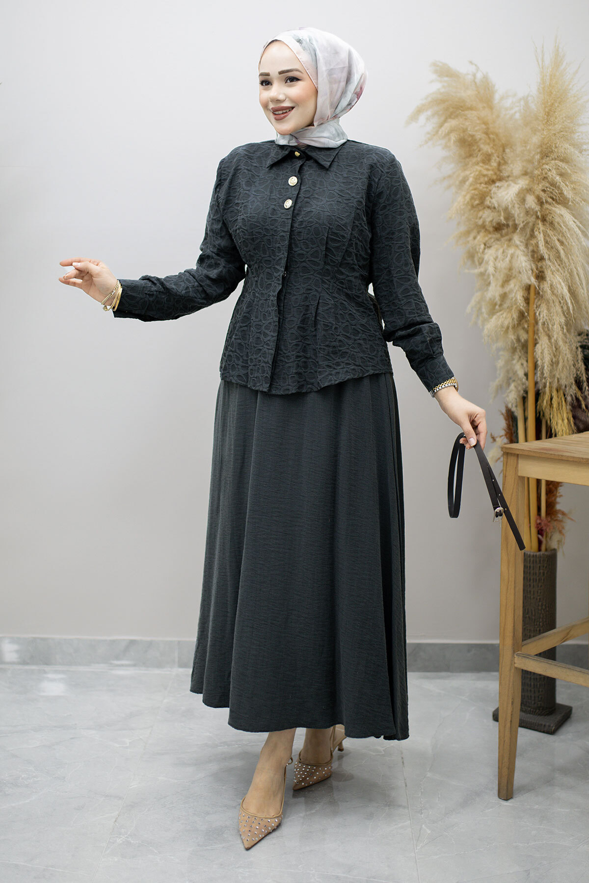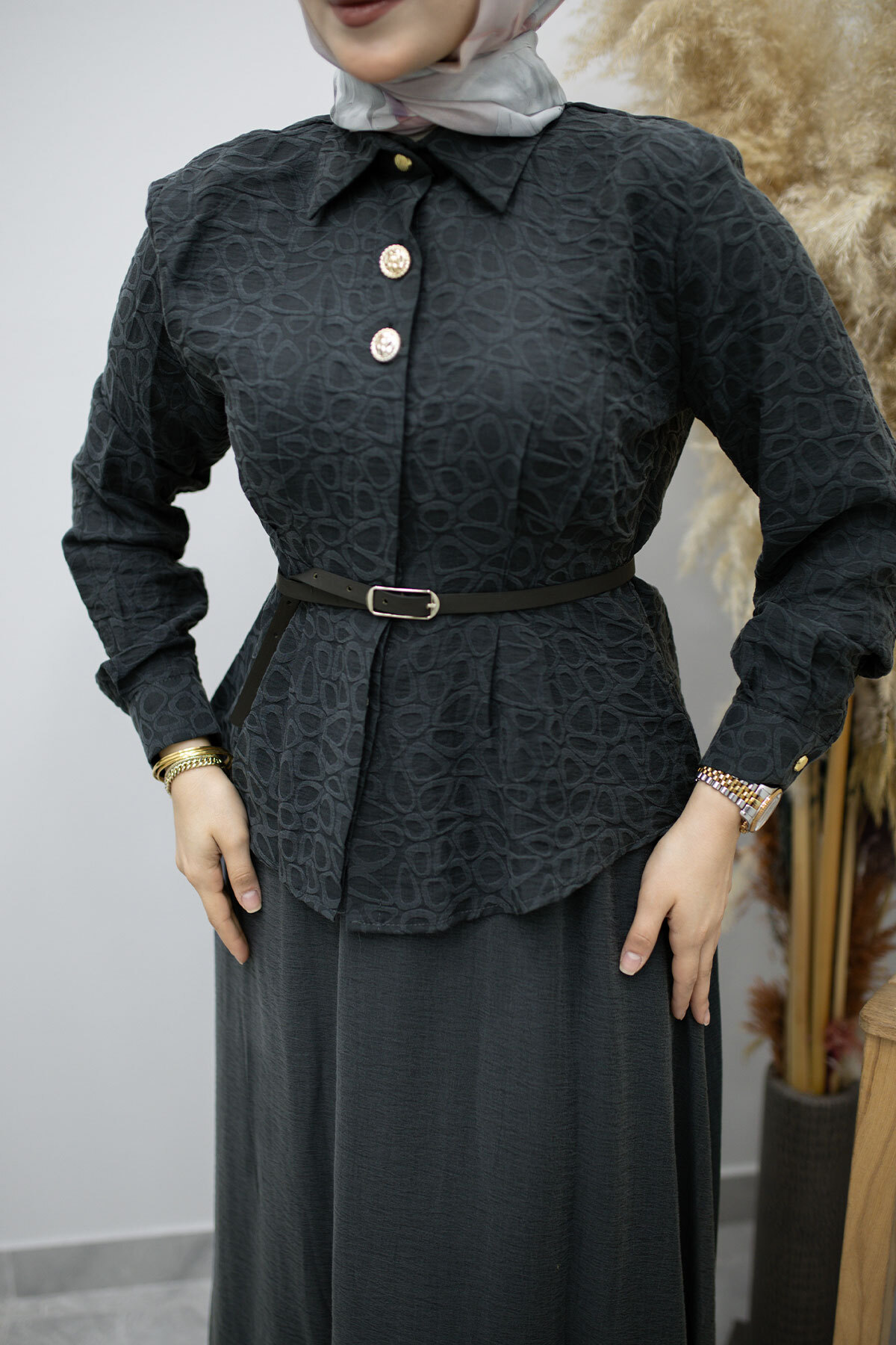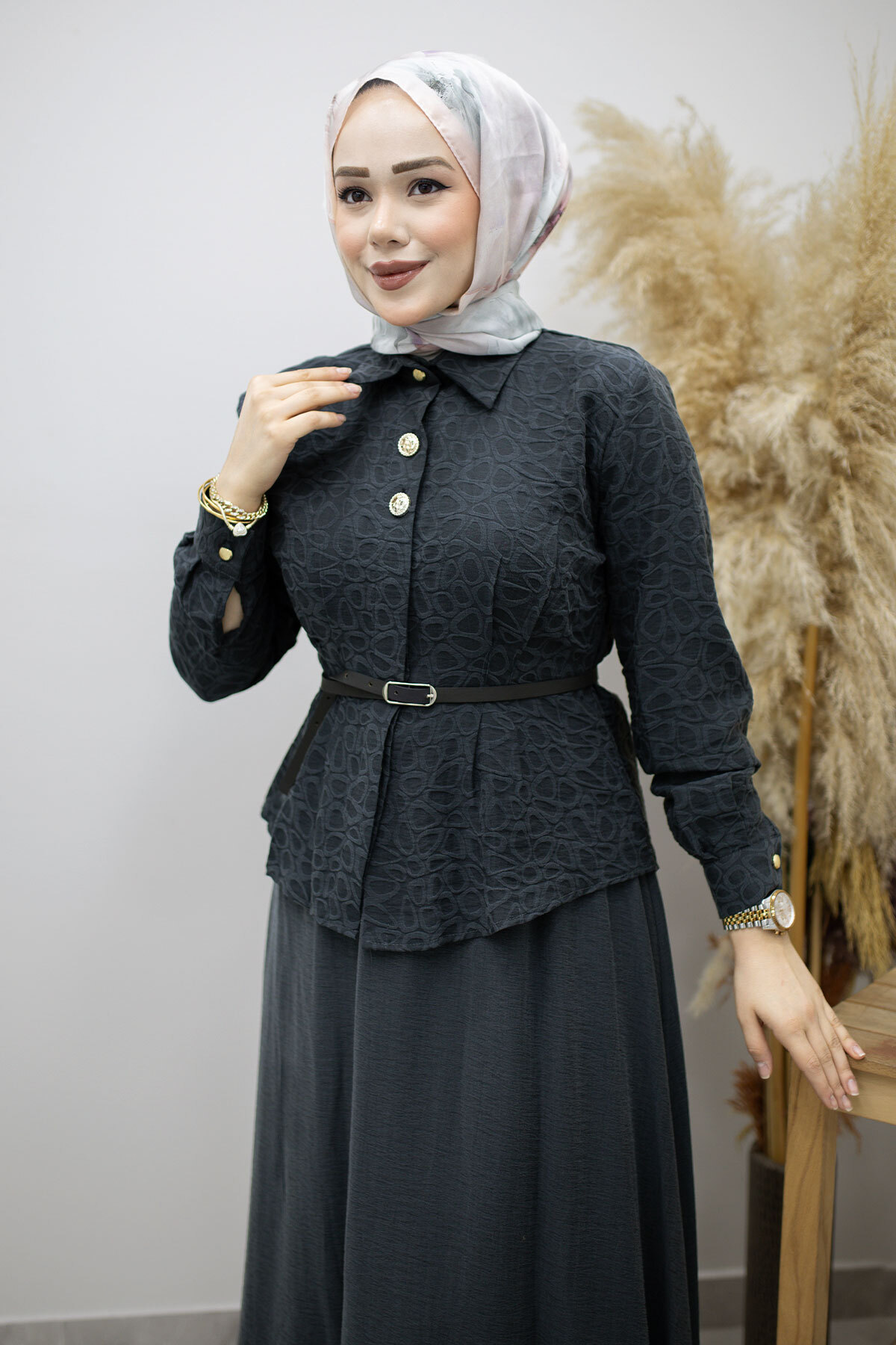 Kemerli Beli Pensli Etekli Takım TSD260180 Antrasit