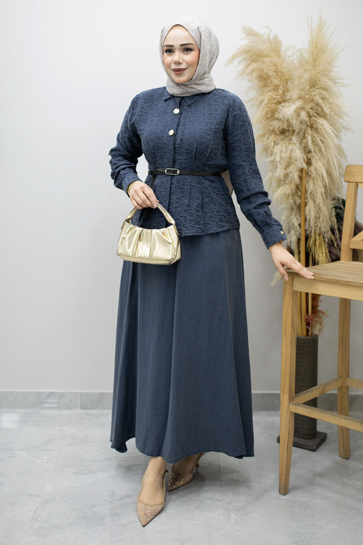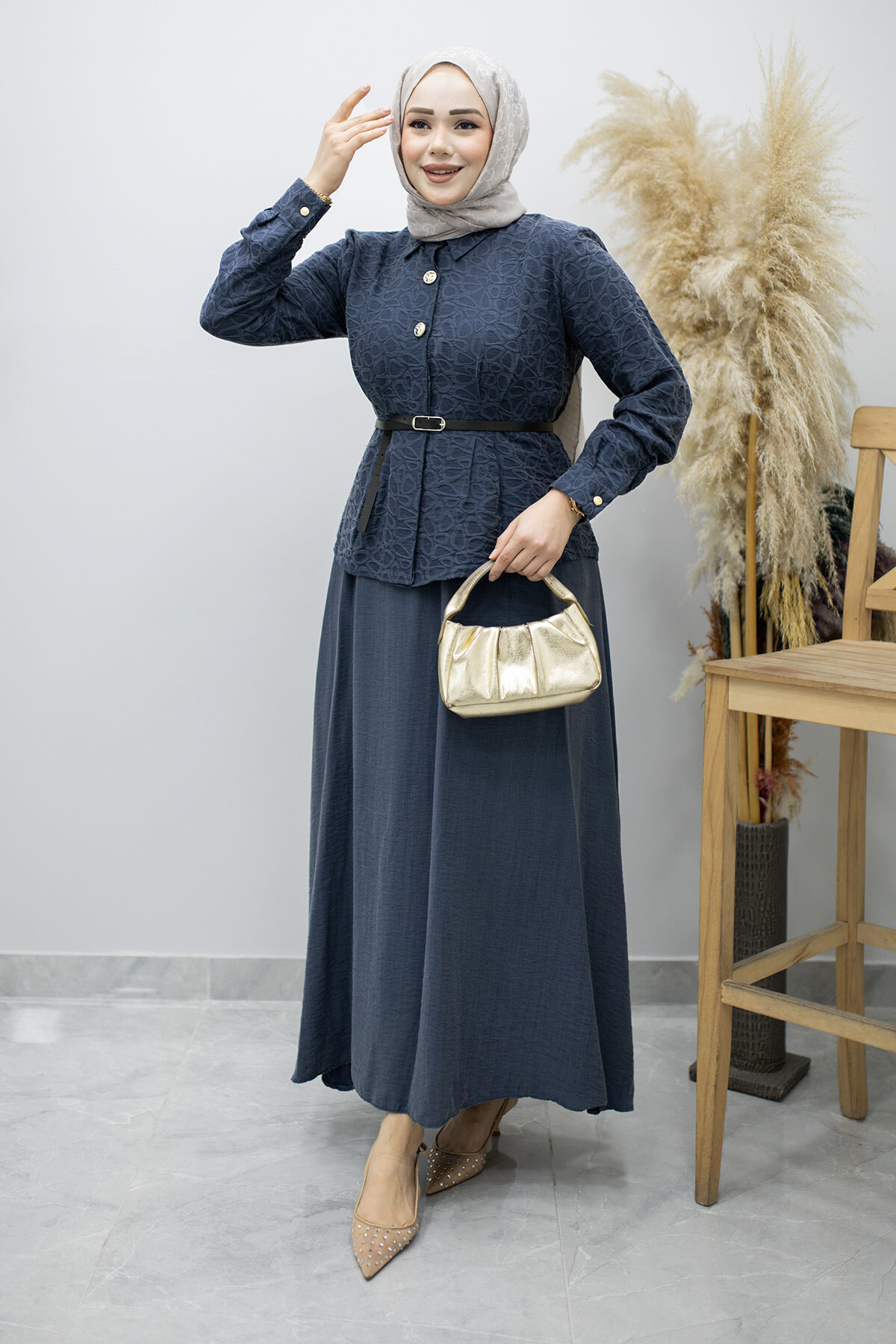 Kemerli Beli Pensli Etekli Takım TSD260180 Lacivert Özellikleri