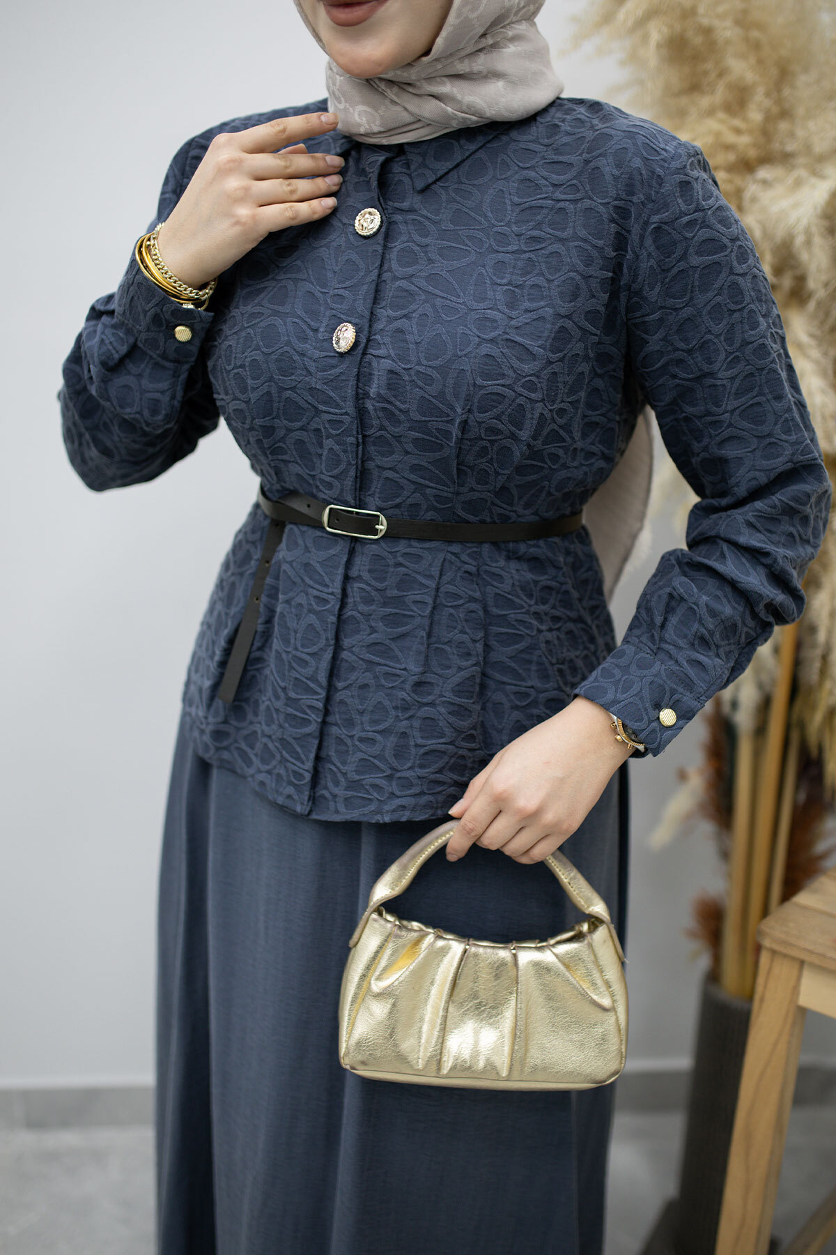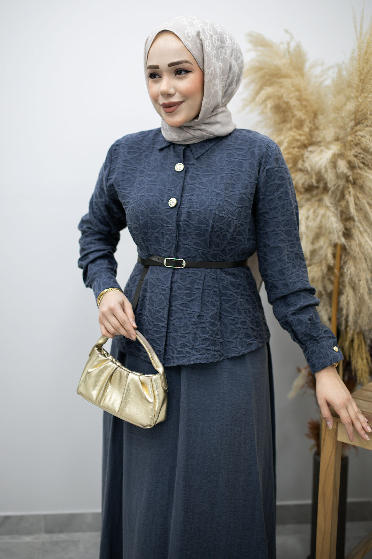 Tunik düğmeli olmak ile birlikte Kemerlidir