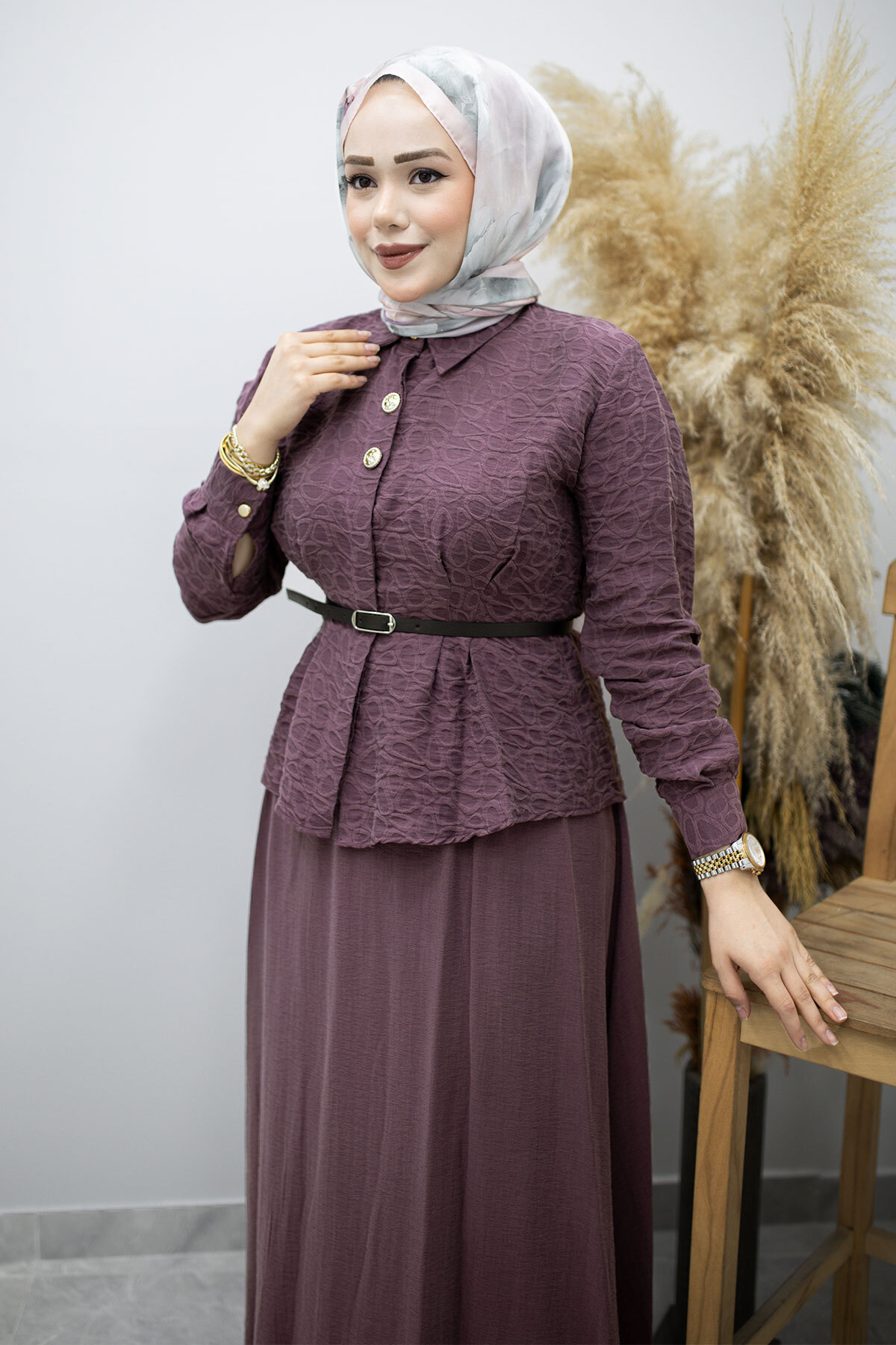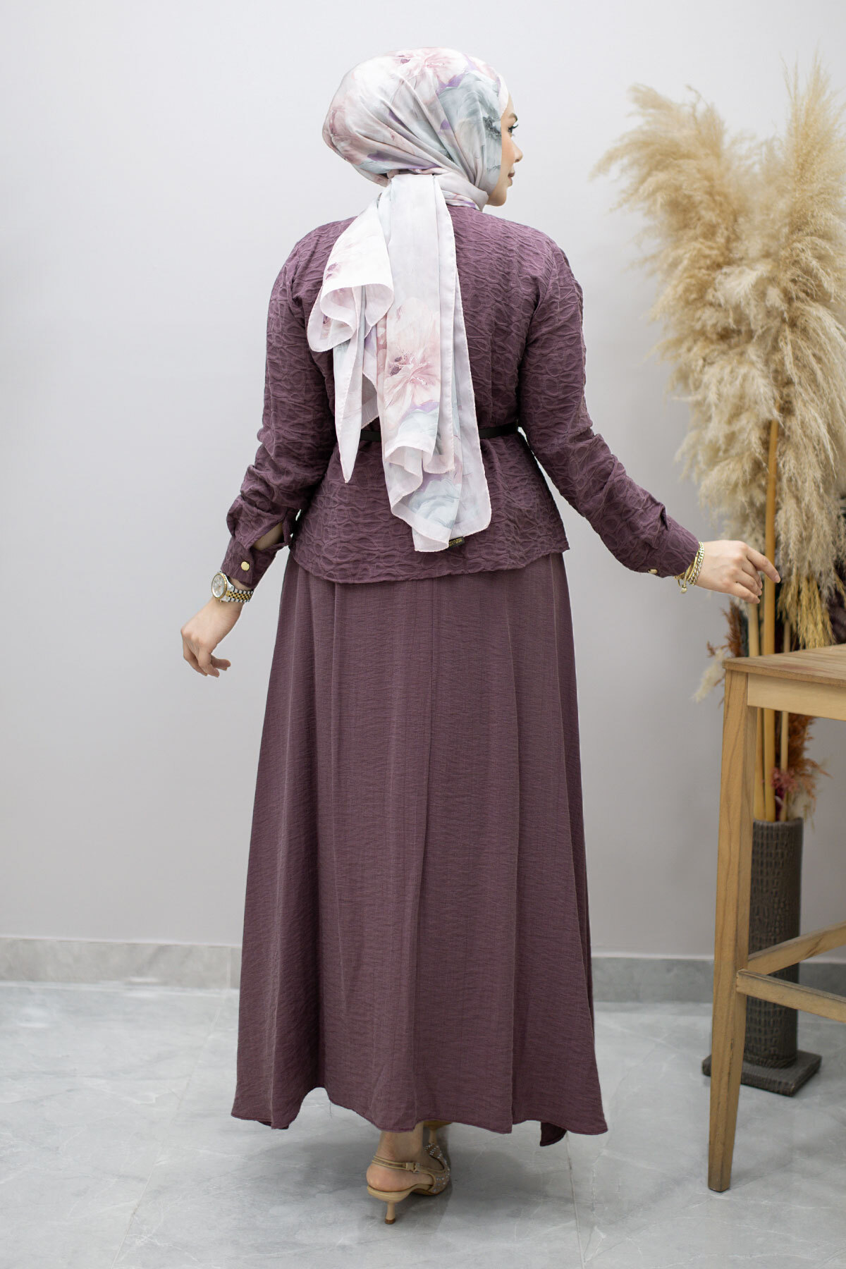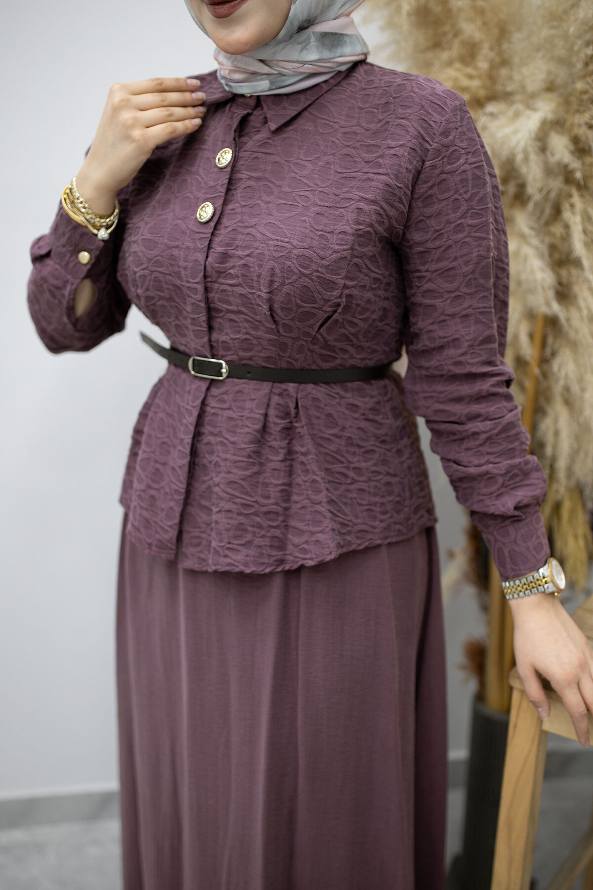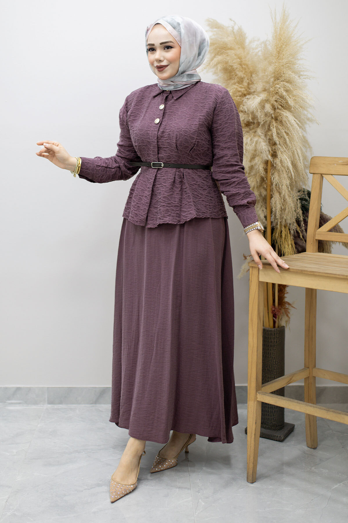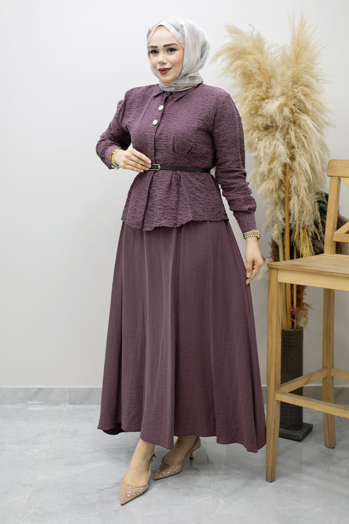Kemerli Beli Pensli Etekli Takım TSD260180 Mürdüm