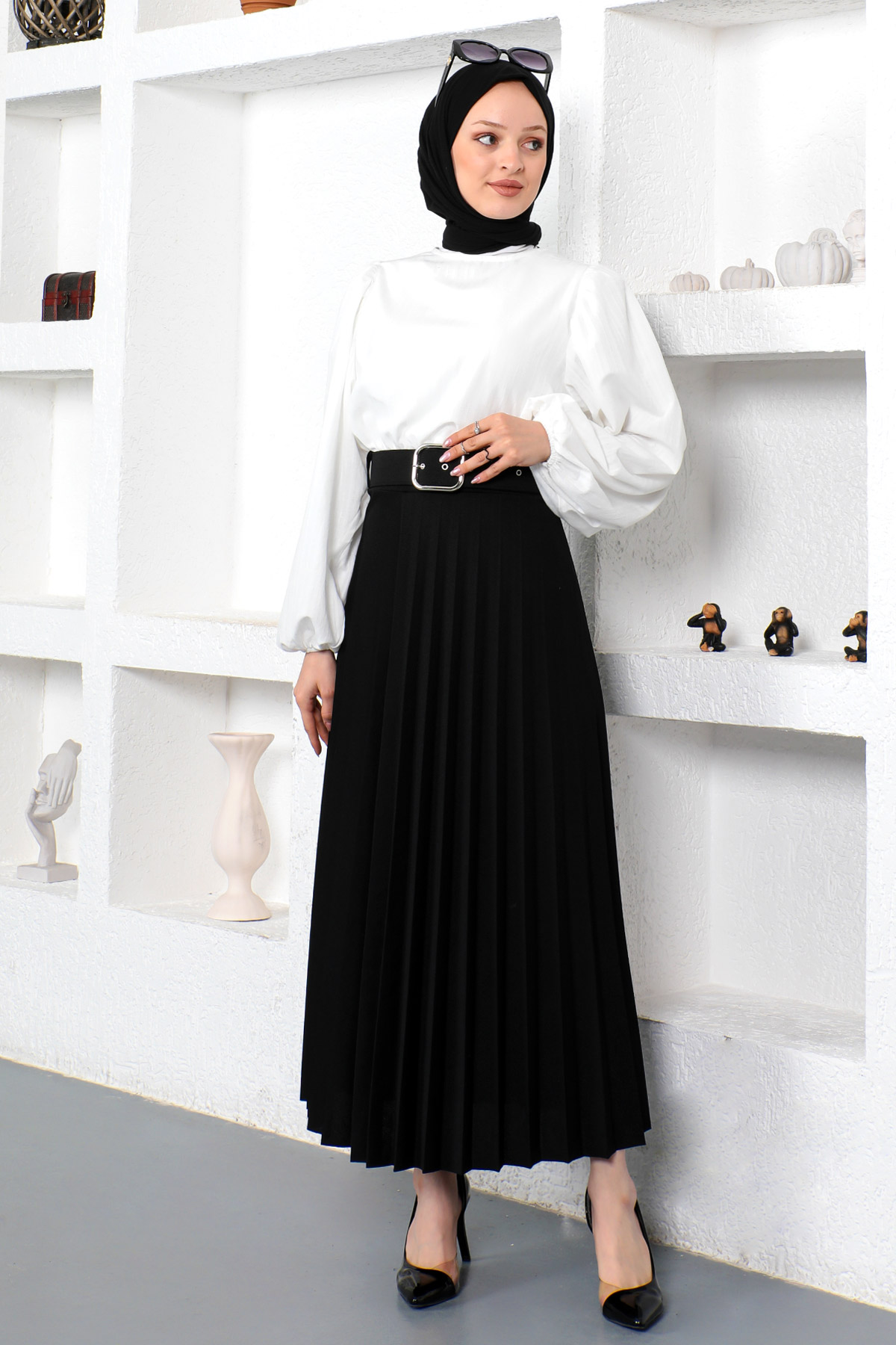 Kemerli Pileli Etek TSD220915 Siyah Özellikleri