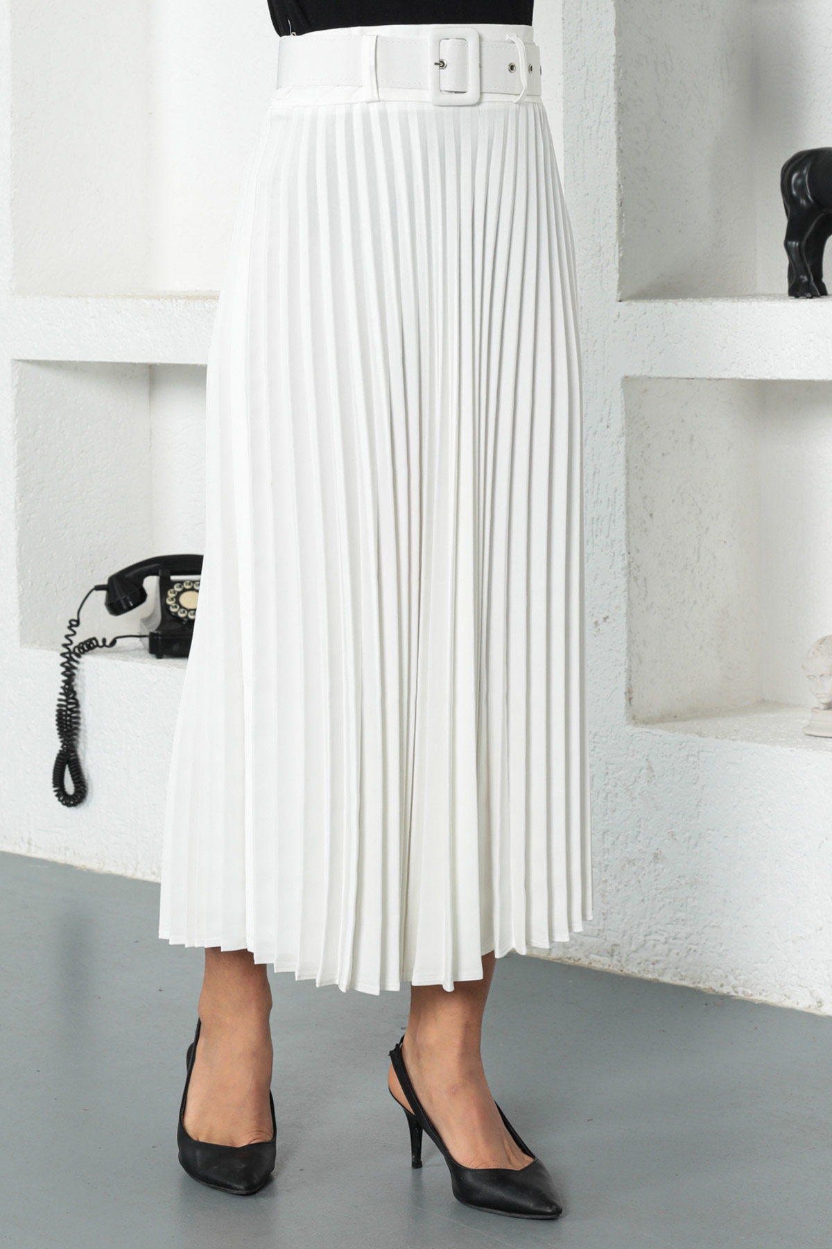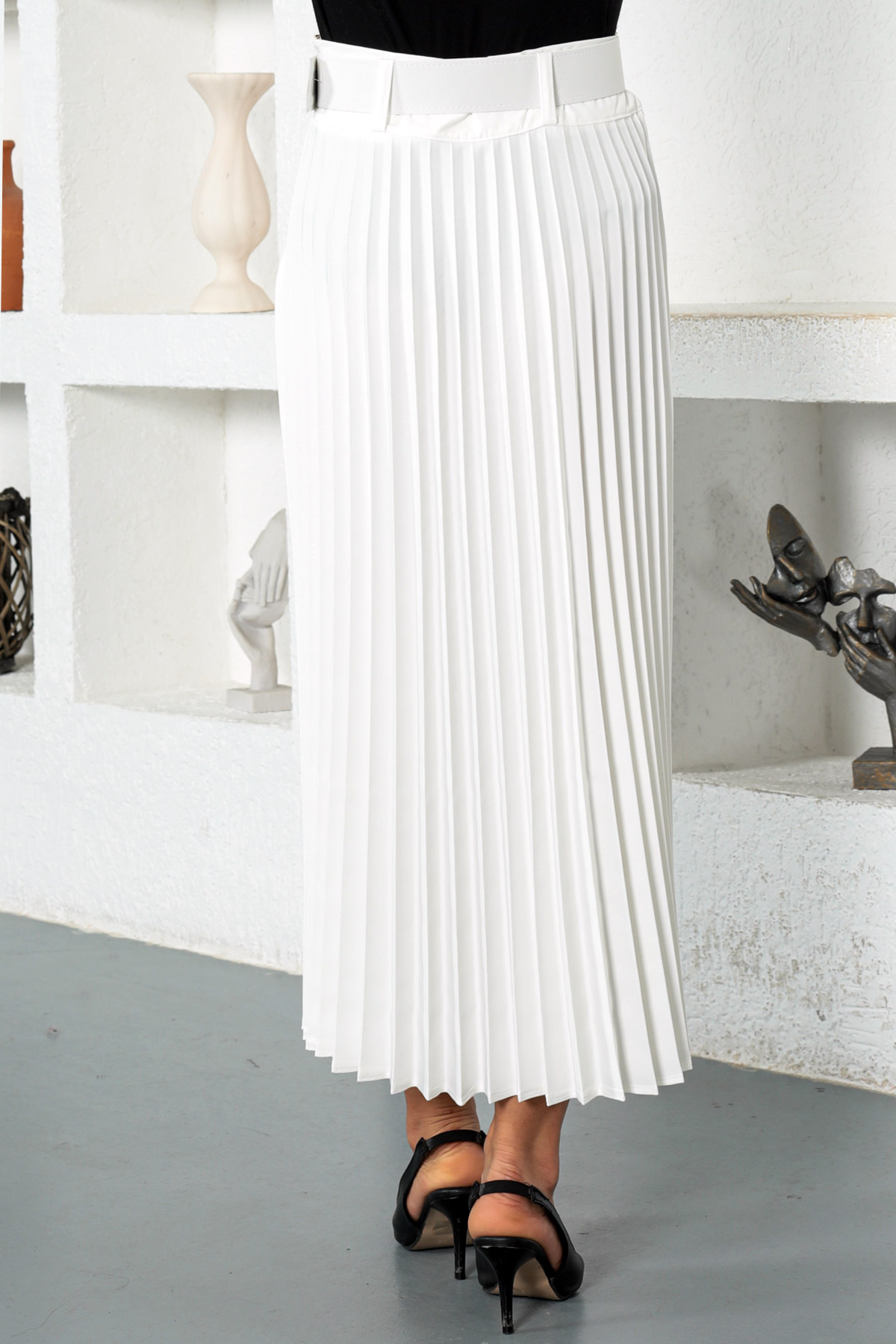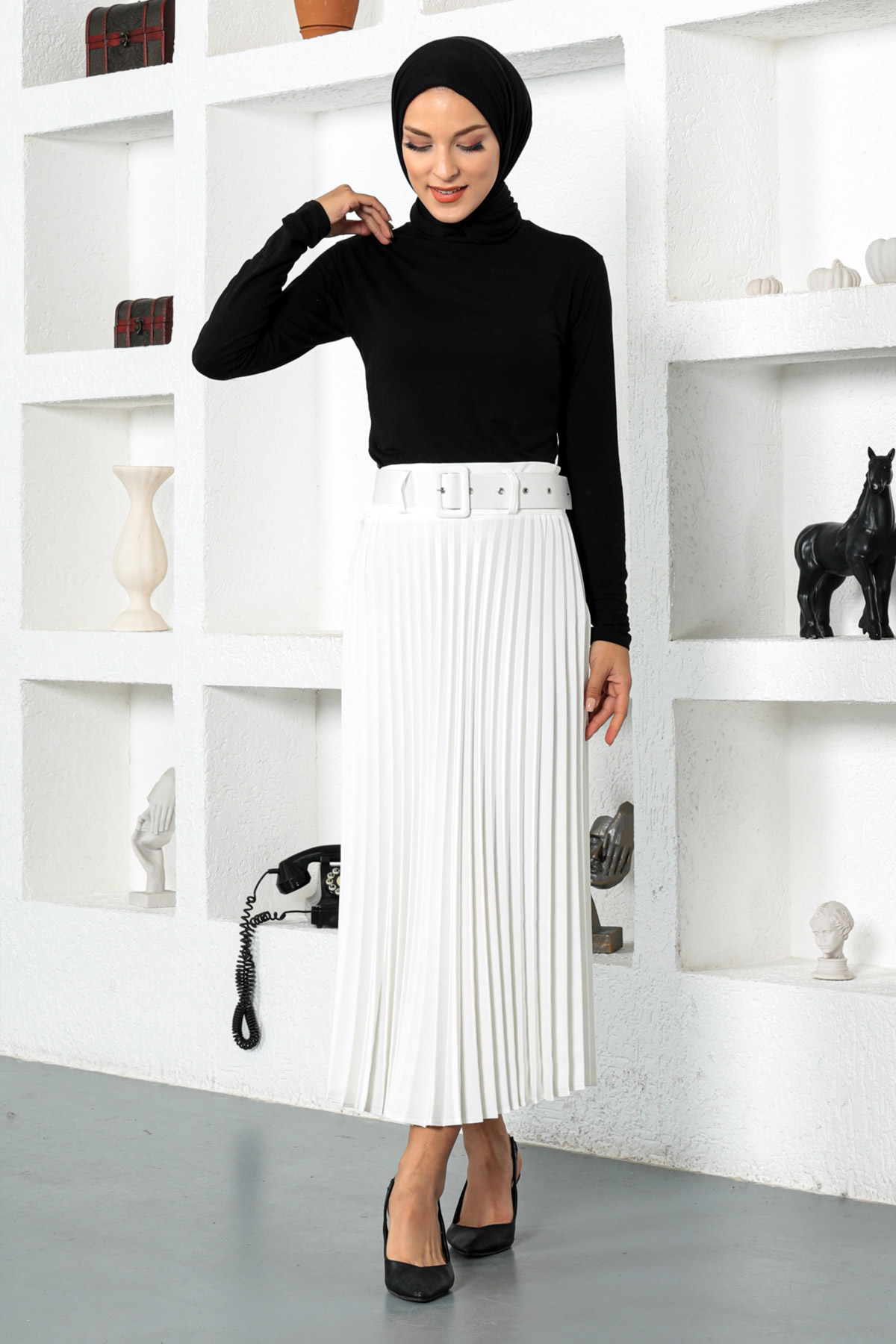 Ürün Özelliği : Yeni sezon Kemerli Piliseli Tesettür Etek modelidir. Pileli ve kendinden lastikli etektir. Cep bulunmamaktadır. Ürün renginde konsept çekimlerinden dolayı ton farklılığı olabilir.