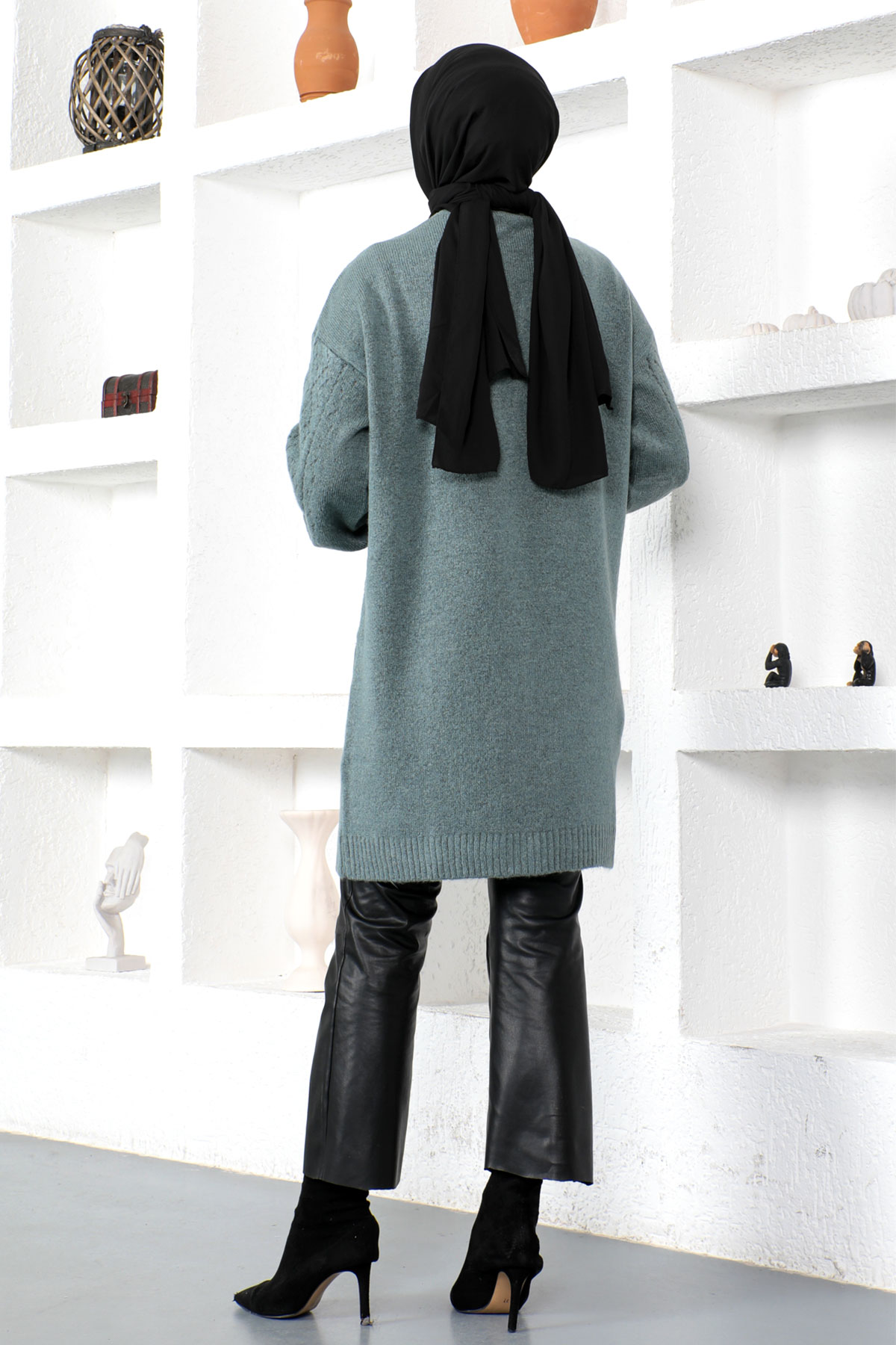 Kendinden Desenli Triko Hırka TSD230210 Yeşil