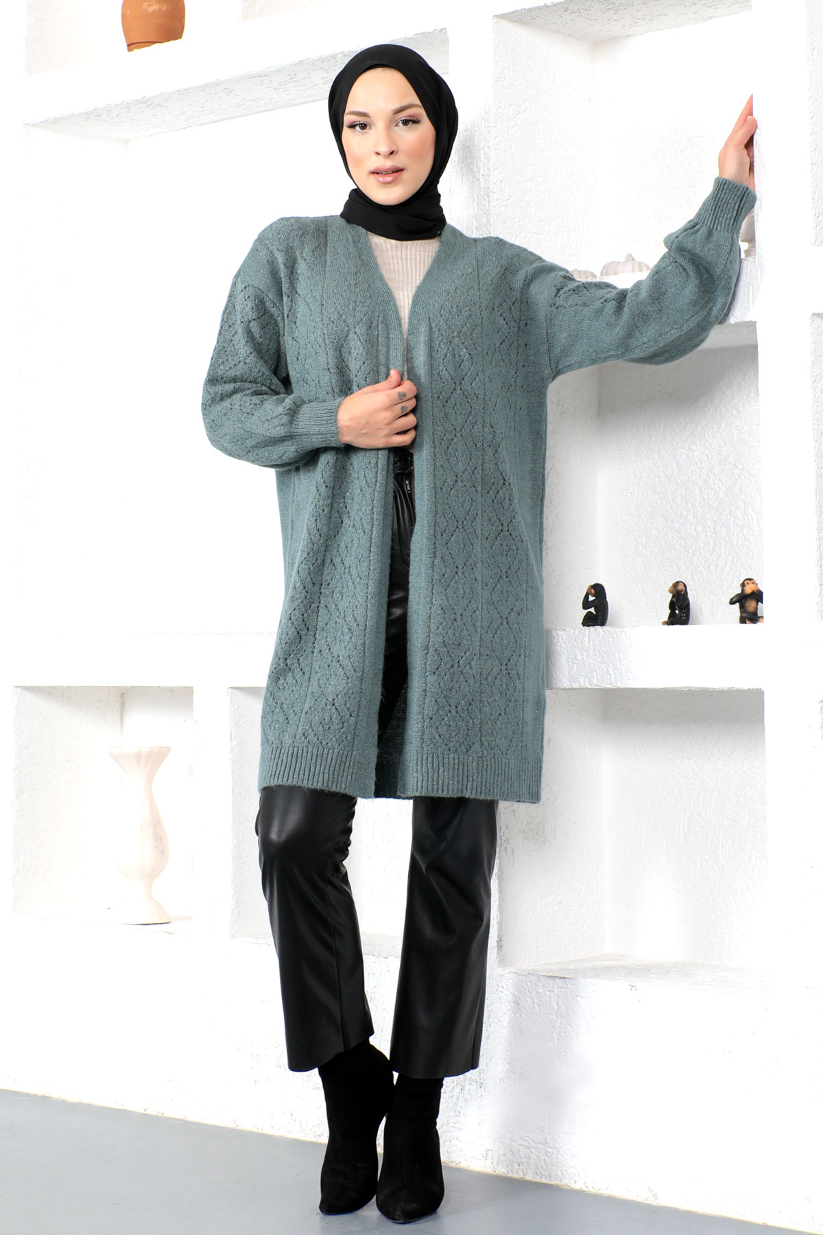 Ürün Özelliği : Yeni sezon Kendinden Desenli Triko Hırka modelidir. Ürün düşük kol modellidir. Triko üründür. Düğmesizdir. Kendinden işleme desenlidir. Ürün renginde konsept çekimlerinden dolayı ton farklılığı olabilir.