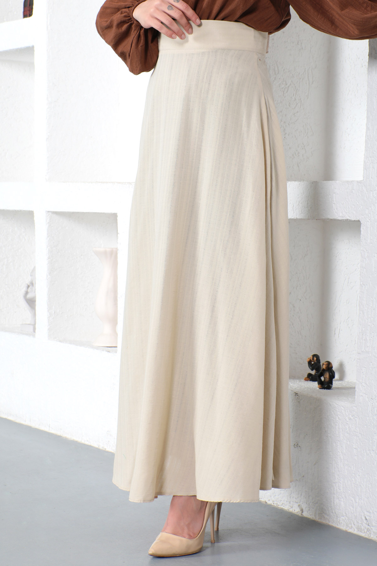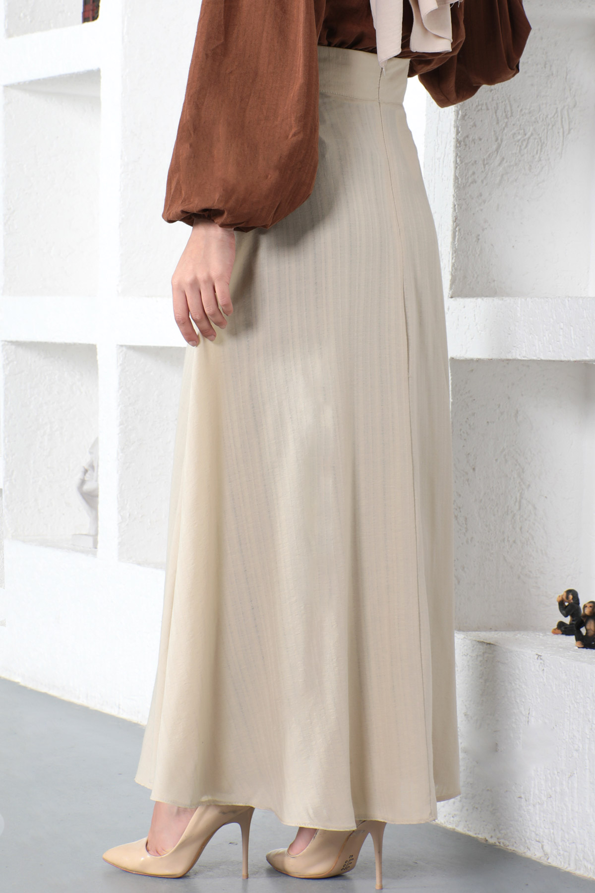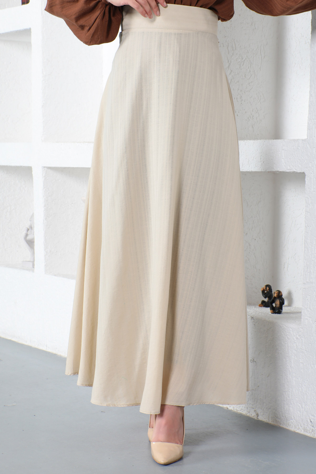 Ürün Özelliği : Yeni sezon Kloş Etek modelidir. Beli lastikli değildir. Fermuar ile açılıp kapanmaktadır. Astarsız üründür.Ürün renginde konsept çekimlerinden dolayı ton farklılığı olabilir.