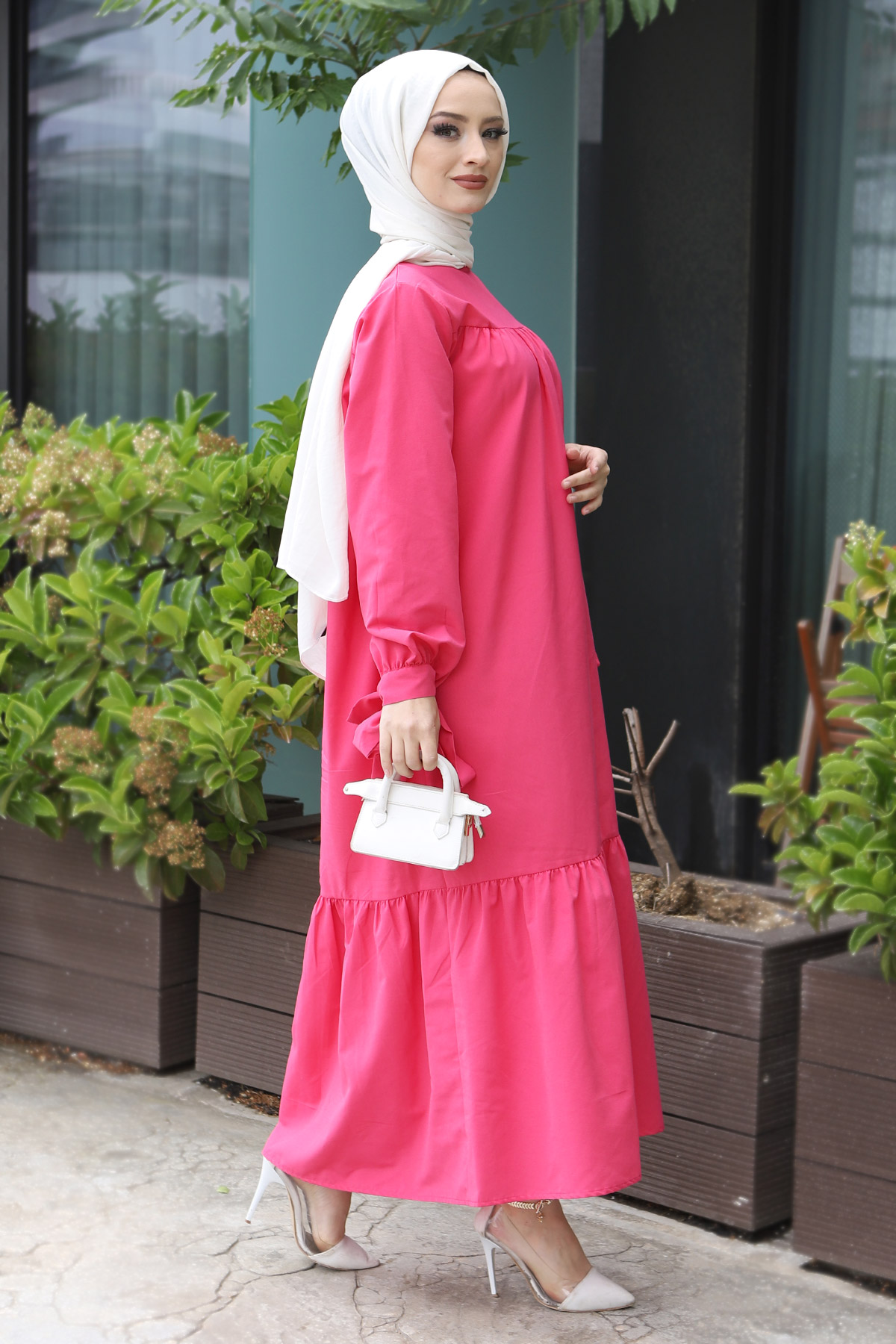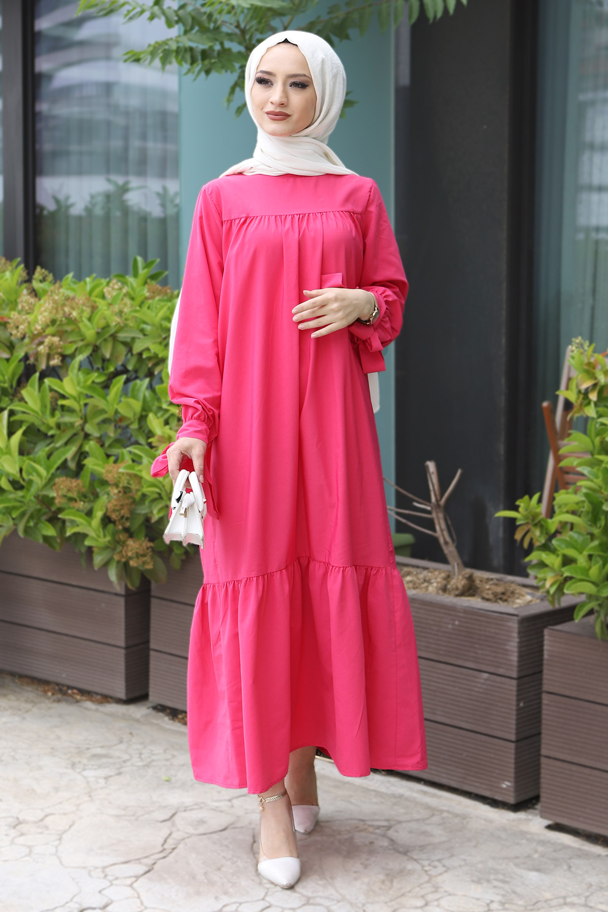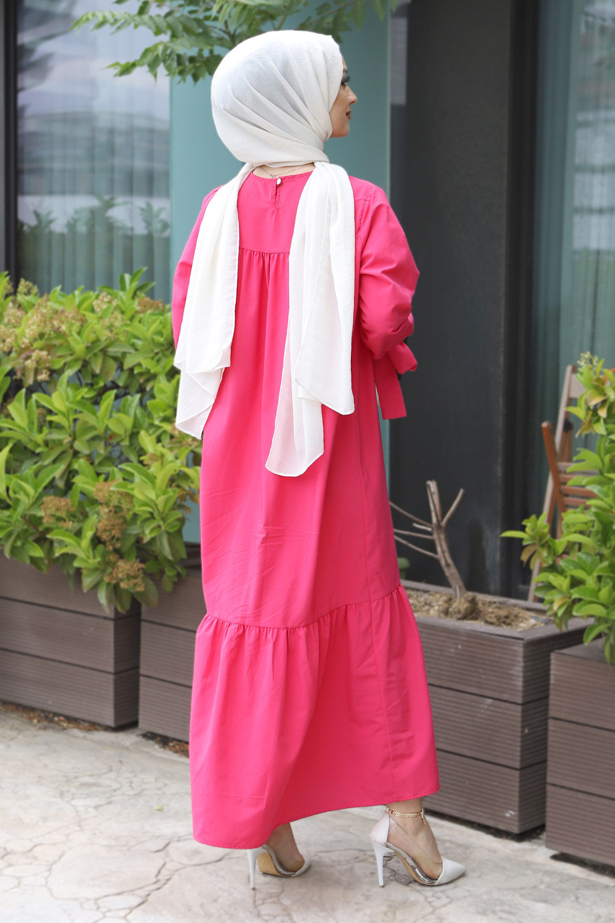 Kol Ucu Bağlamalı Elbise TSD220609 Fuşya Özellikleri