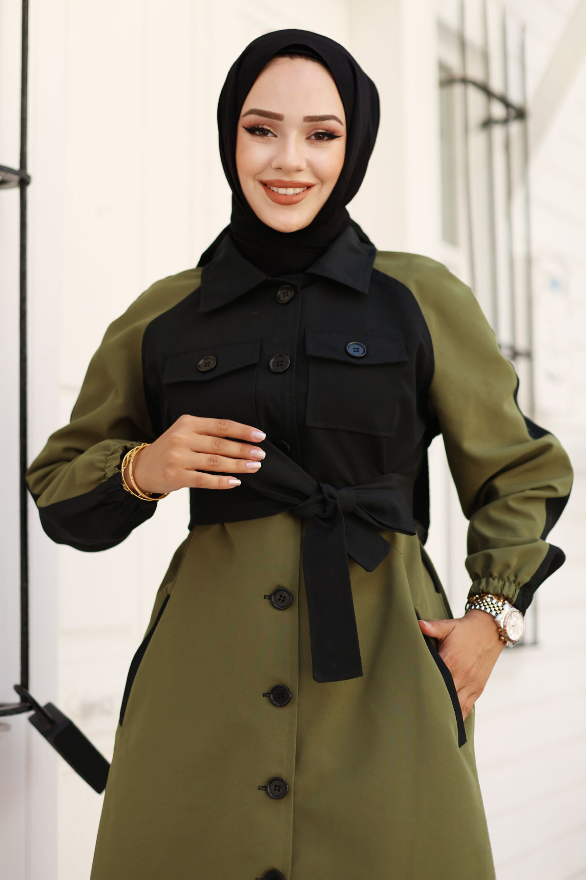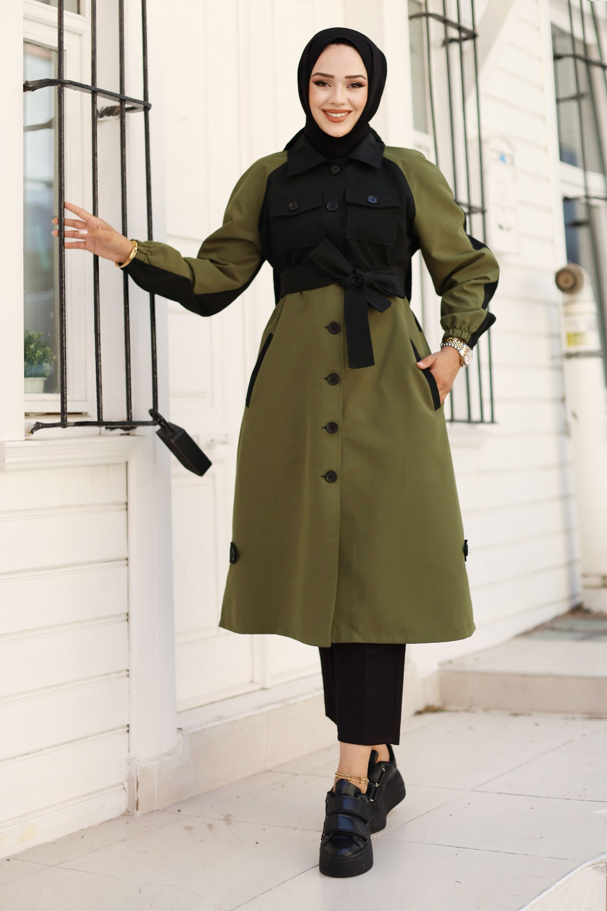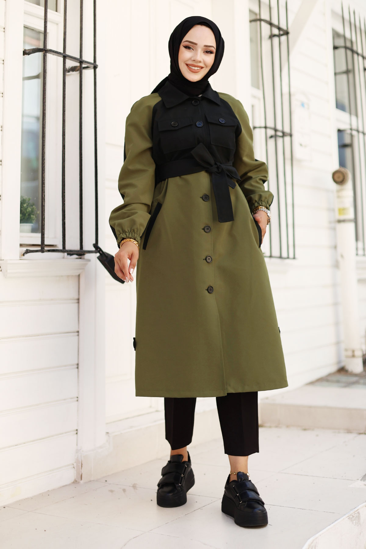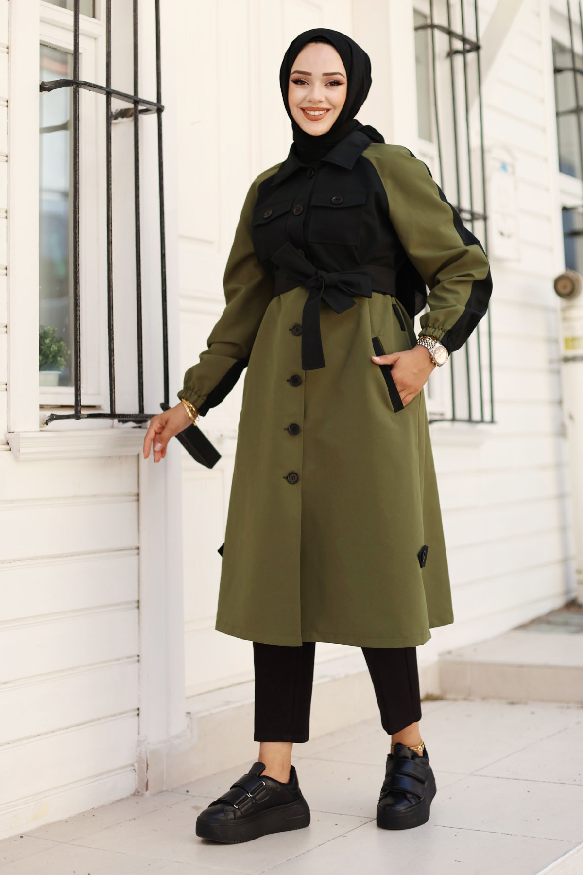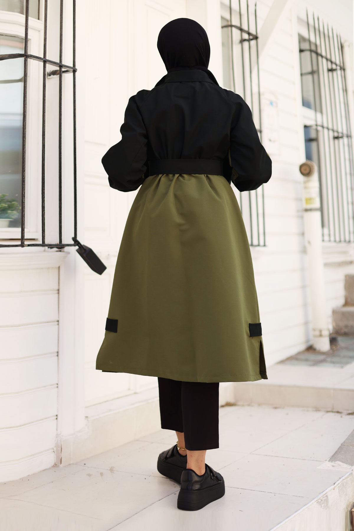 Kol Ucu Lastikli Çift Renkli Trençkot TSD240812 yeşil Özellikleri