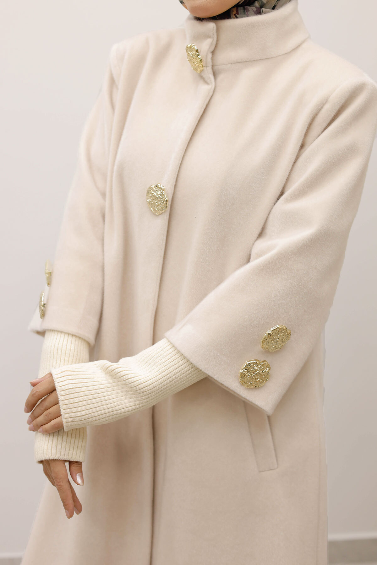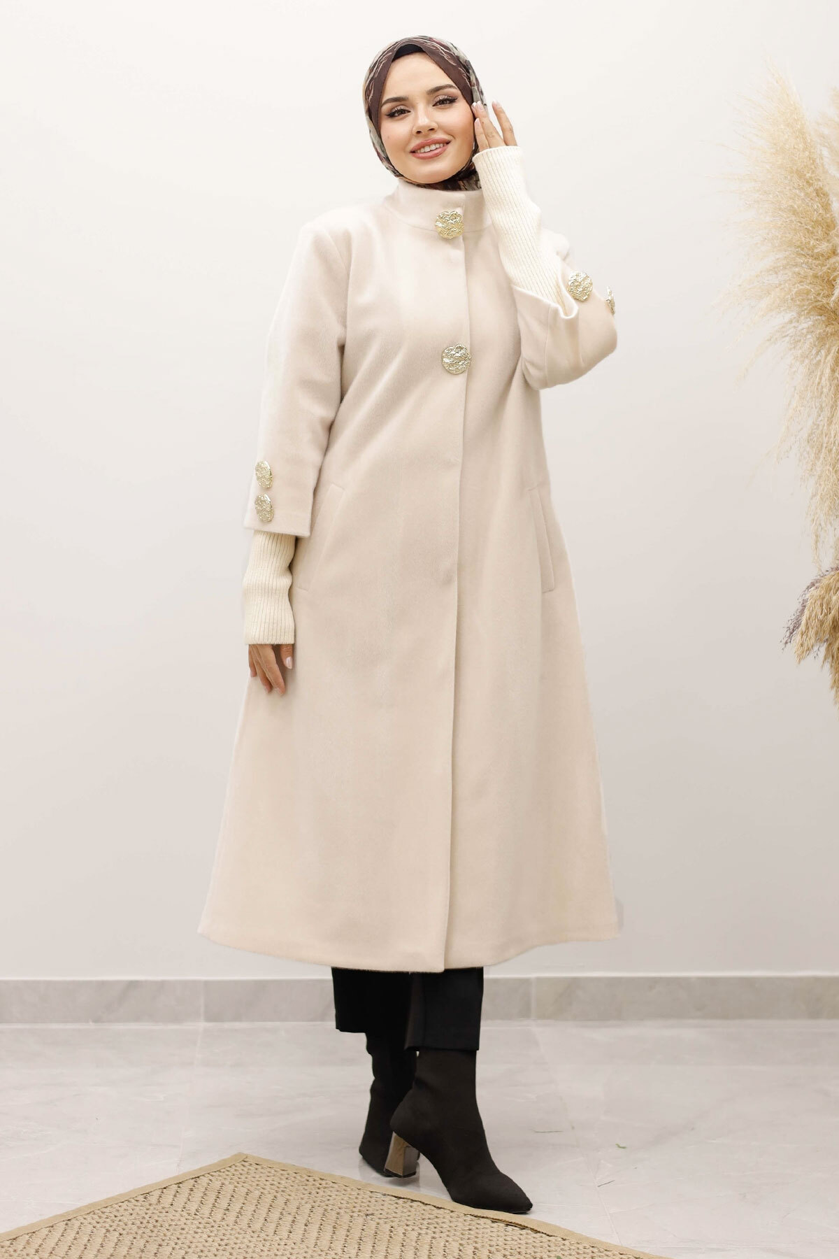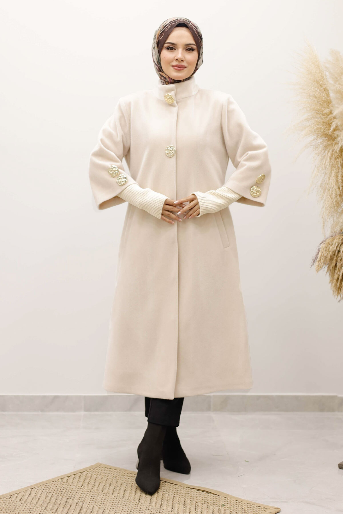 Kol Ucu Triko Detaylı Angora Fox Kaban TSD250246 Bej Özellikleri