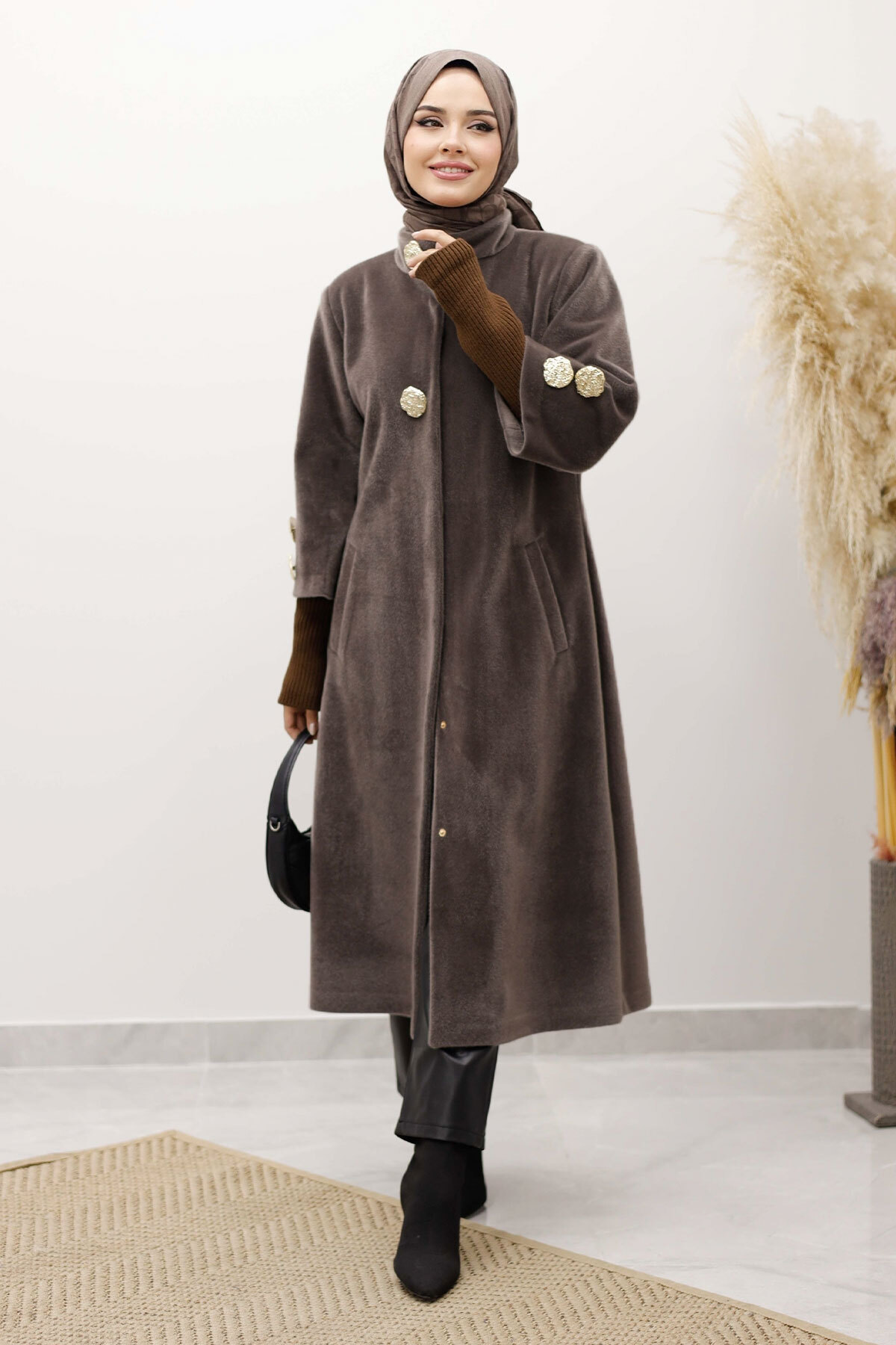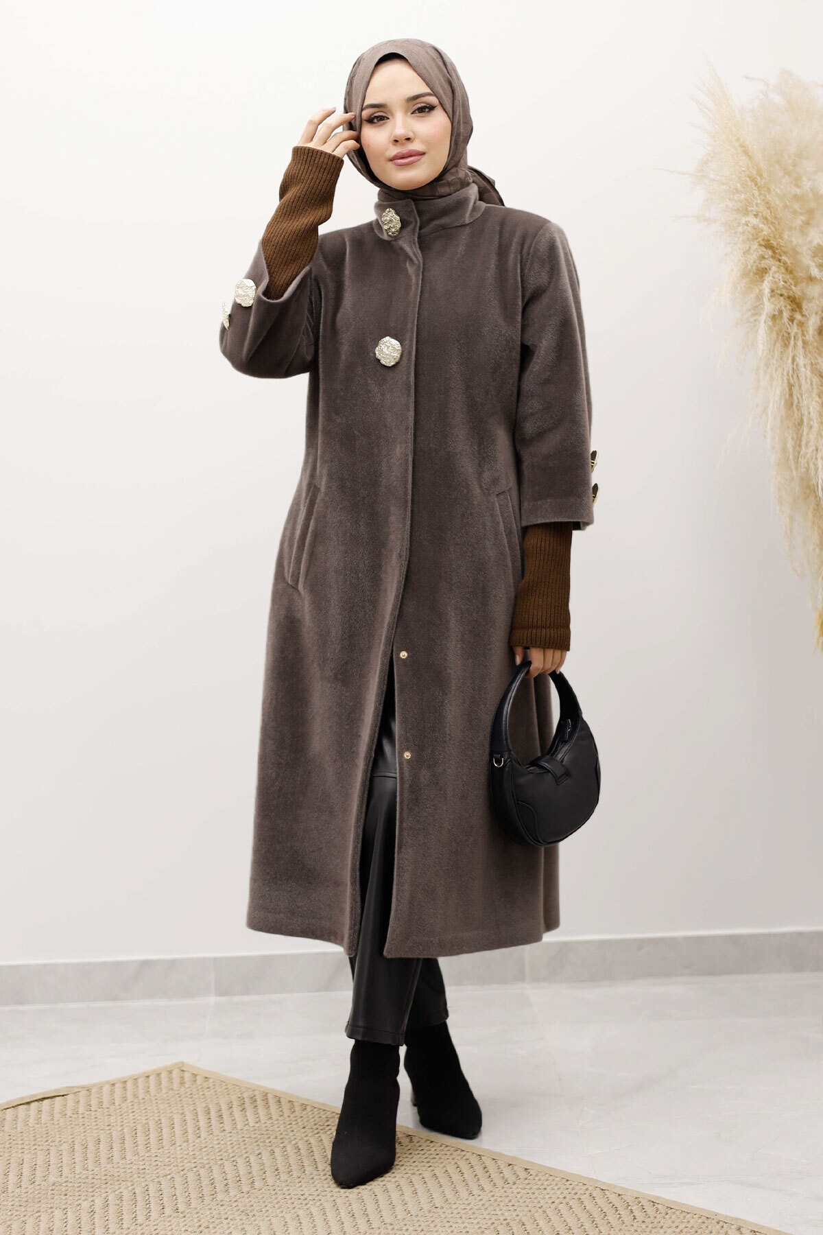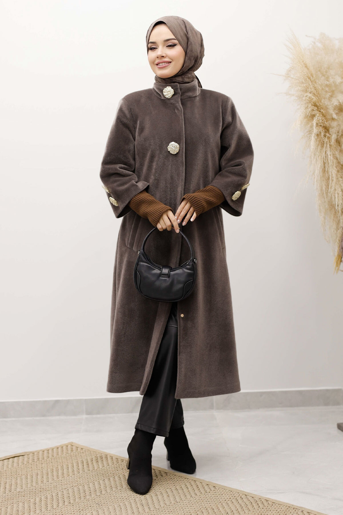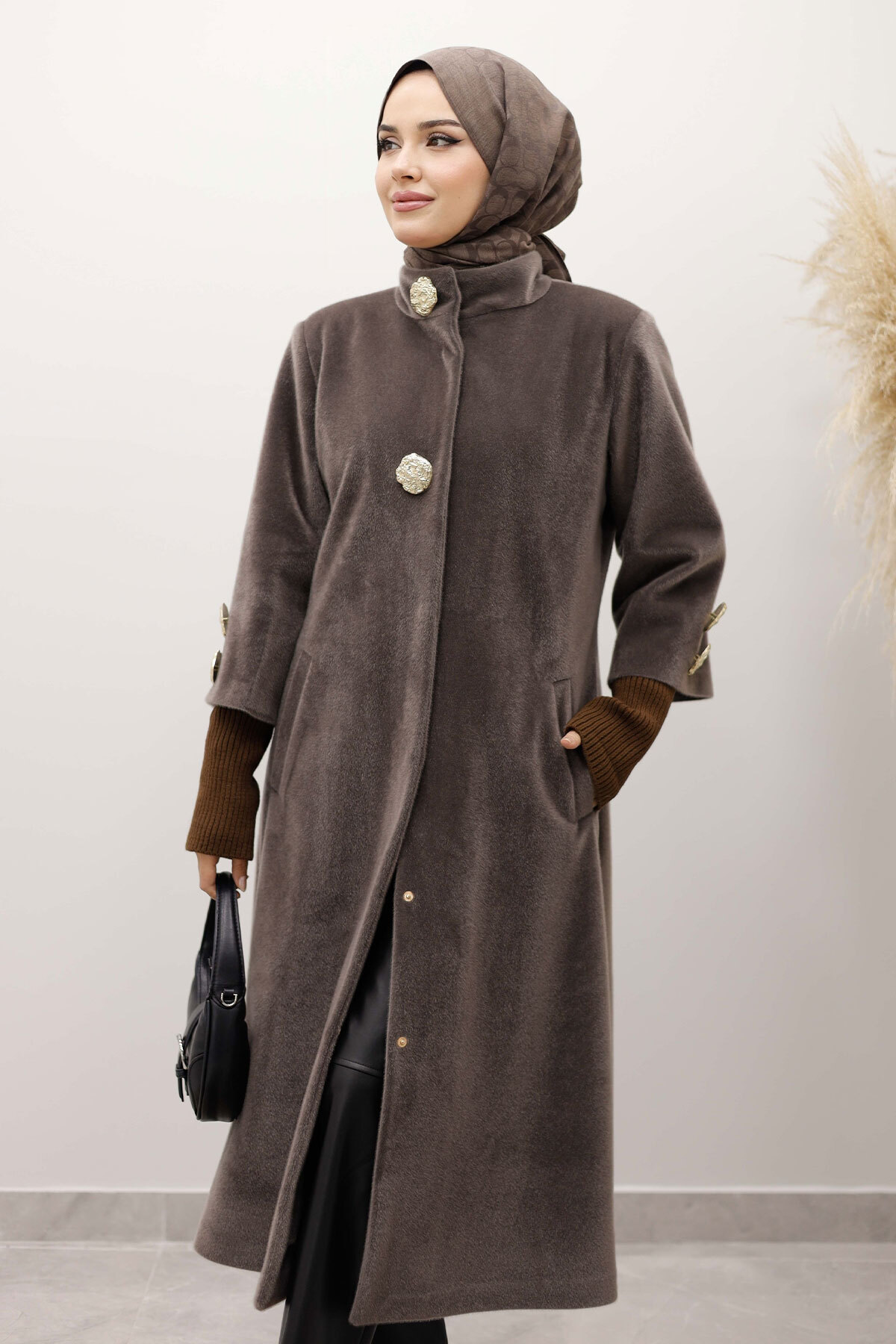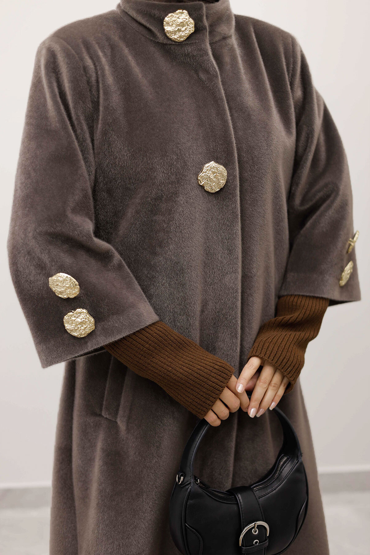 Ürün Özelliği : Yeni sezon Kol Ucu Triko Detaylı Angora Fox Kaban  modelidir.
