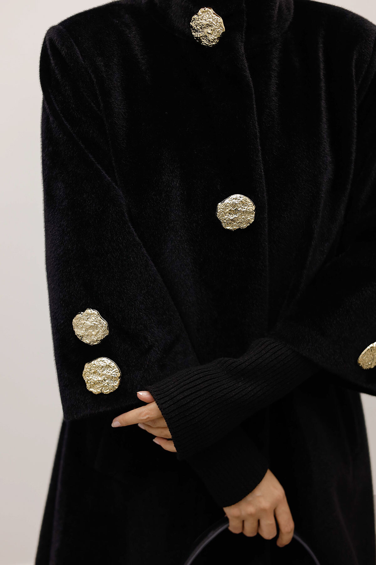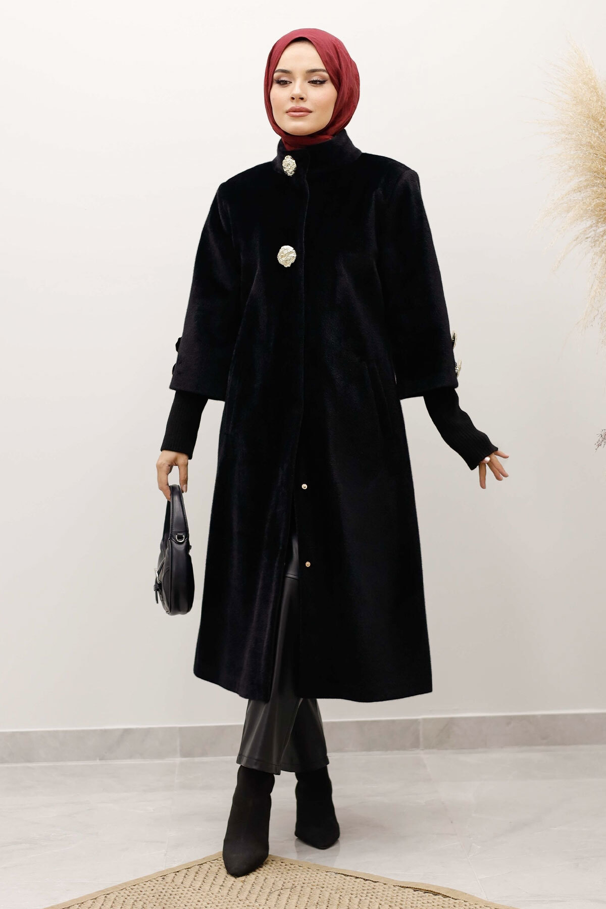 Kol Ucu Triko Detaylı Angora Fox Kaban TSD250246 Siyah Özellikleri