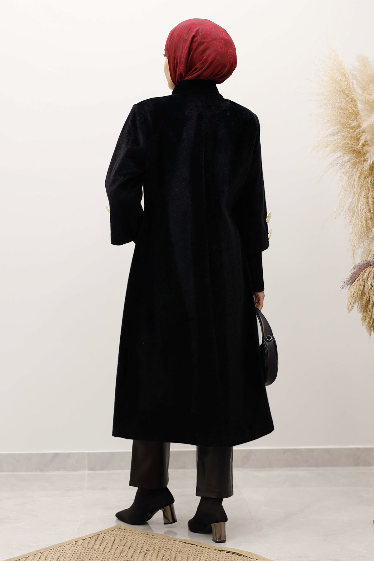Kol Ucu Triko Detaylı Angora Fox Kaban TSD250246 Siyah