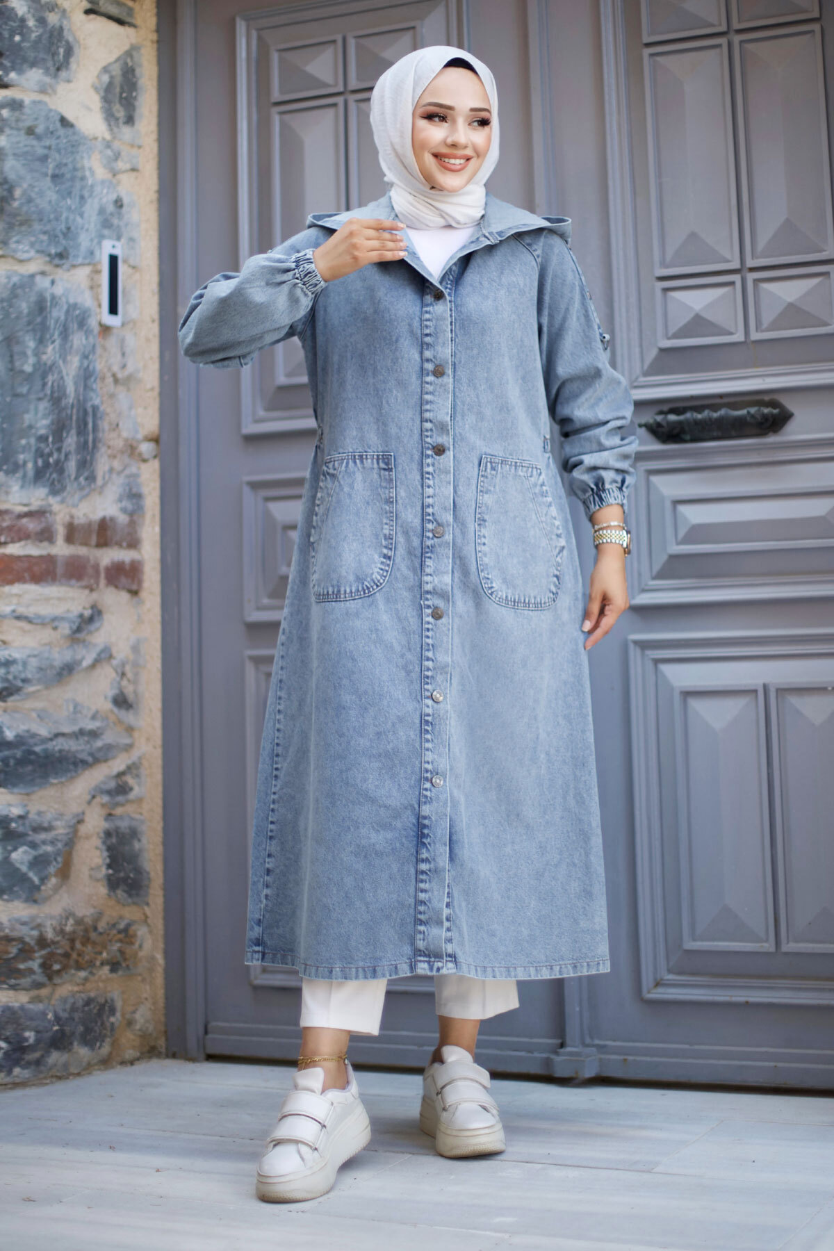 Ürün Özelliği : Yeni sezon Kolları Çakımlı Kot Kap modelidir. Kullanılabilir cepleri bulunmaktadır. Boydan düğmeli olup astarsız ve kapşonlu.Kol ucu lastikli üründür. Ürün renginde konsept çekimlerinden dolayı ton farklılığı olabilir.