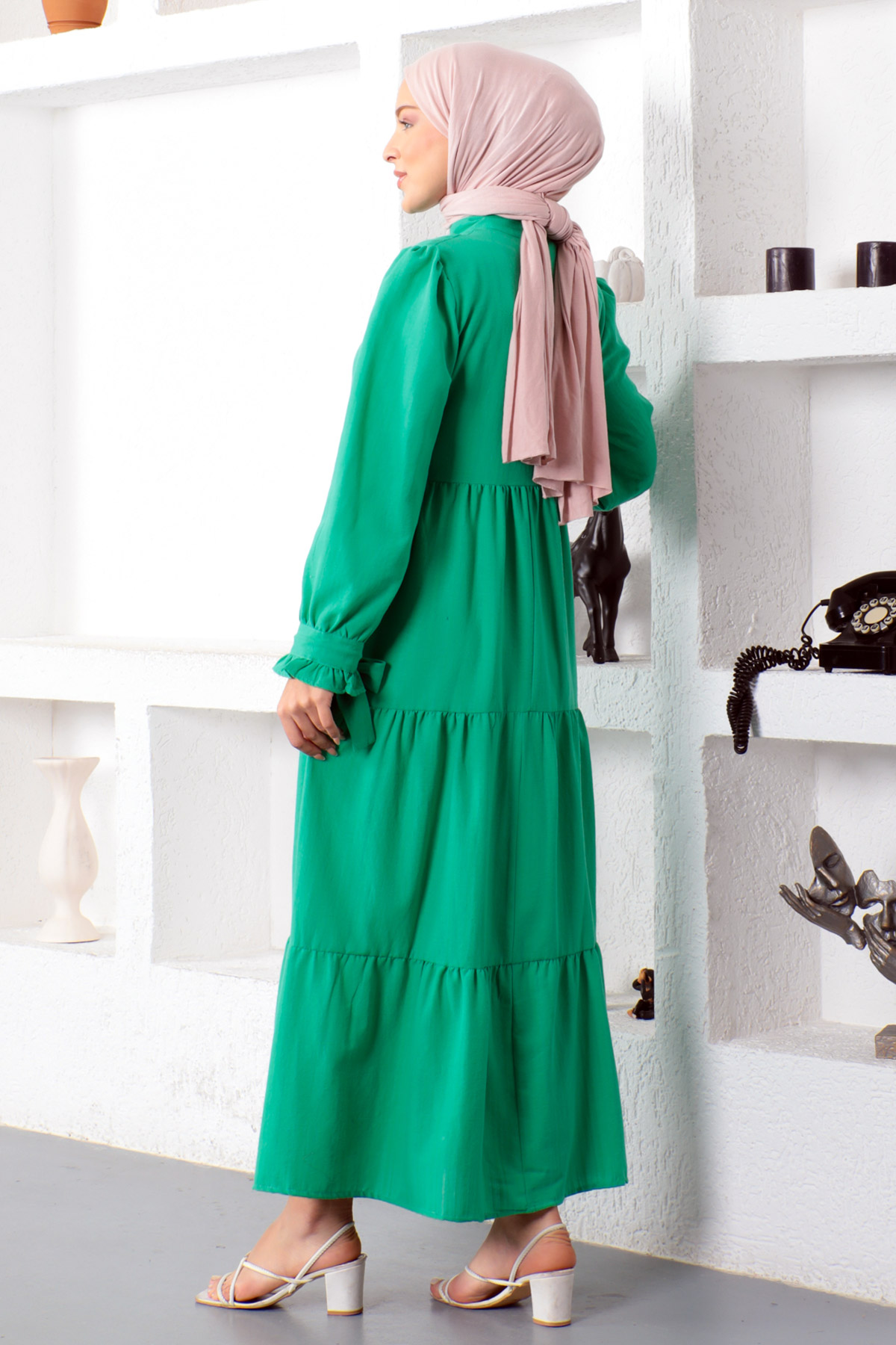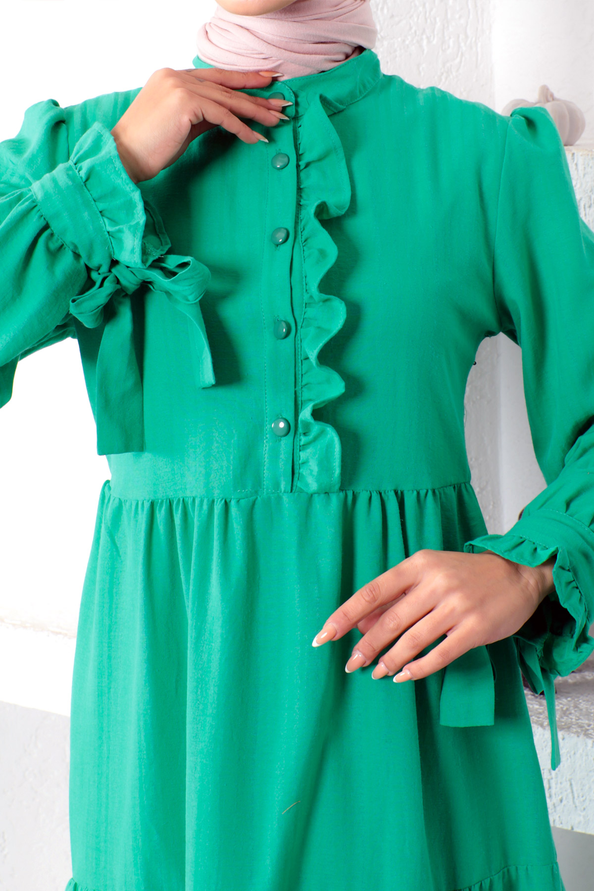 Ürün Özelliği : Yeni sezon Kolu Bağlamalı Tesettür Elbise modelidir. Kol ucu bağlama detaylıdır. Yandan fermuar ile açılmaktadır. Yakası hakim yakadır. Önden fırfır detaylıdır ve düğmeleri açılabilir. Ürün renginde konsept çekimlerinden dolayı ton farklılığı olabilir.