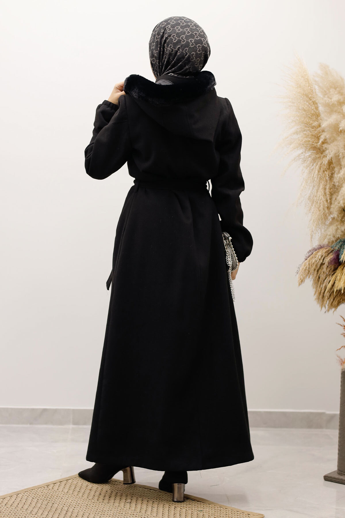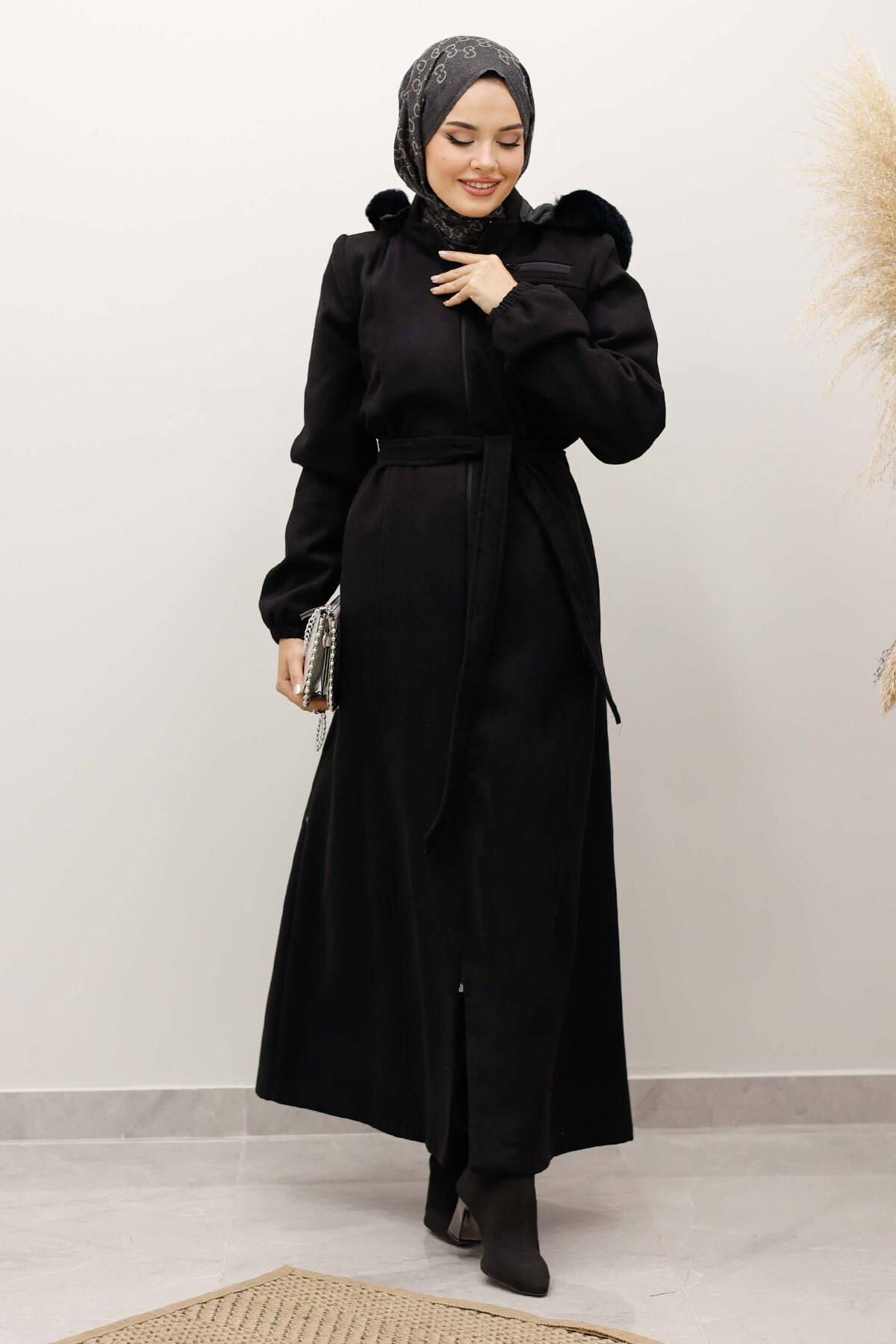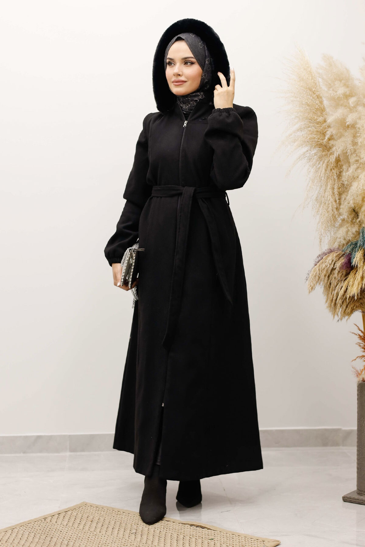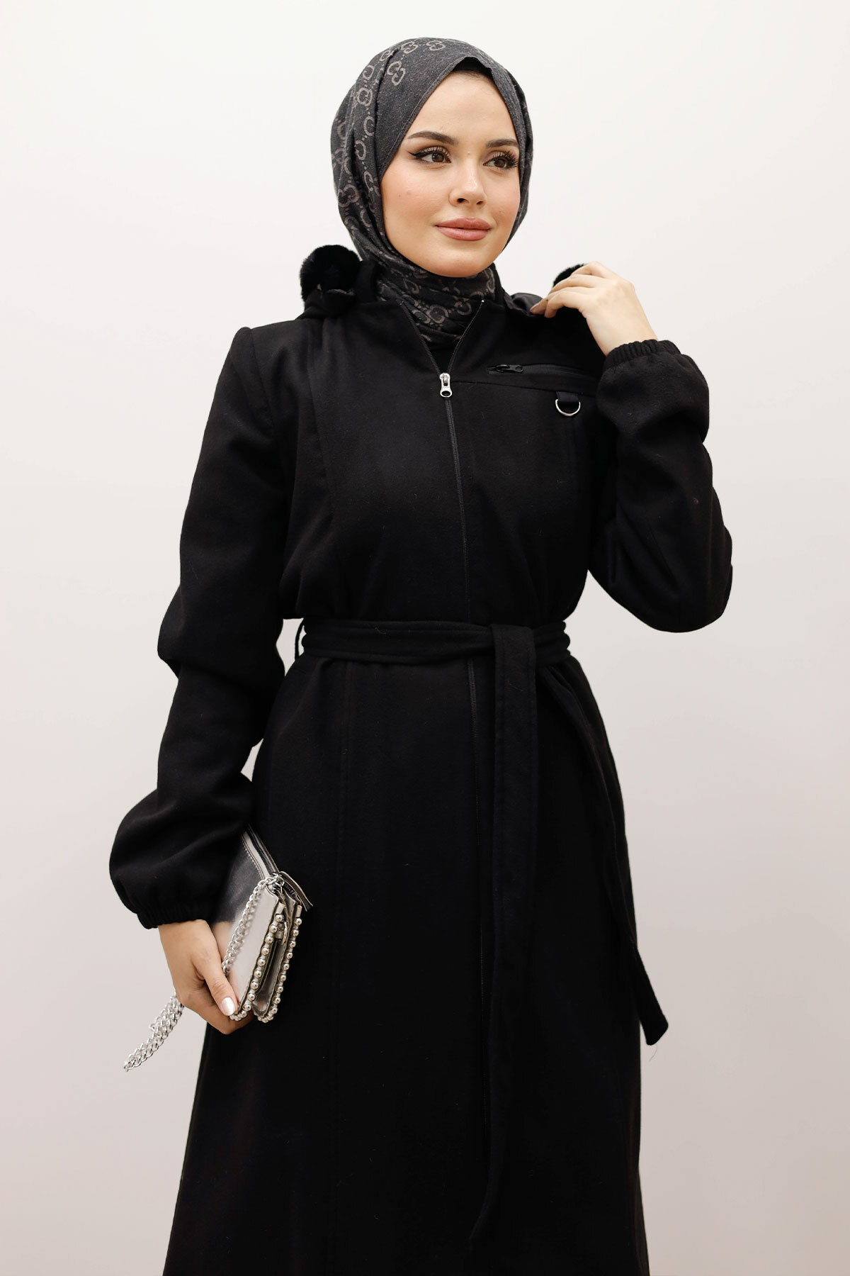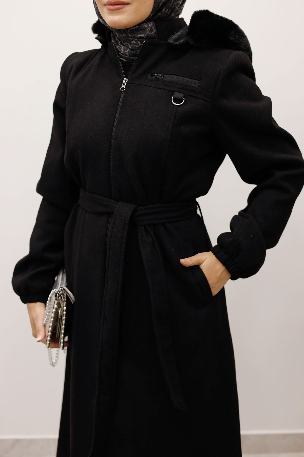 Kolu Lastikli Fermuar Detaylı Kaşe Kaban TSD250248 Siyah Özellikleri