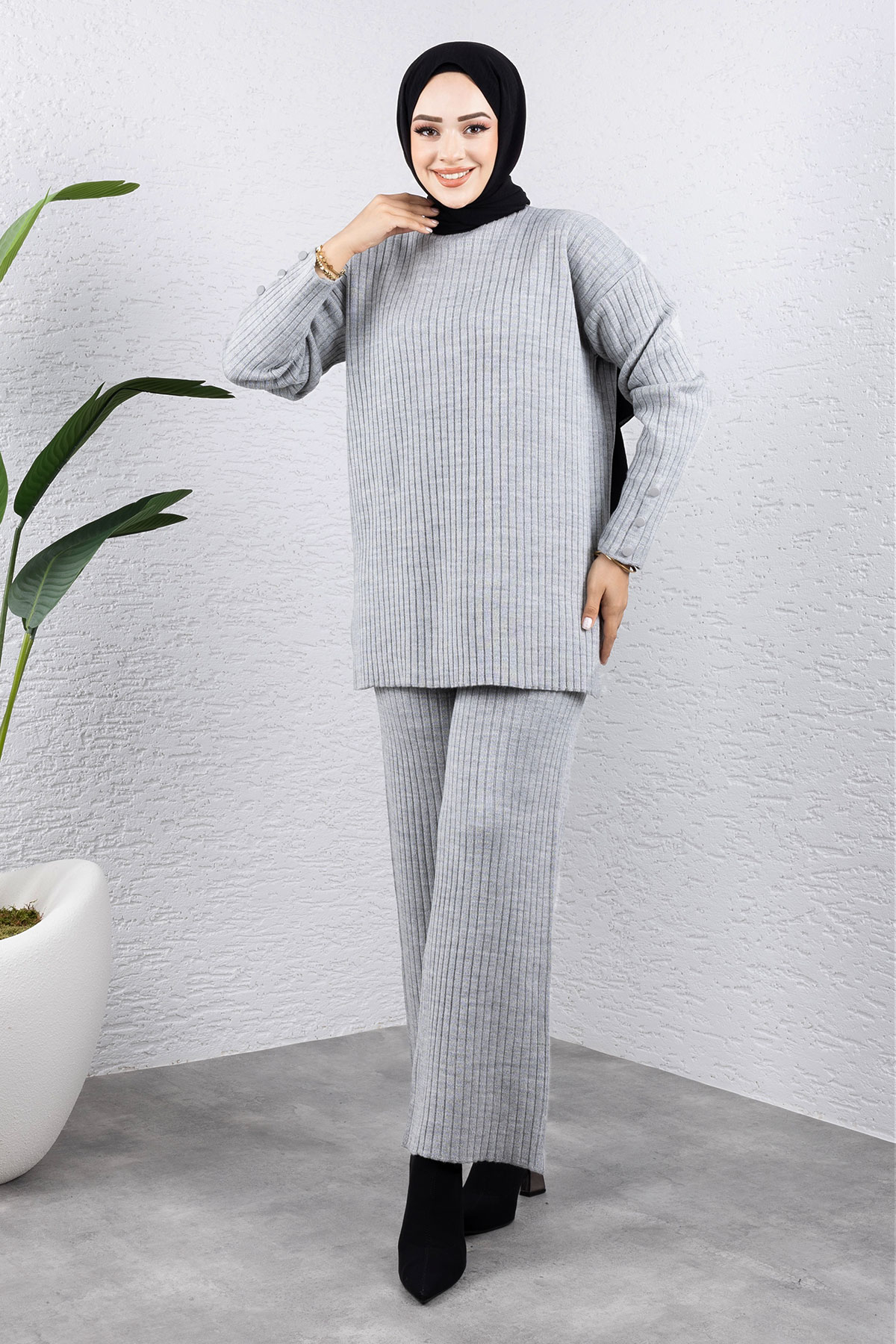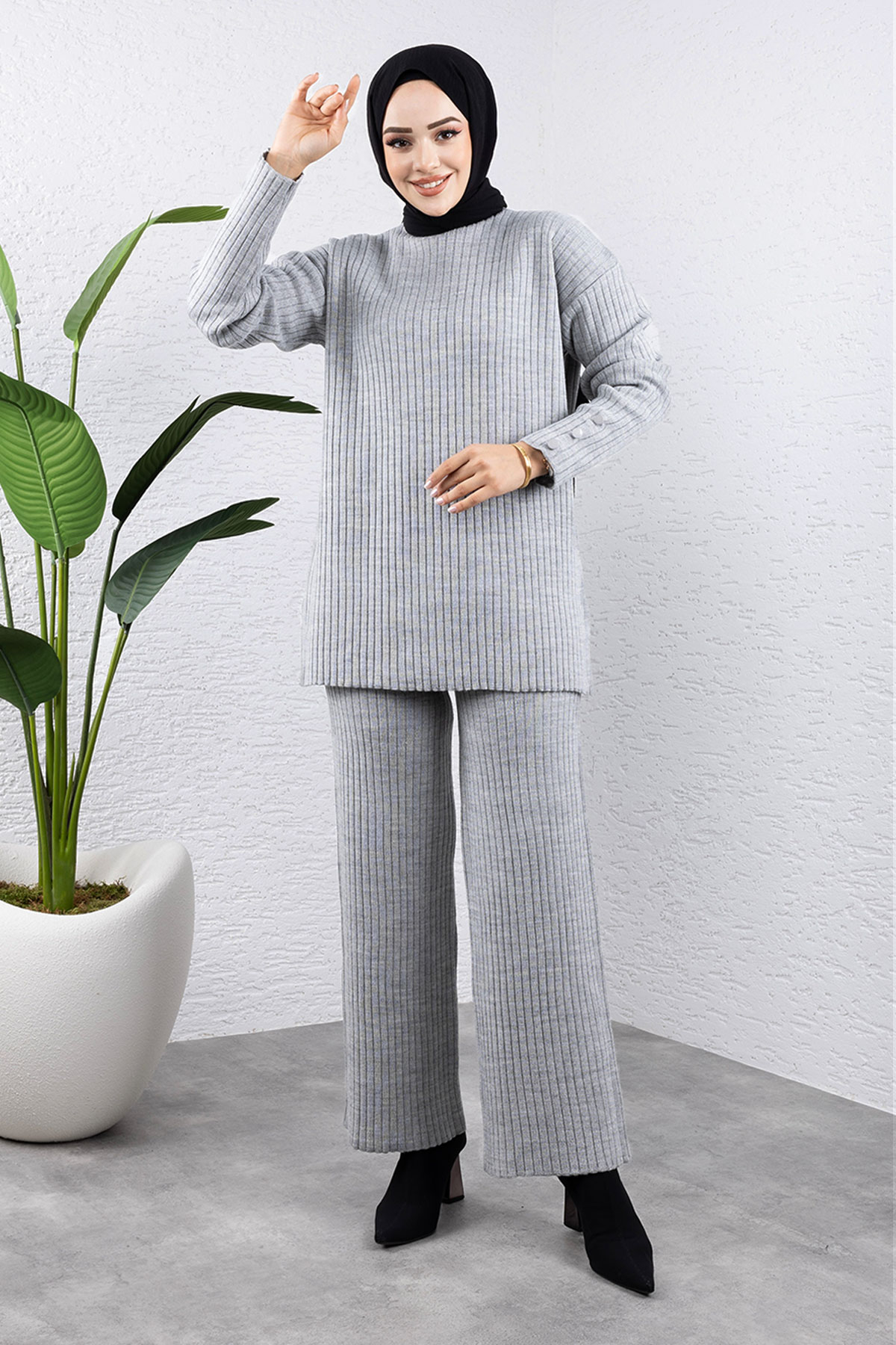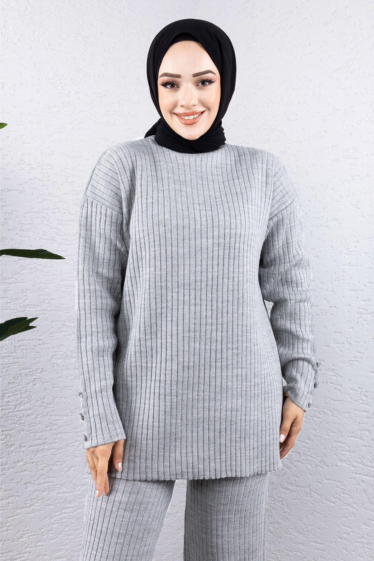 Ürün Özelliği : Yeni sezon Kolu Ucu Düğme Detaylı Triko Takım modelidir. Esnektir. Ürün düşük kol modellidir. Kazak balıkçı yakadır. Pantolon beli lastiklidir. Ürün renginde konsept çekimlerinden dolayı ton farklılığı olabilmektedir.