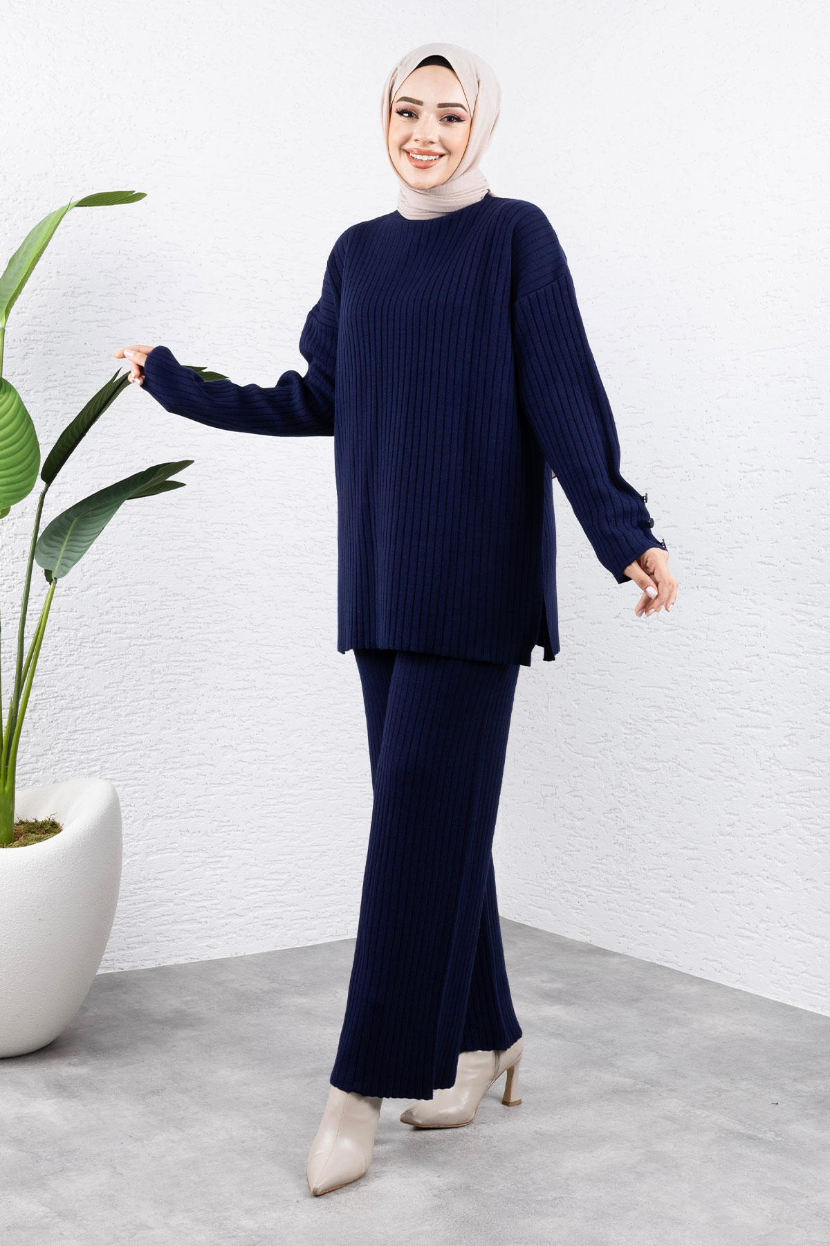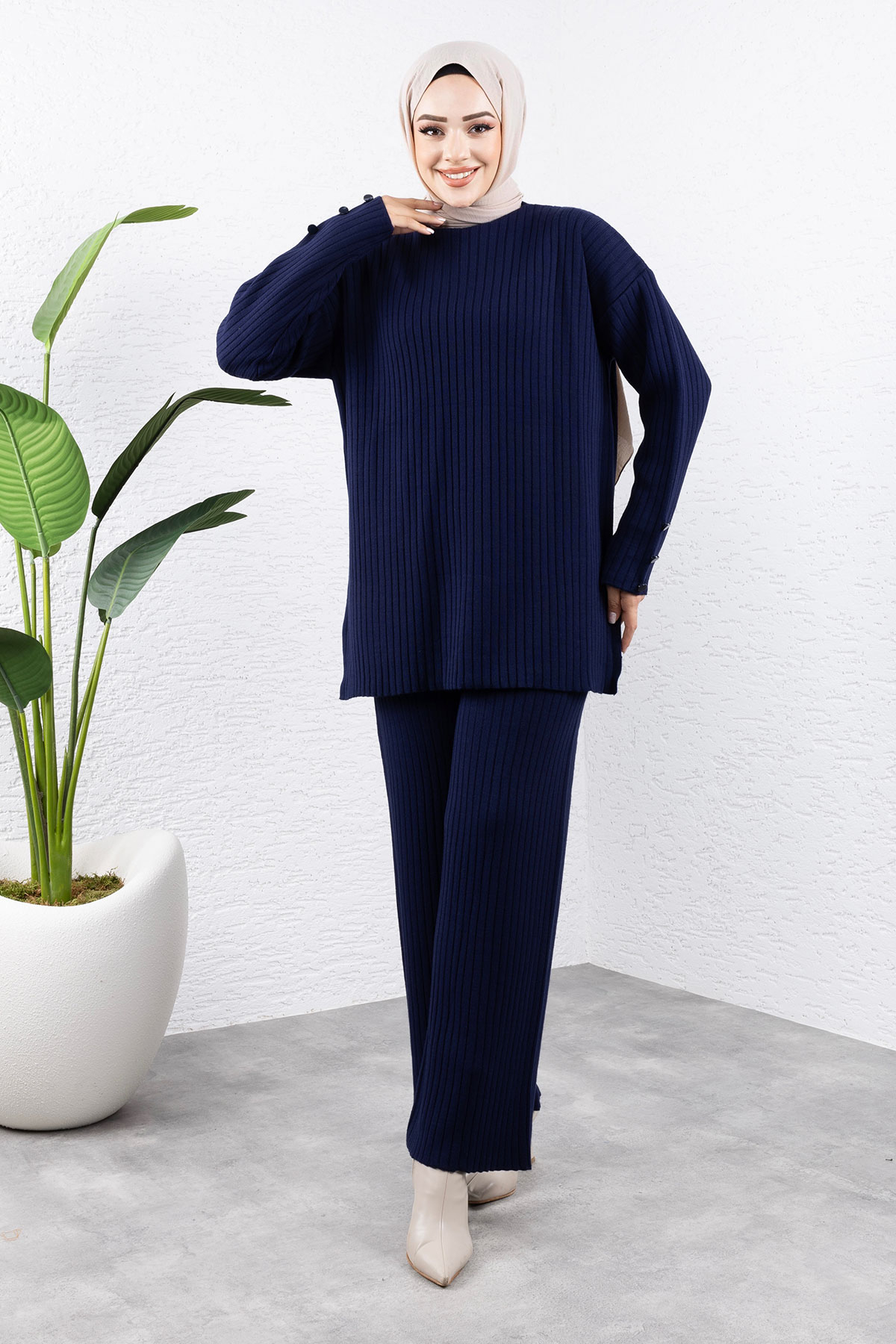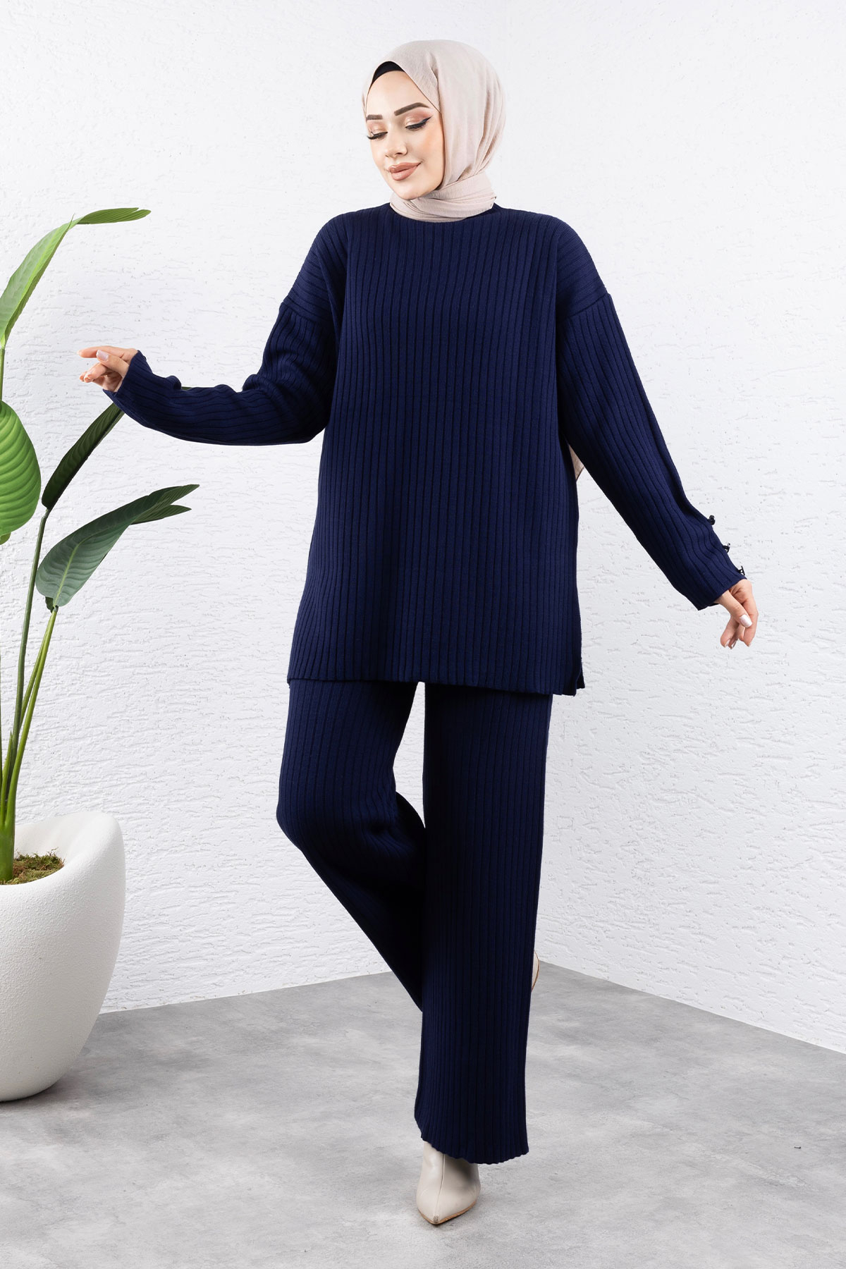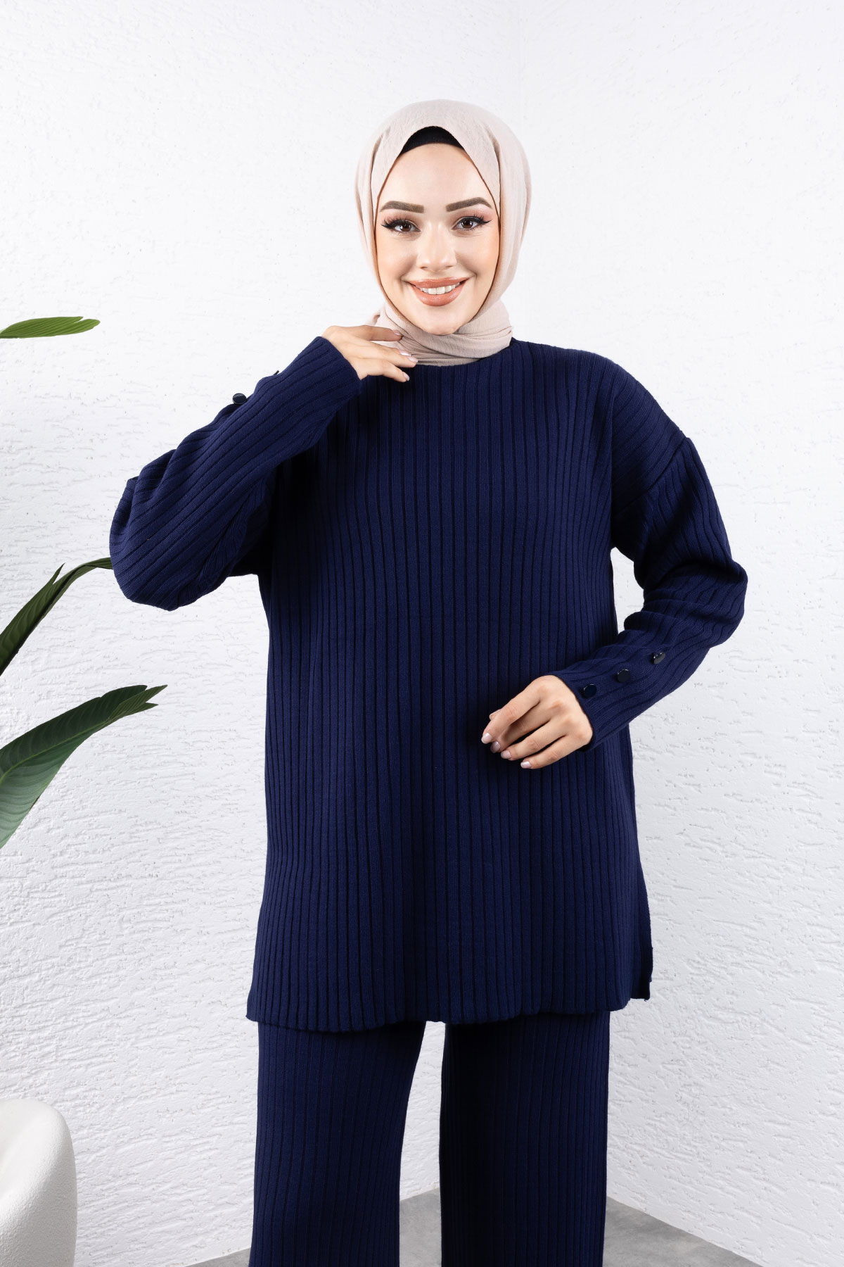 Ürün Özelliği : Yeni sezon Kolu Ucu Düğme Detaylı Triko Takım modelidir. Esnektir. Ürün düşük kol modellidir. Kazak balıkçı yakadır. Pantolon beli lastiklidir. Ürün renginde konsept çekimlerinden dolayı ton farklılığı olabilmektedir.