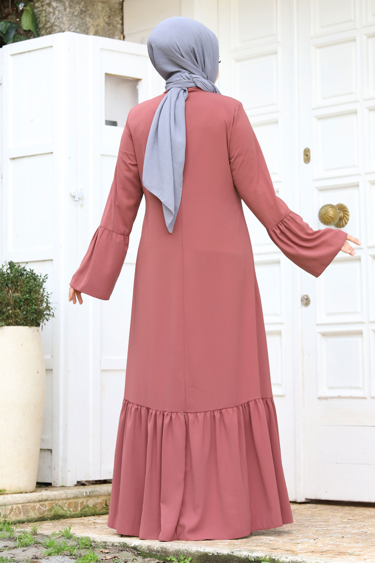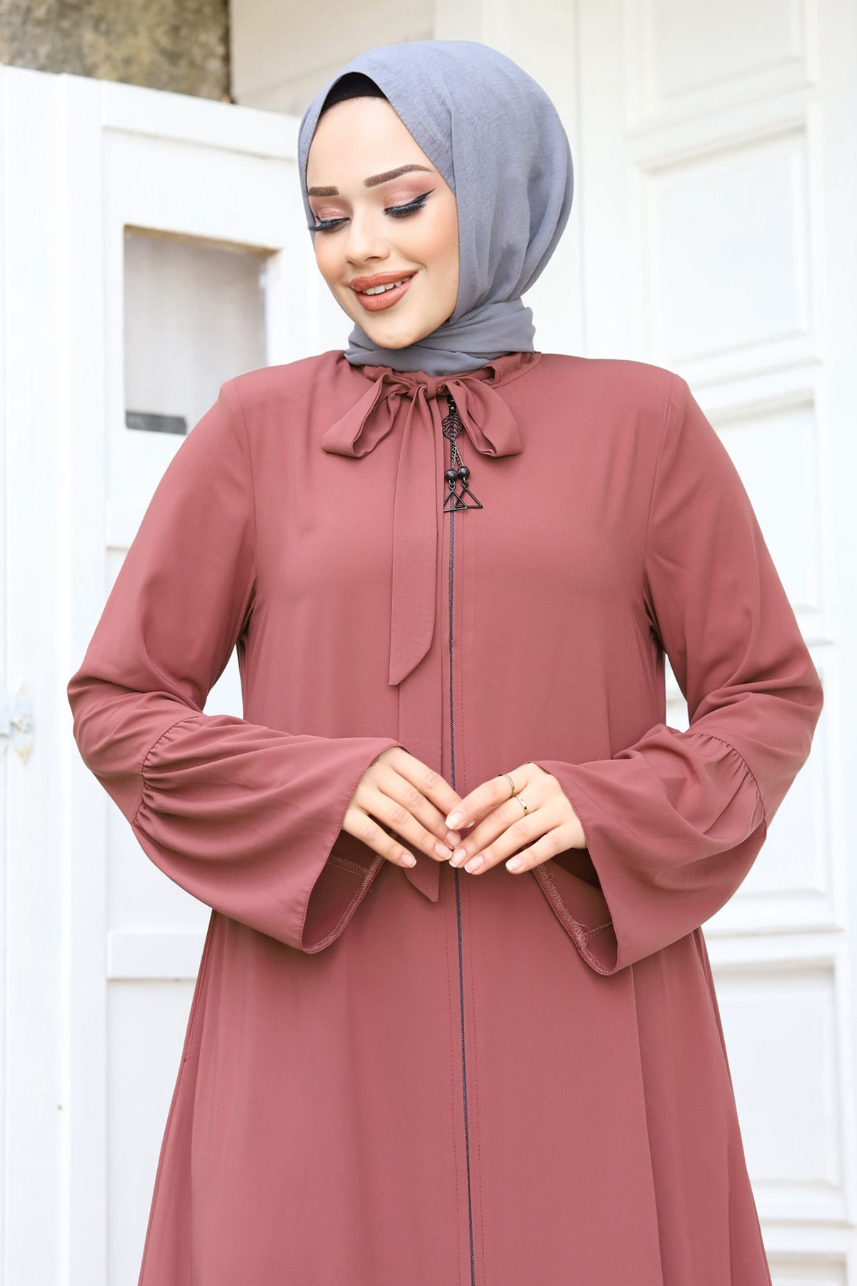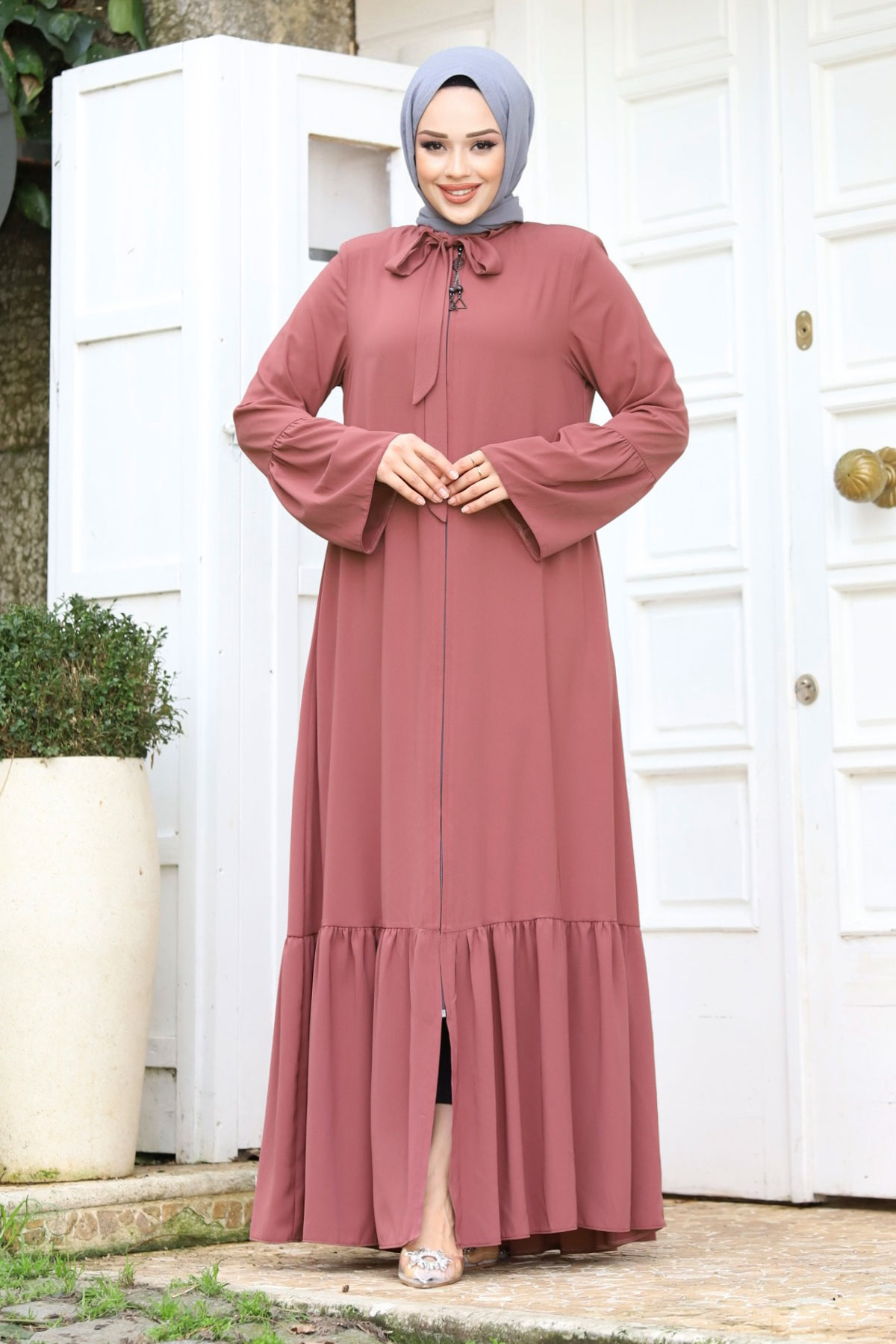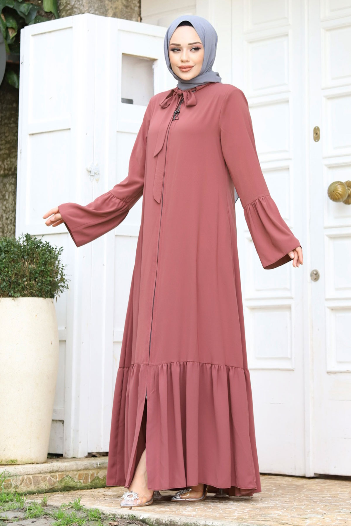 Ürün Özelliği : Yeni sezon Kolu Volanlı Yakası Bağlama Detaylı Tesettür Ferace modelidir. Boydan fermuar ile açılmaktadır. Kolunda ve eteğinde volan detayı mevcuttur. Yakası bağlamalıdır. Yanlarında iki adet cebi mevcuttur. Astarsızdır. Ürün renginde konsept çekimlerinden dolayı ton farklılığı olabilir.