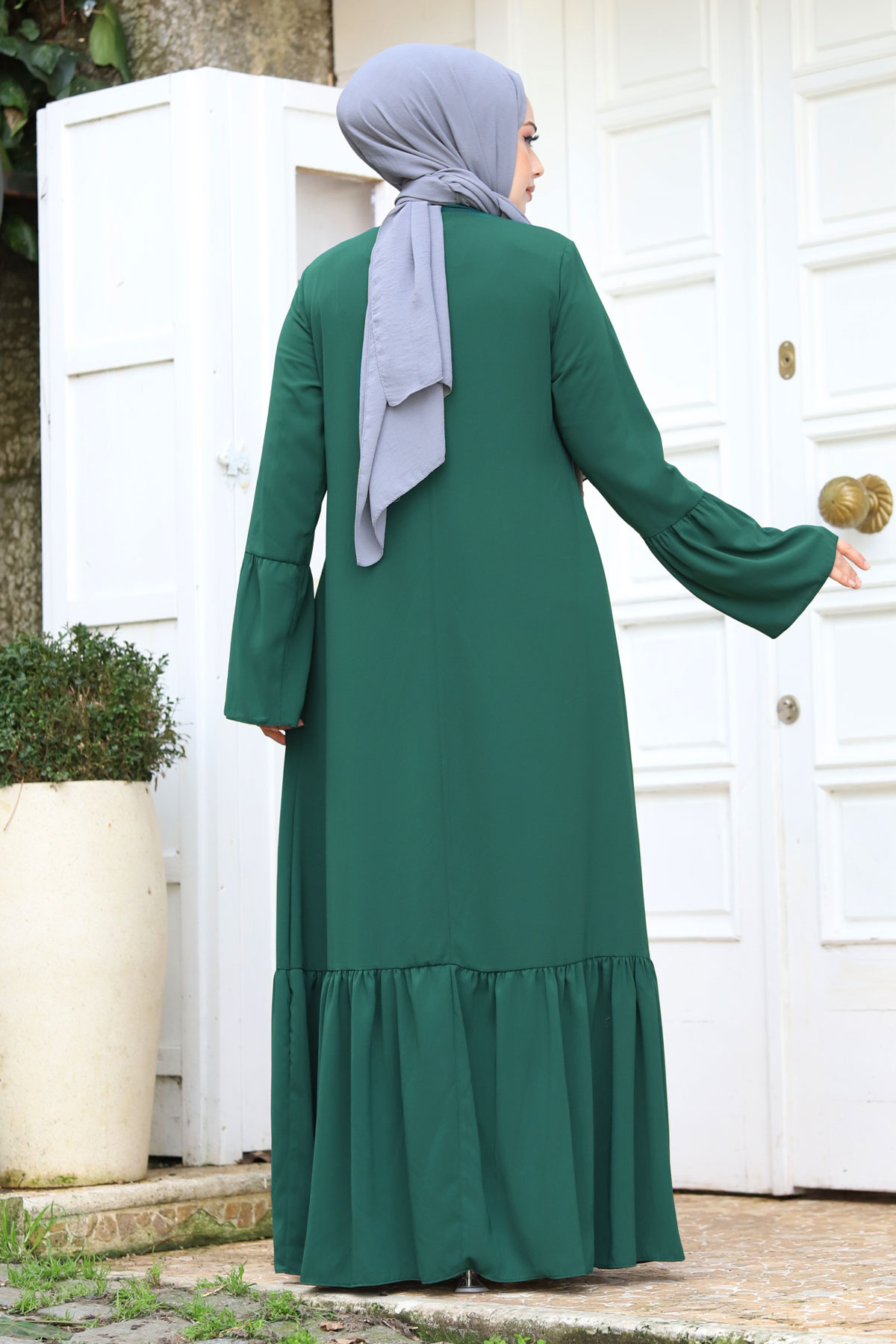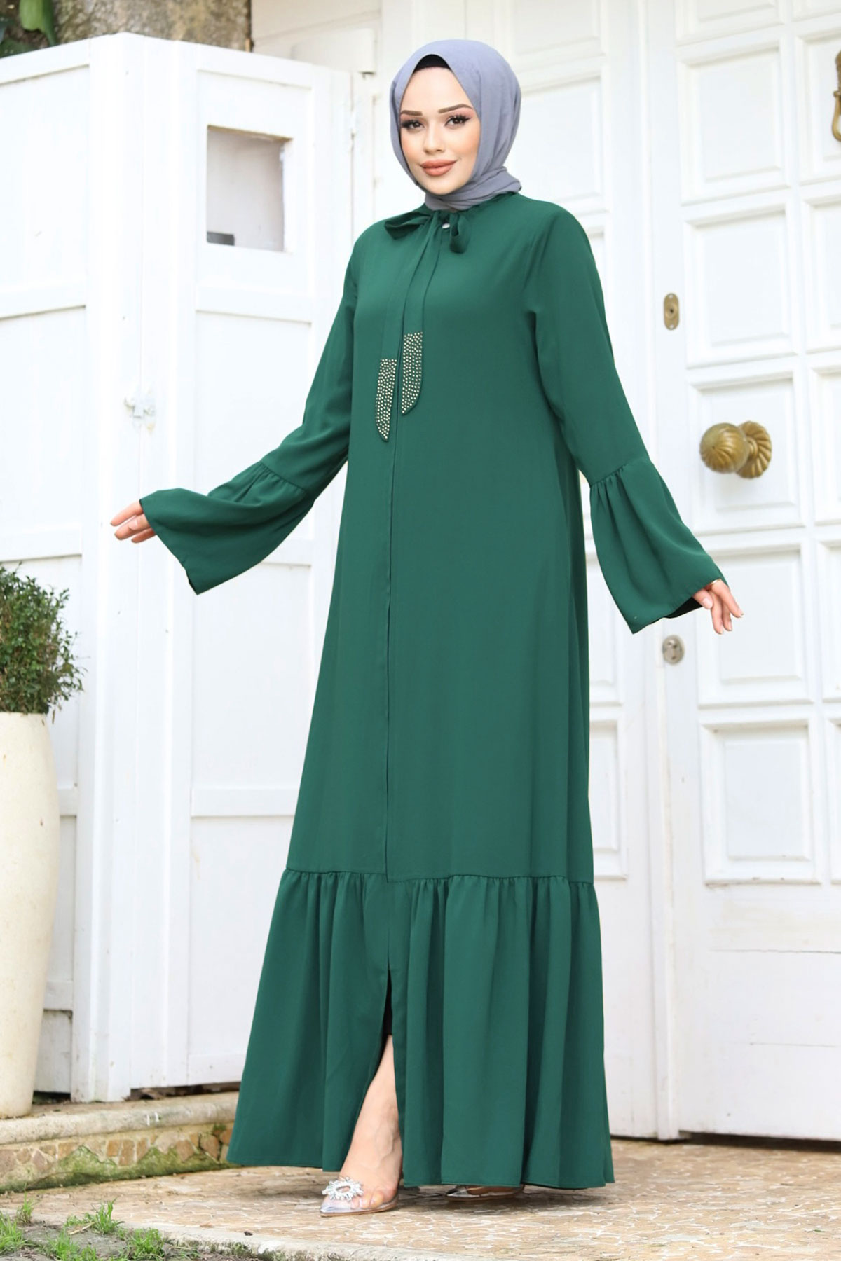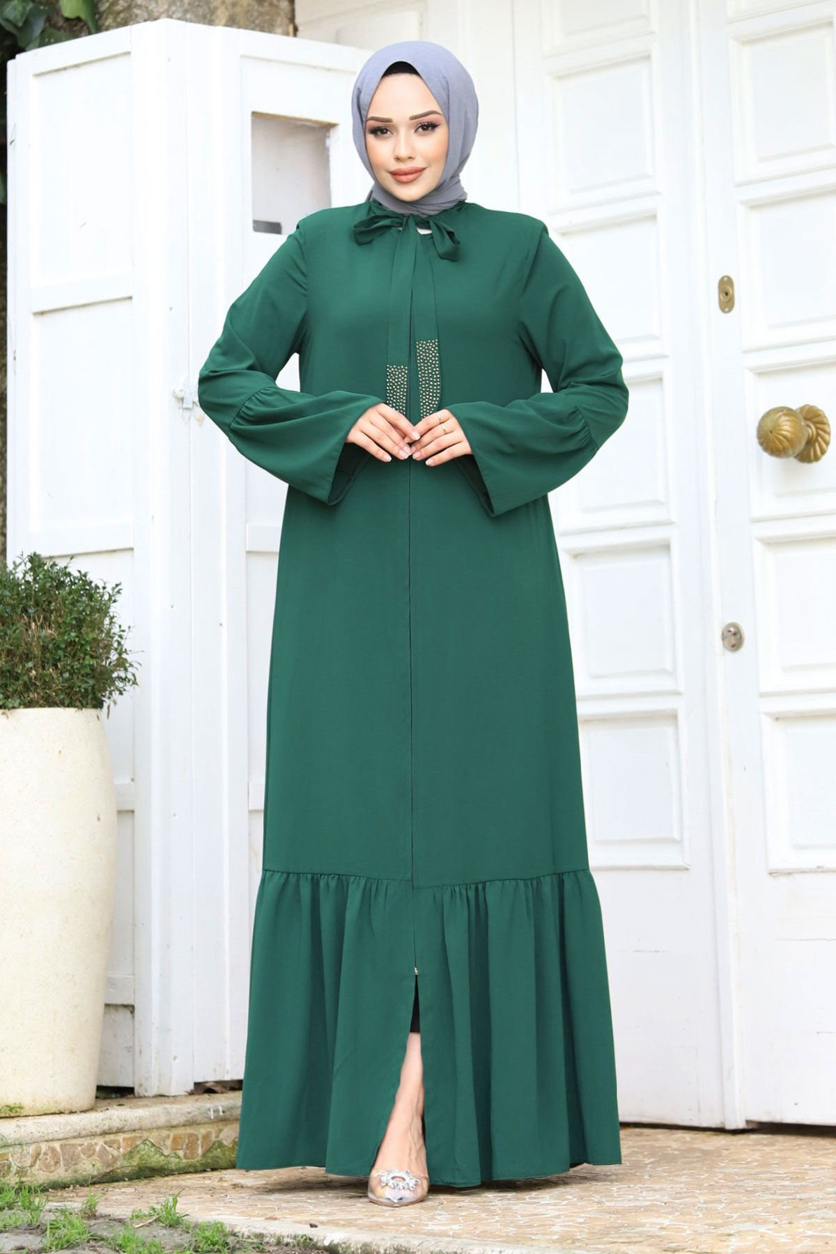 Ürün Özelliği : Yeni sezon Kolu Volanlı Yakası Bağlama Detaylı Tesettür Ferace modelidir. Boydan fermuar ile açılmaktadır. Kolunda ve eteğinde volan detayı mevcuttur. Yakası bağlamalıdır. Yanlarında iki adet cebi mevcuttur. Astarsızdır. Ürün renginde konsept çekimlerinden dolayı ton farklılığı olabilir.