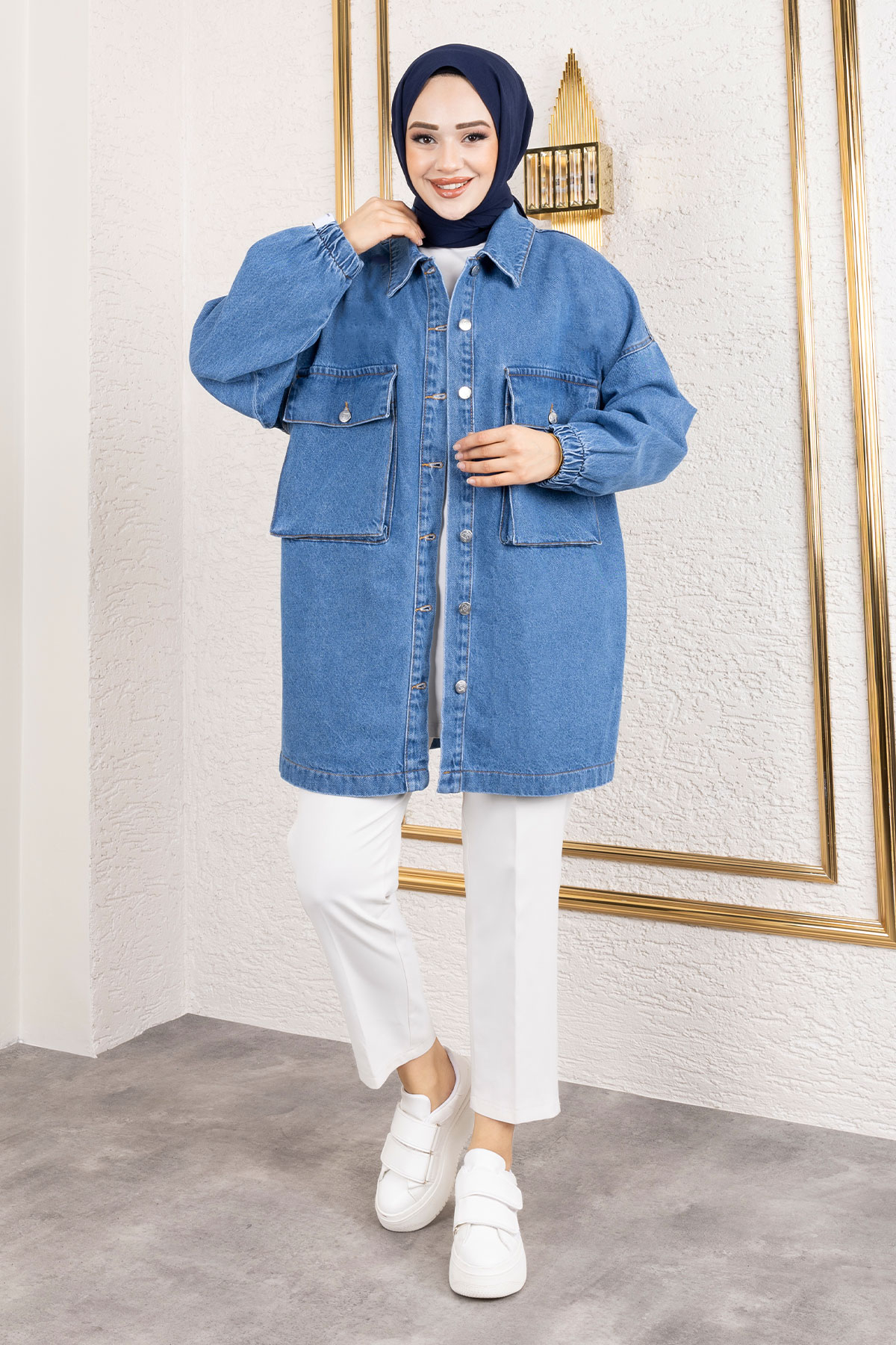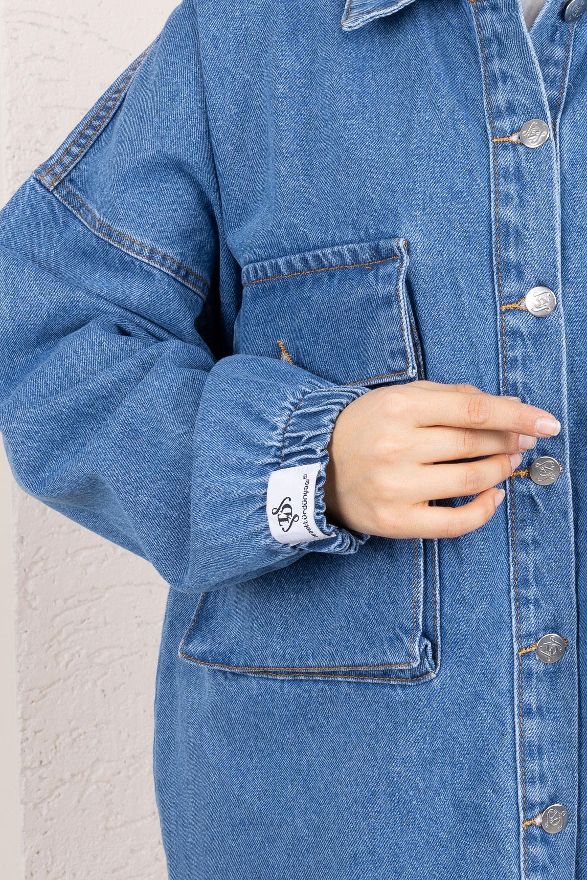 Ürün Özelliği : Yeni sezon Körüklü Cepli Oversize Kot Ceket modelidir. Göğüs kısmında iki adet kullanılabilir cep bulunmaktadır. Boydan düğmeli olup astarsız üründür. Ürün renginde konsept çekimlerinden dolayı ton farklılığı olabilir.