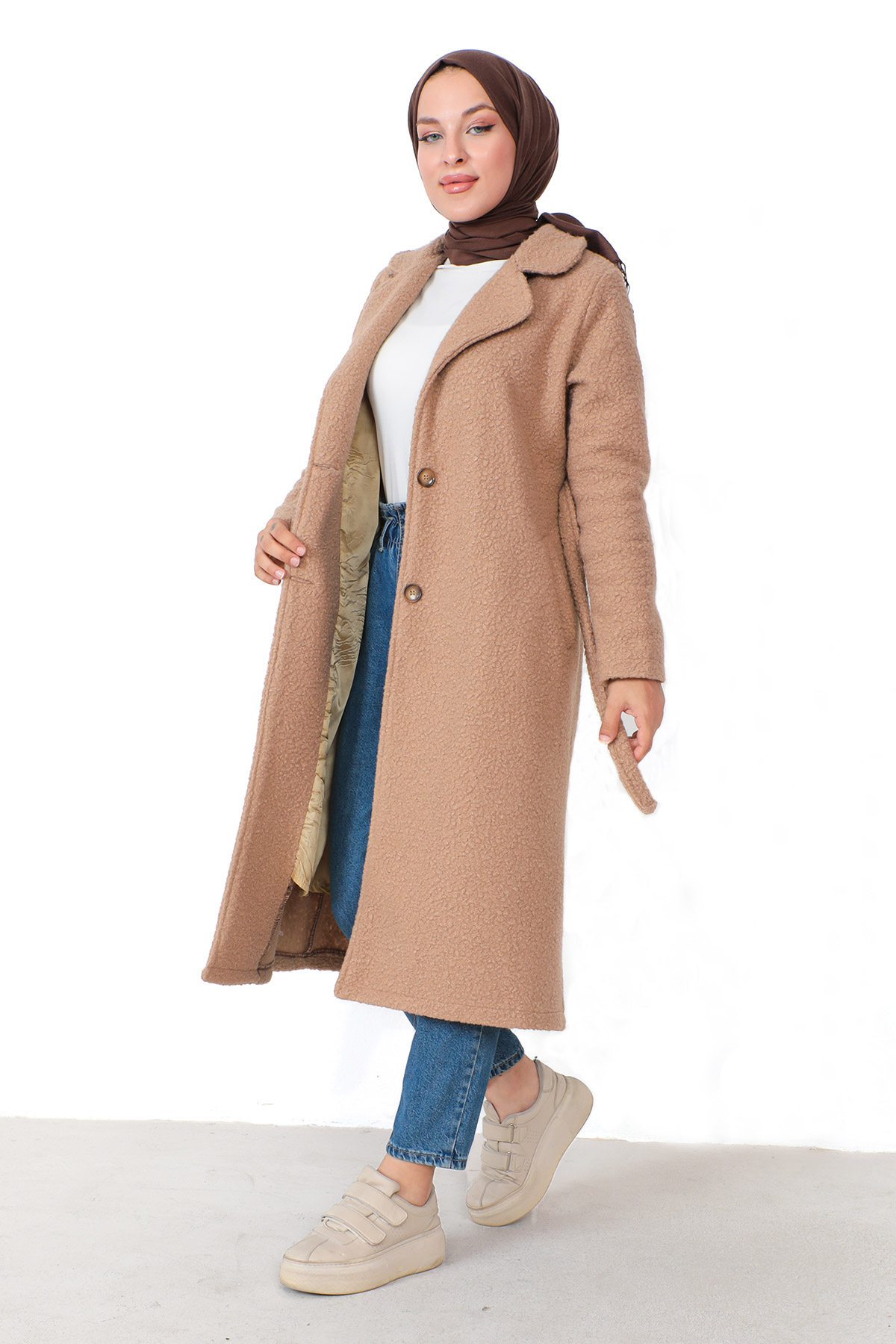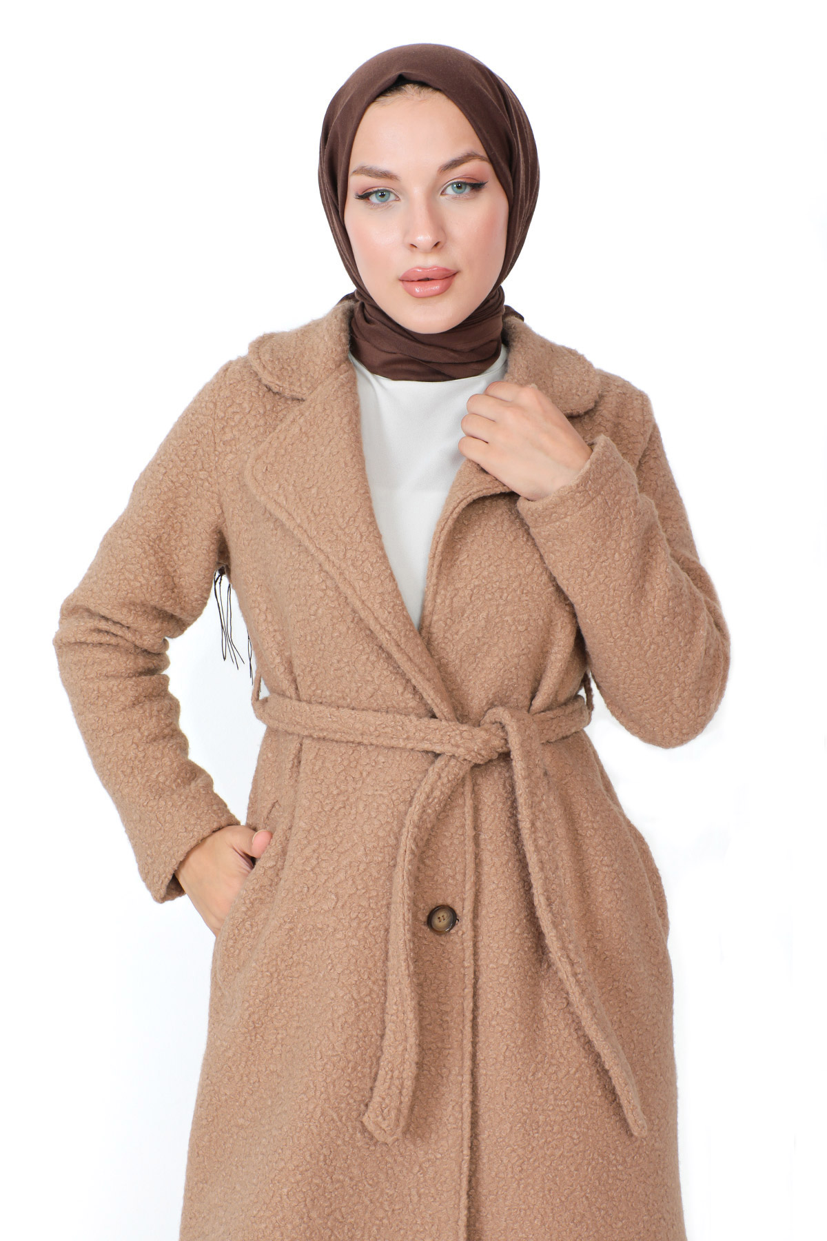Ürün Özelliği : Yeni sezon Kruvaze Yaka Buklet Kaban modelidir. Kullanılabilir iki adet cebi bulunmaktadır. Astarlıdır, düğme ile kapanmaktadır. Beli kuşaklıdır. Ürün renginde çekimlerden dolayı ton farklılığı olabilir.