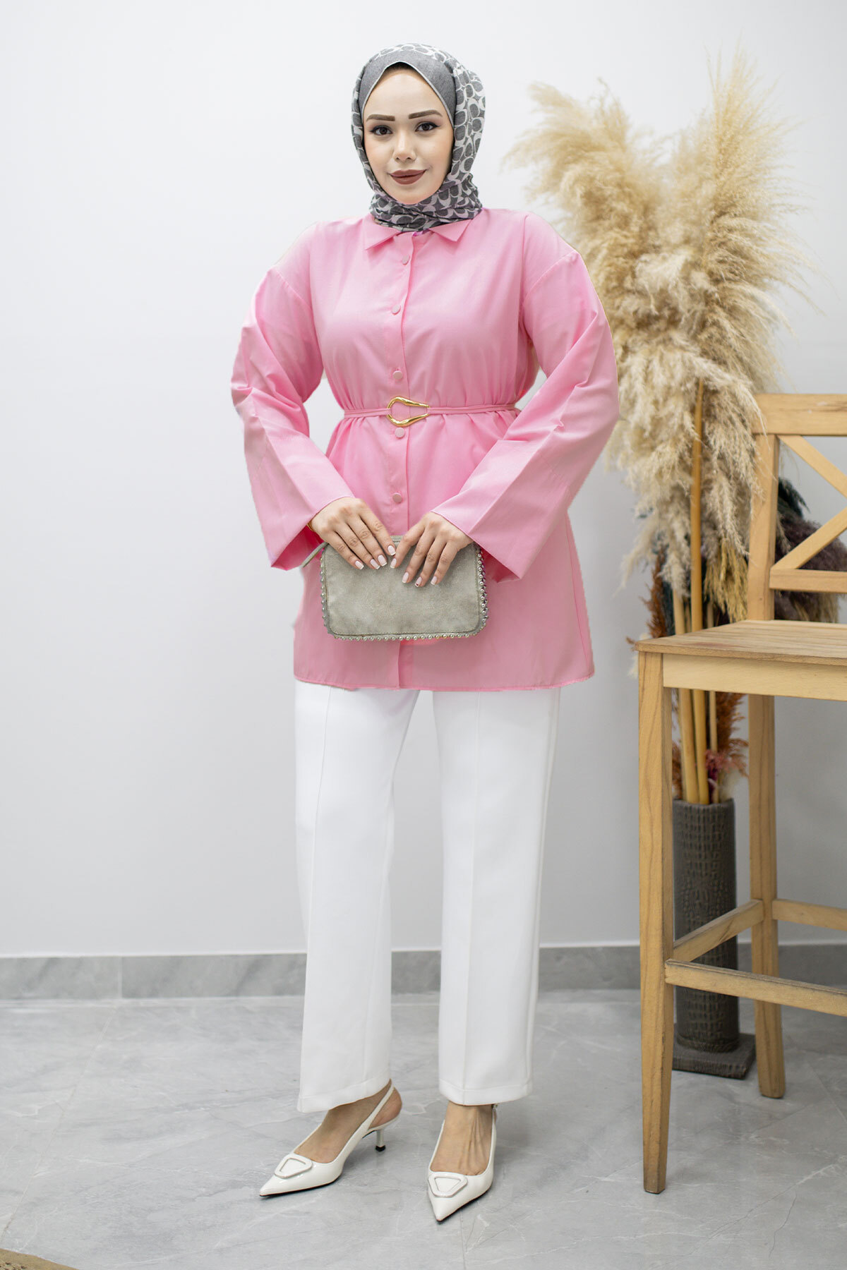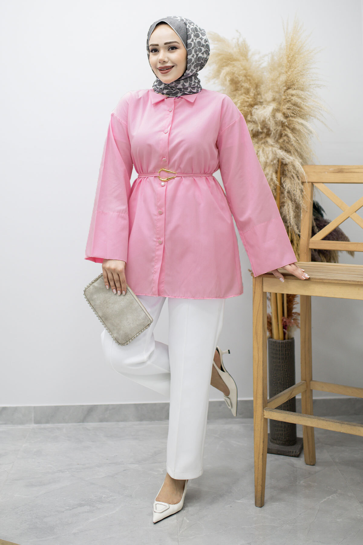 Kuşağı Gold Detaylı Gömlek TSD260162 Pembe Özellikleri