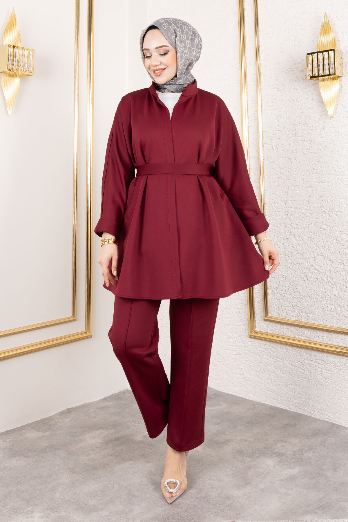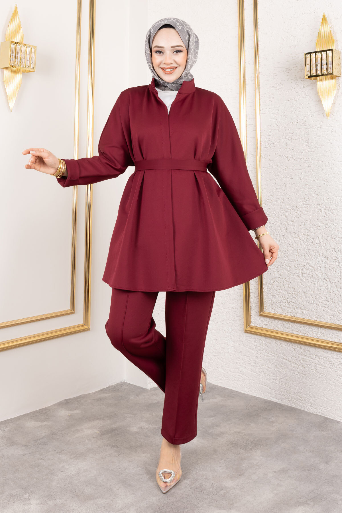 Ürün Özelliği : Yeni sezon Lara Scuba Takım modelidir. Ceketin beli kuşaklıdır. Düğmesiz ve cepsizdir. Pantalonun beli lastikli olmak ile birlikte cepsizdir. pantalon havuç kesimdir. Kuşağı isteğe bağlı çıkarılabilmektedir. Ürün renginde konsept çekimlerinden dolayı ton farklılığı olabilir.