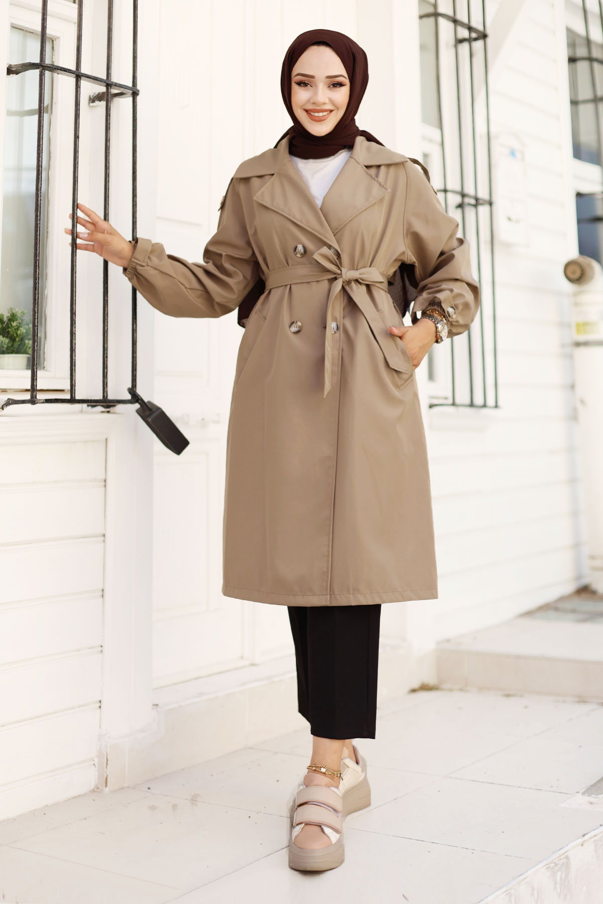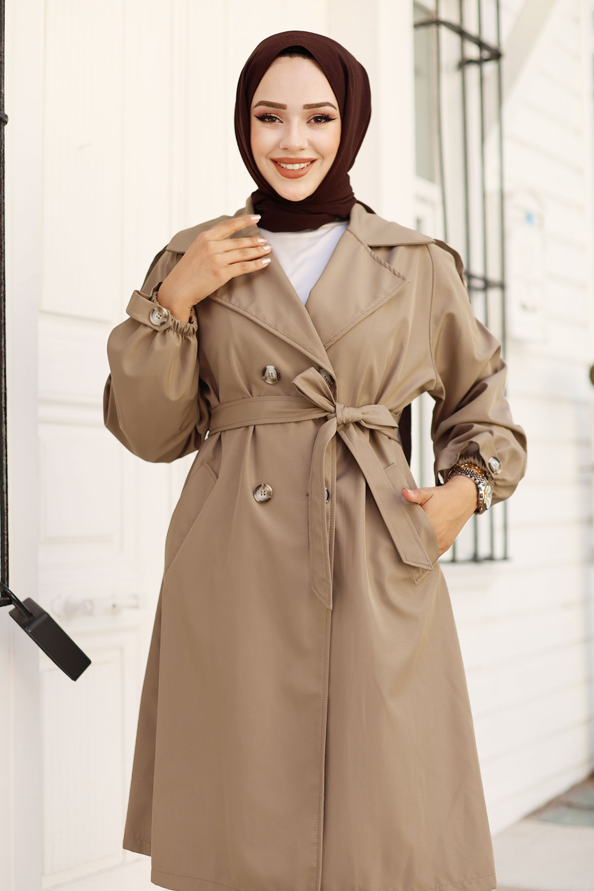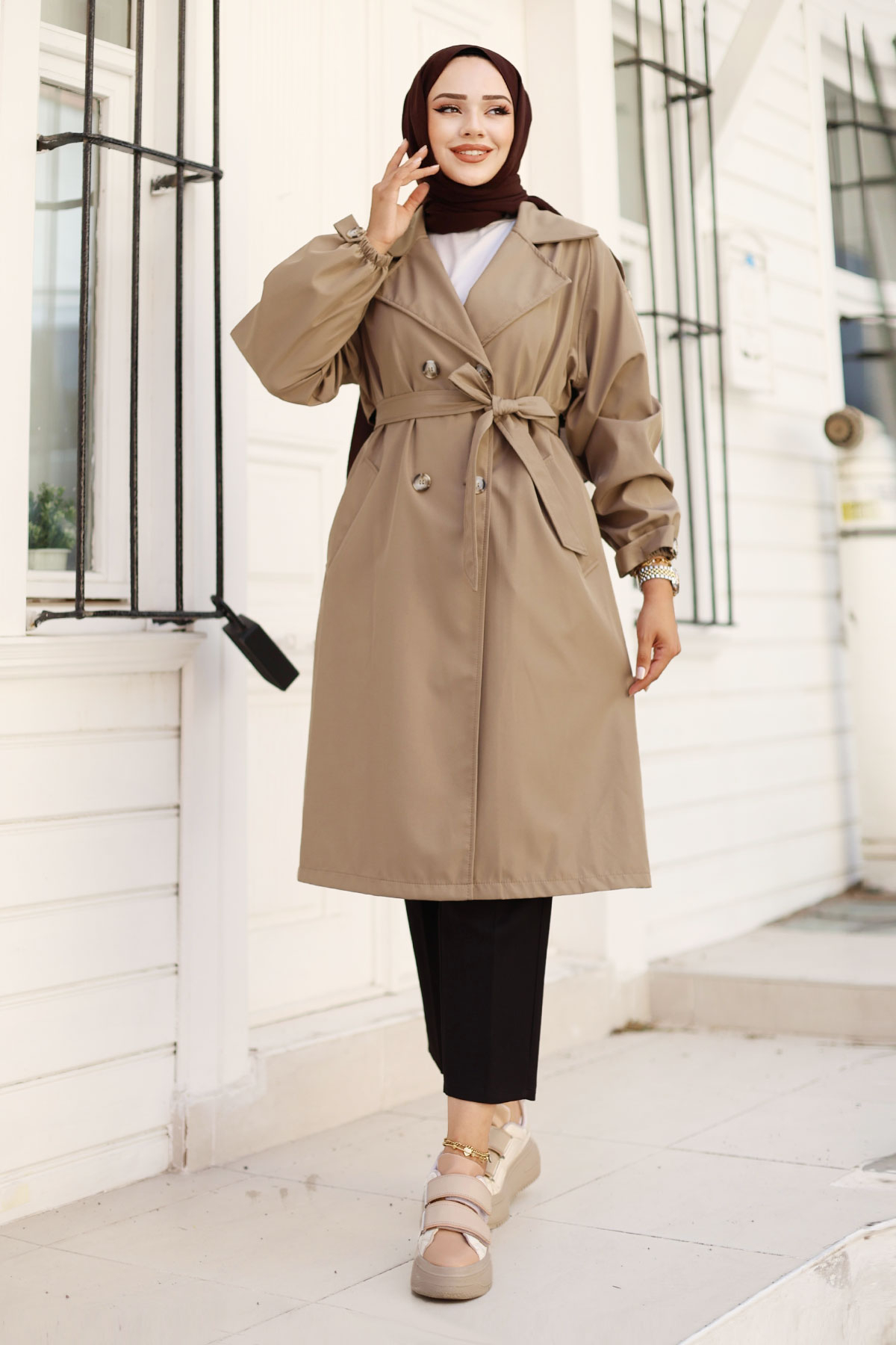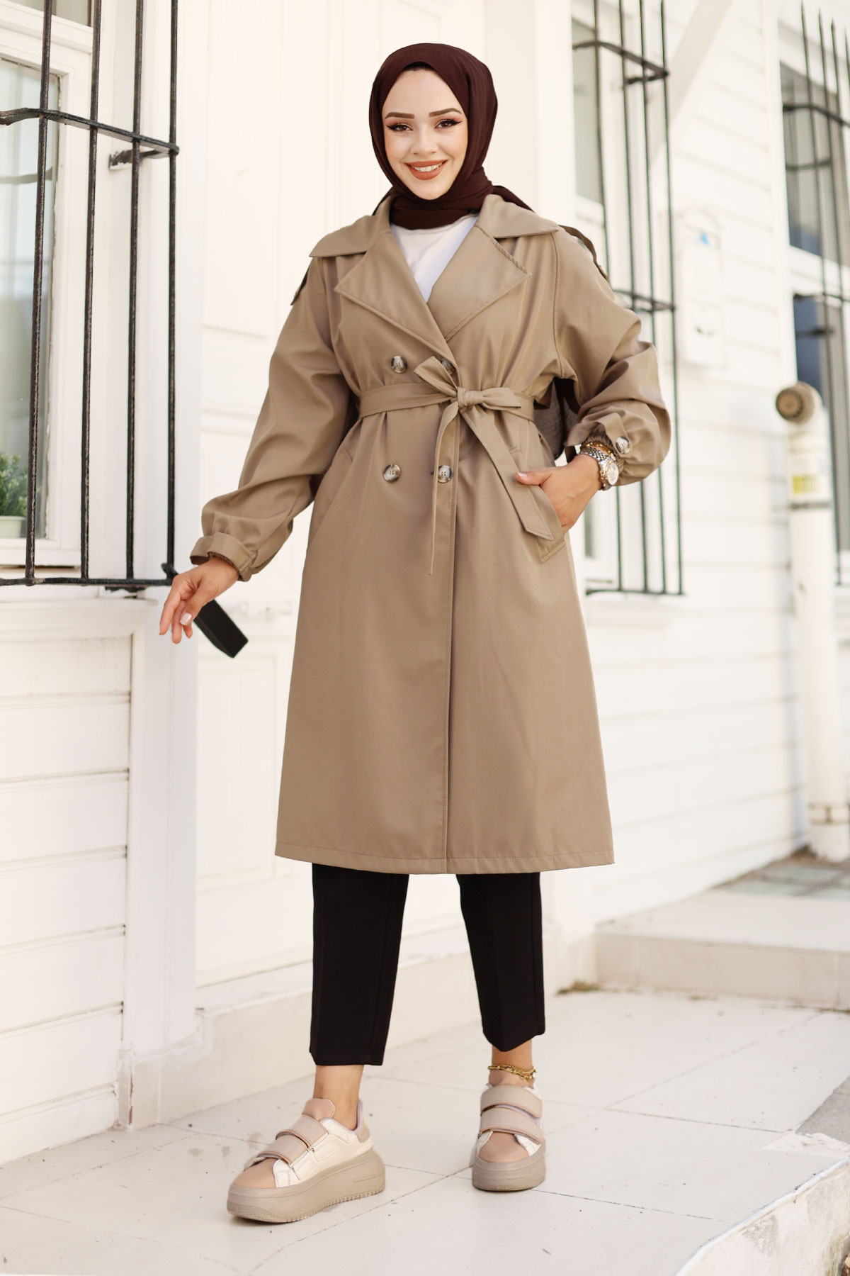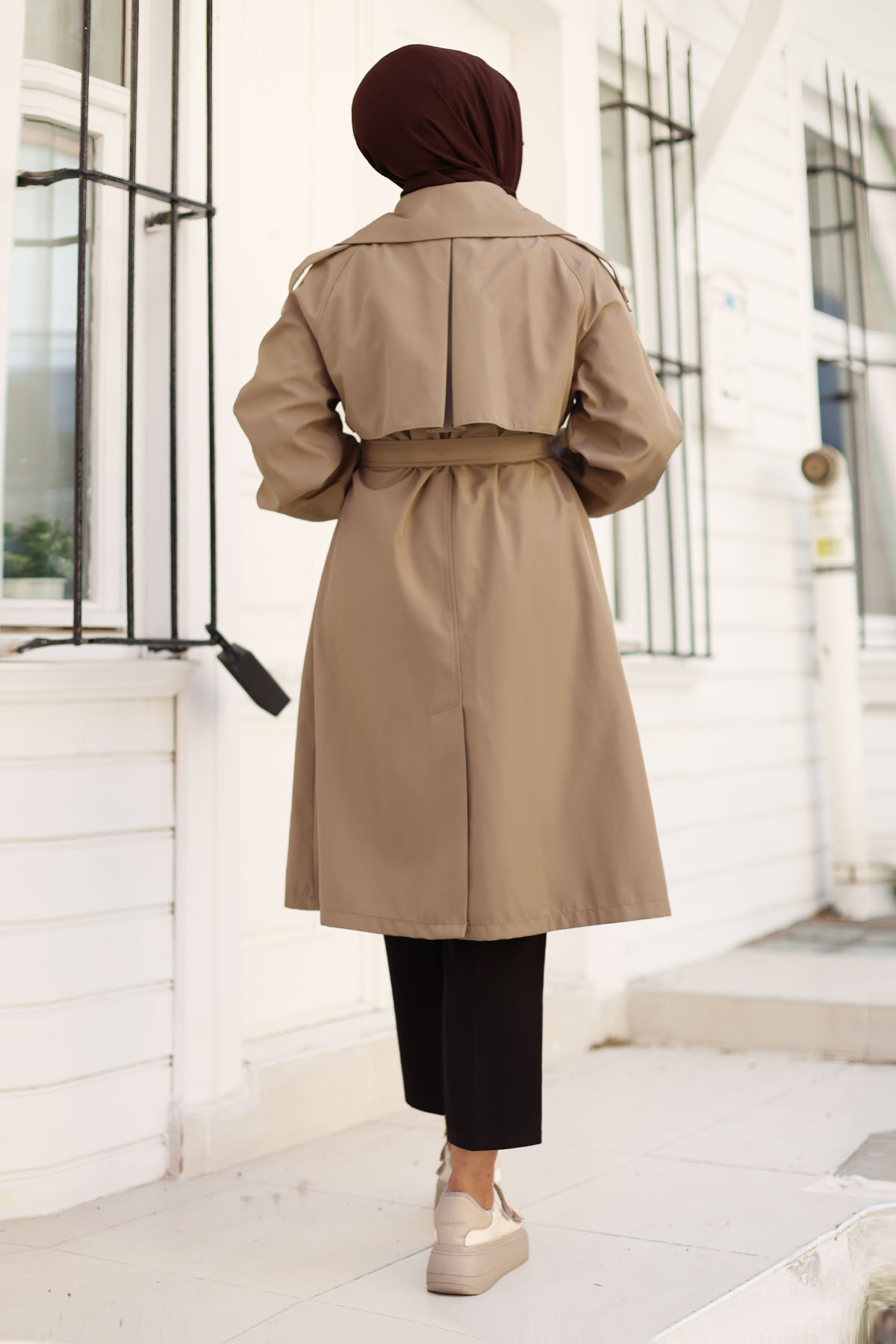 Omuzu Apolet Detaylı Beli Kuşaklı Trençkot TSD240810 Vizon