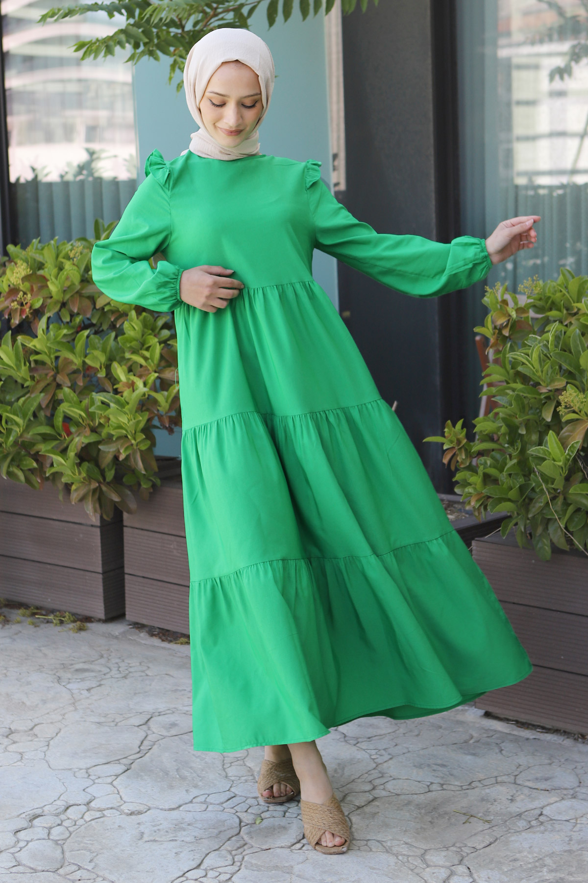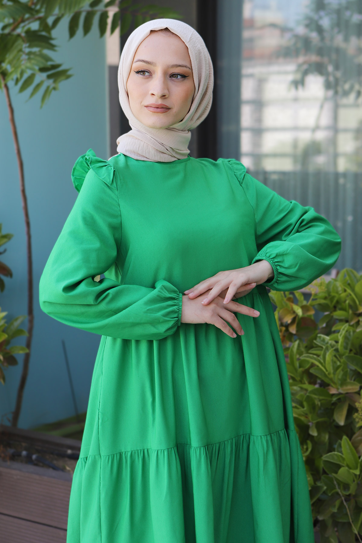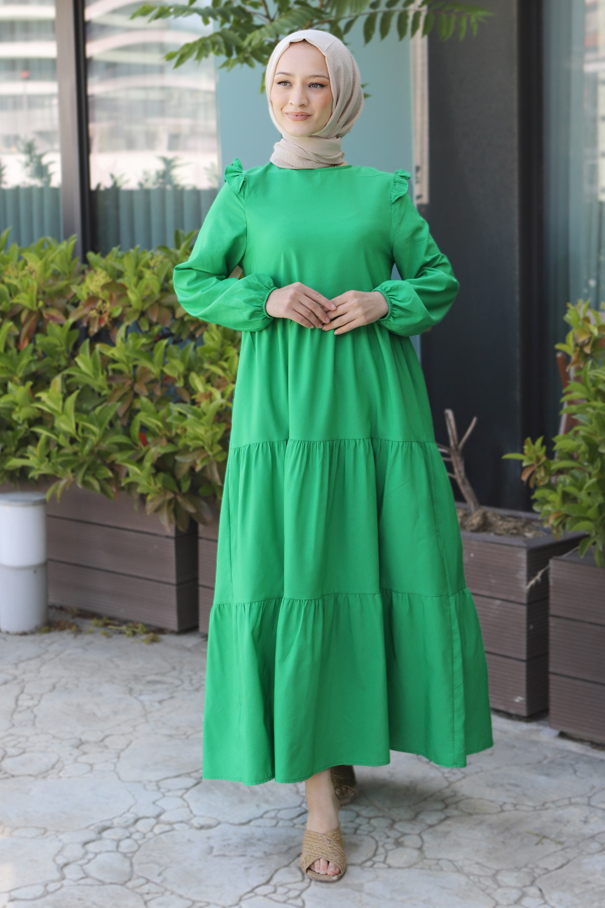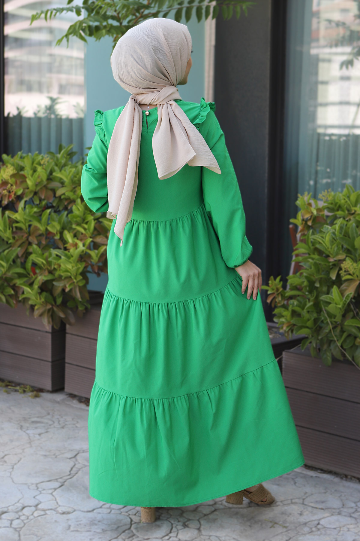 Omuzu Fırfırlı Elbise TSD220641 Yeşil Özellikleri